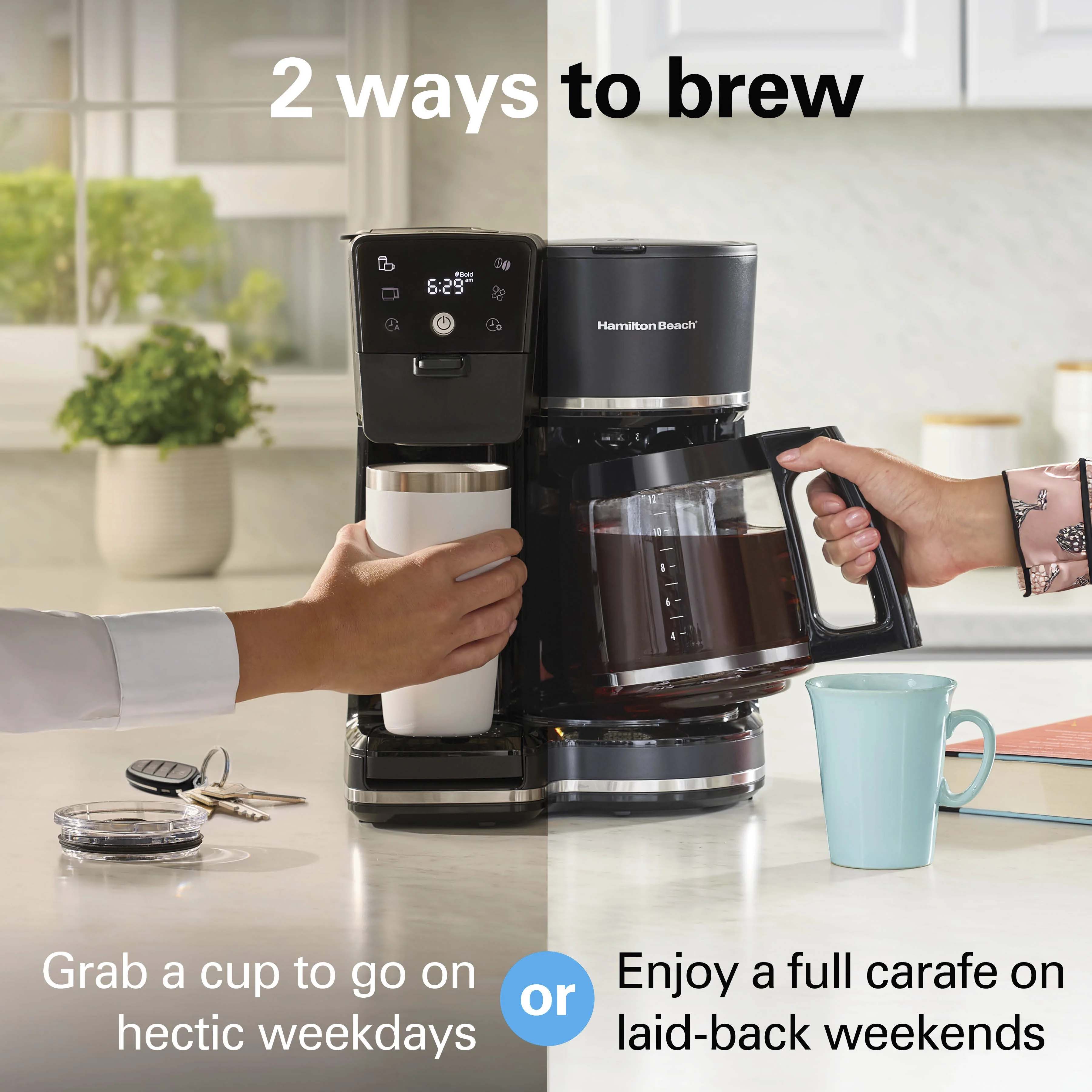- GET YOUR FIRST CUP FAST: When brewing on the carafe side, you can pour yourself a quick cup of coffee while coffee is still brewing with Auto Pause & Pour. There's no need to wait until the whole pot has finished brewing before serving a cup.