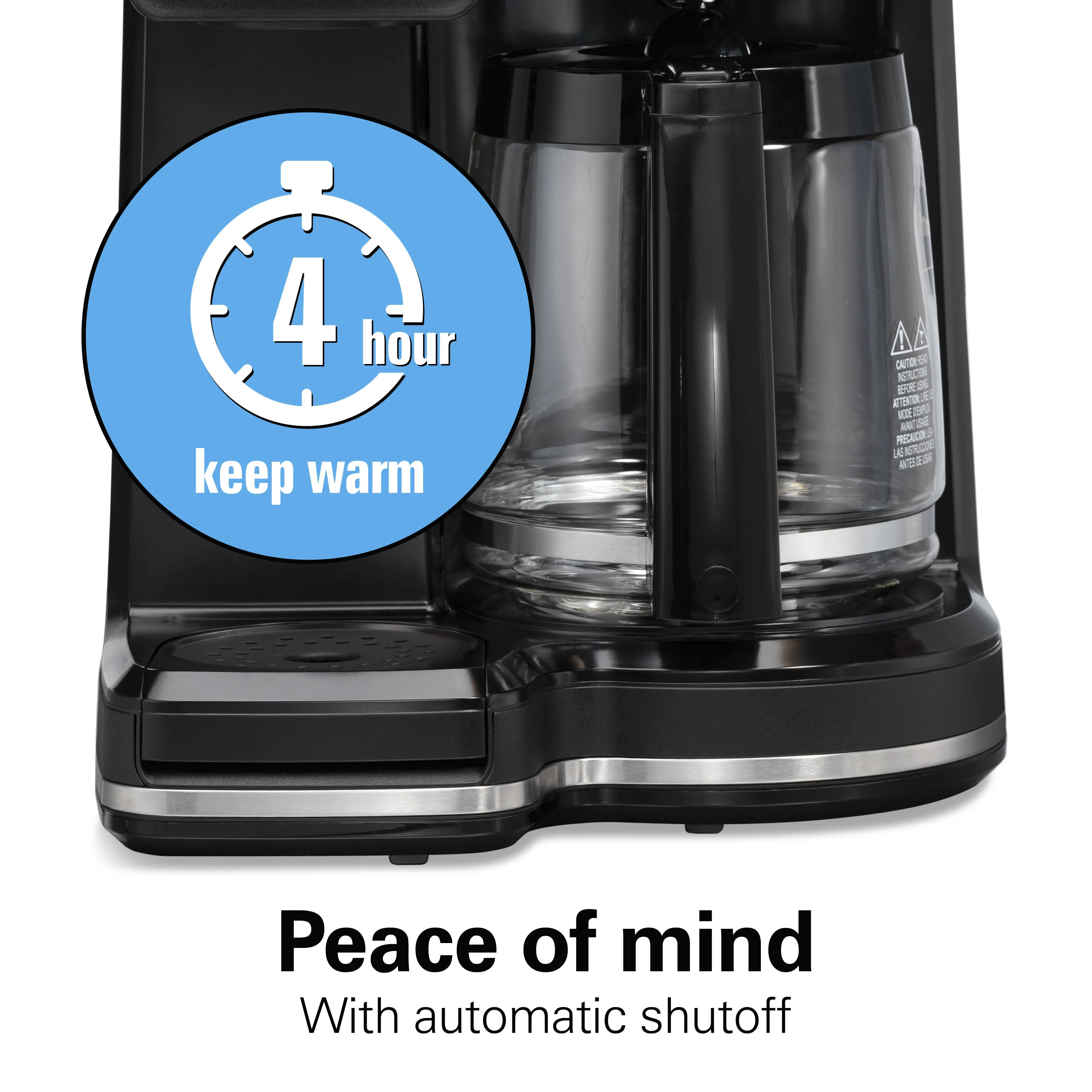- 4 HOUR KEEP WARM WITH AUTOMATIC SHUTOFF: How many times have you walked out the door, only to wonder if you turned the coffee maker off? Now there's no worry or turning around to check, since the coffee maker turns off automatically after 4 hours.