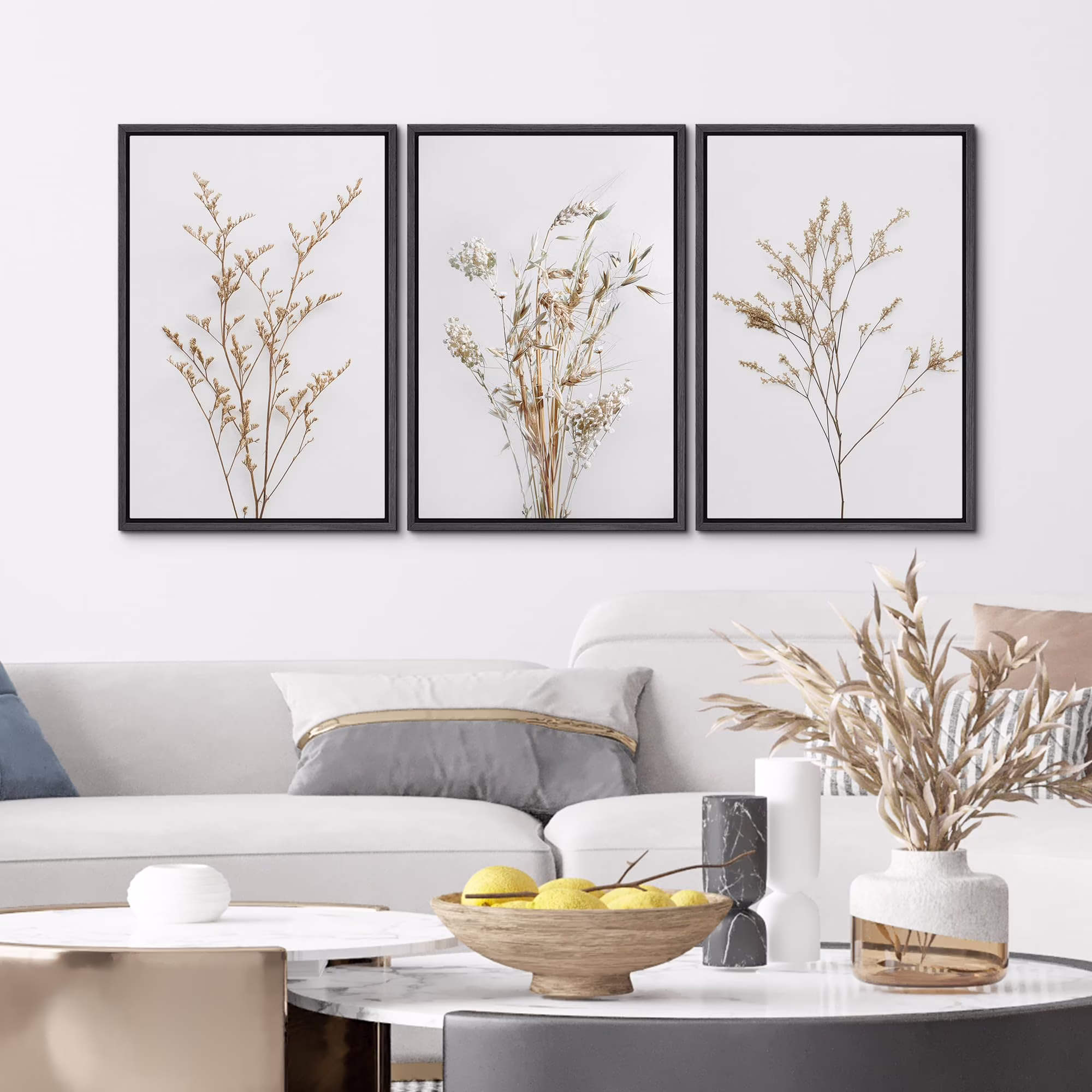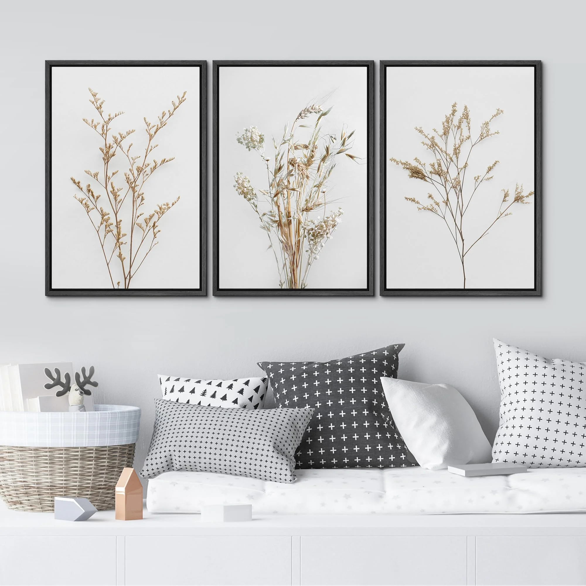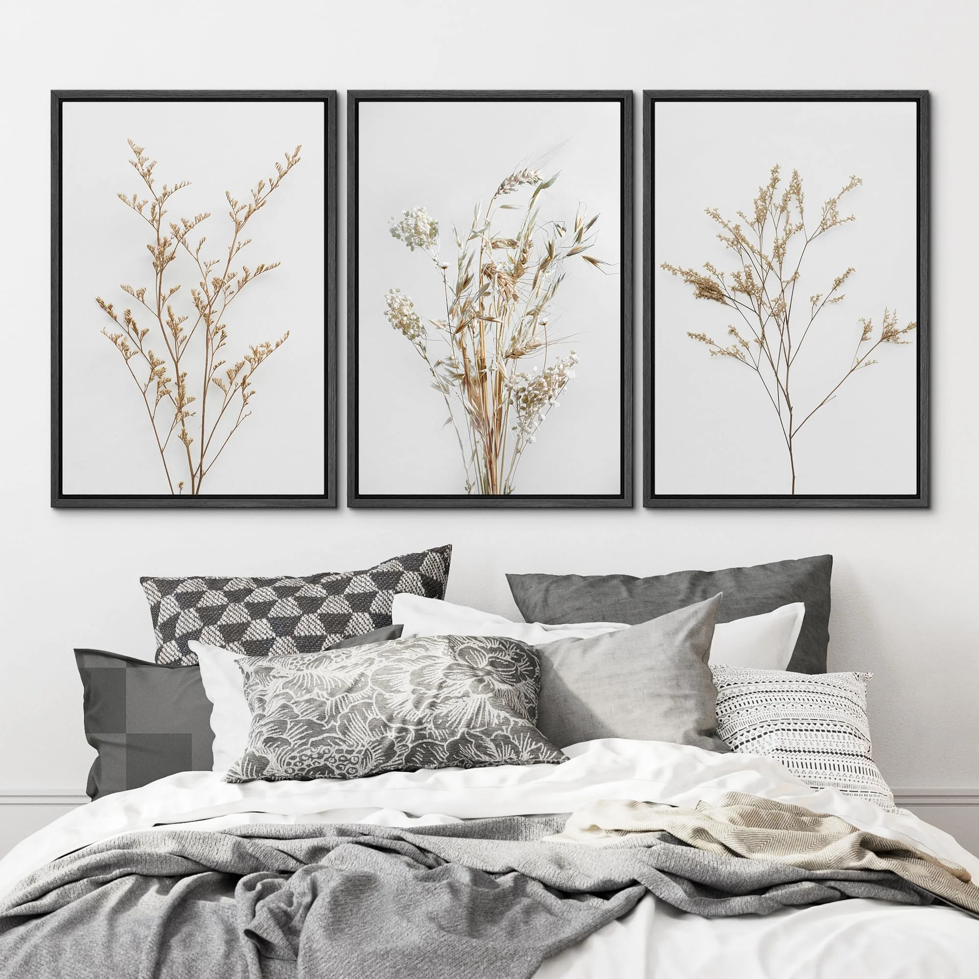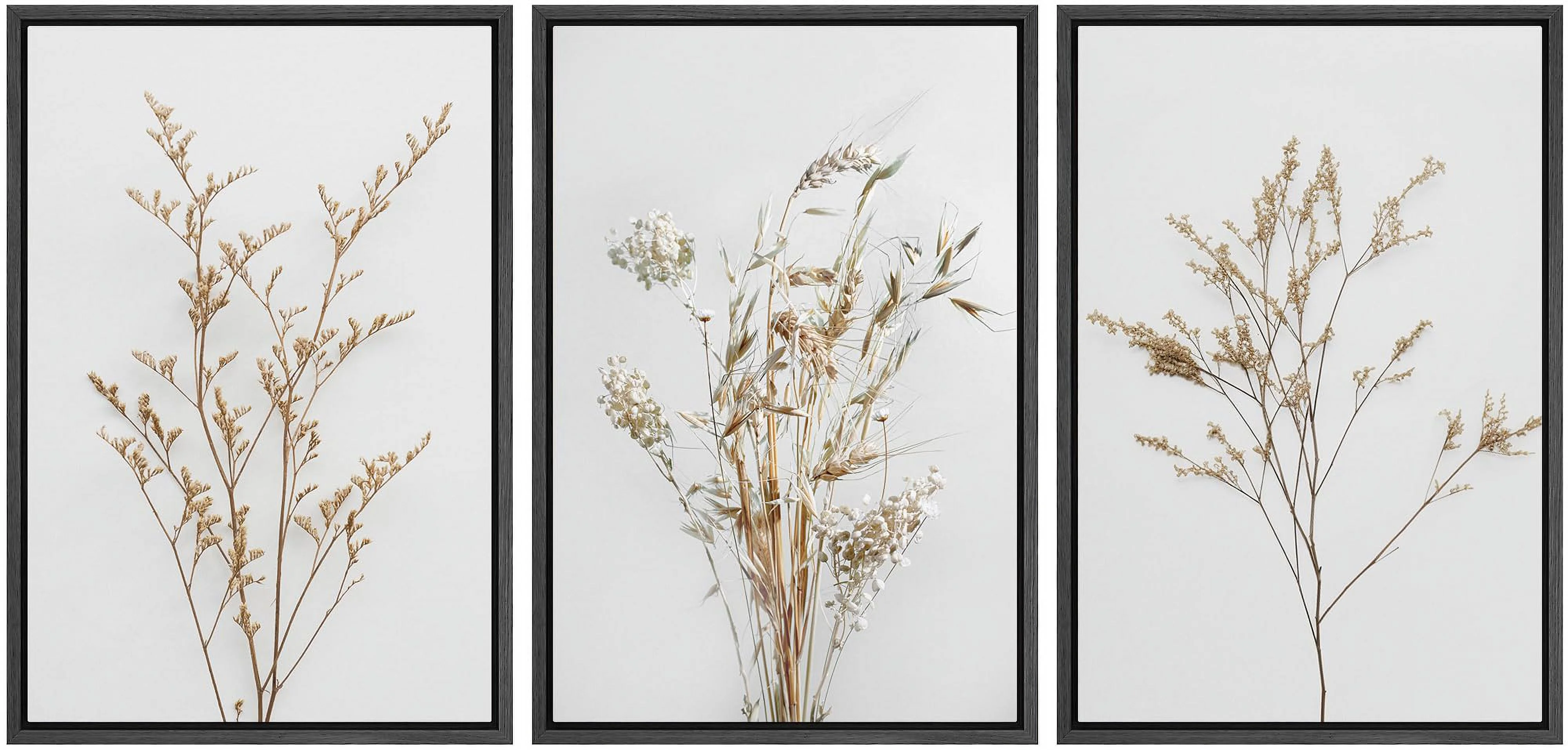 IDEA4WALL Framed Canvas Print Wall Art Set of 3 Wildflower Floral Botanical Prints, Modern Farmhouse Flowers Wall Decor, Large Wall Art, Minimalist Artwork for Home Decor - Black 16"x24"x3