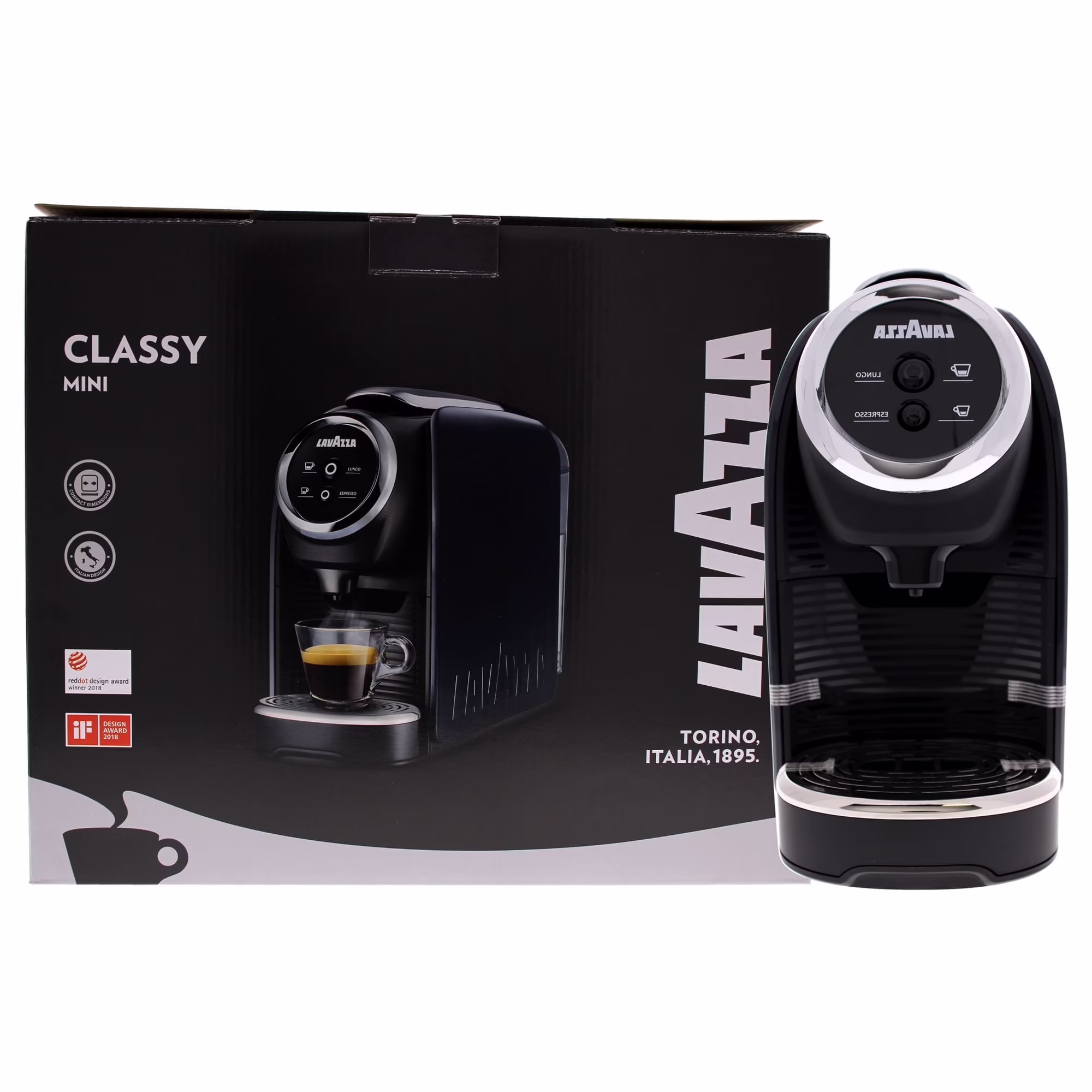 - Compact machine with a sleek design providing you with the perfect espresso or lungo at the touch of a button. Machine start-up time: 28 seconds. Adjustable cup rack height allows the use of a higher container.