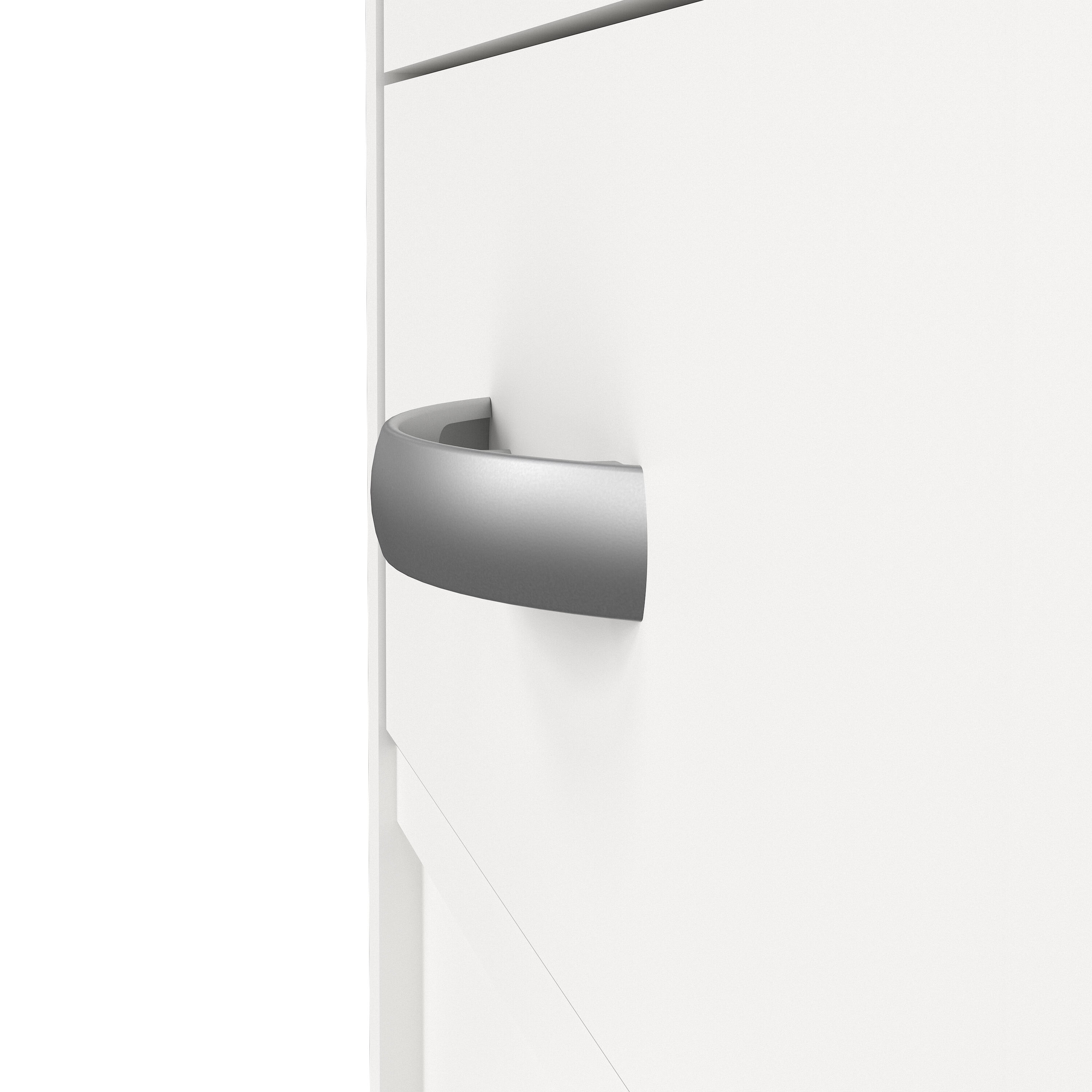 Office minimalist meets sophistication with the Walden Desk with 5 Drawers for adults. This desk provides one open shelf for easily accessible items and the five drawers provide plenty of storage to assist with office clutter. The large drawer that sits directly under the desktop is lockable and provides storage for your keyboard, office supplies or important documents you want to keep locked up but within grasp. The drawers are backed with metal glides complemented with curved handles and the desk has a foil finish that provides durability.