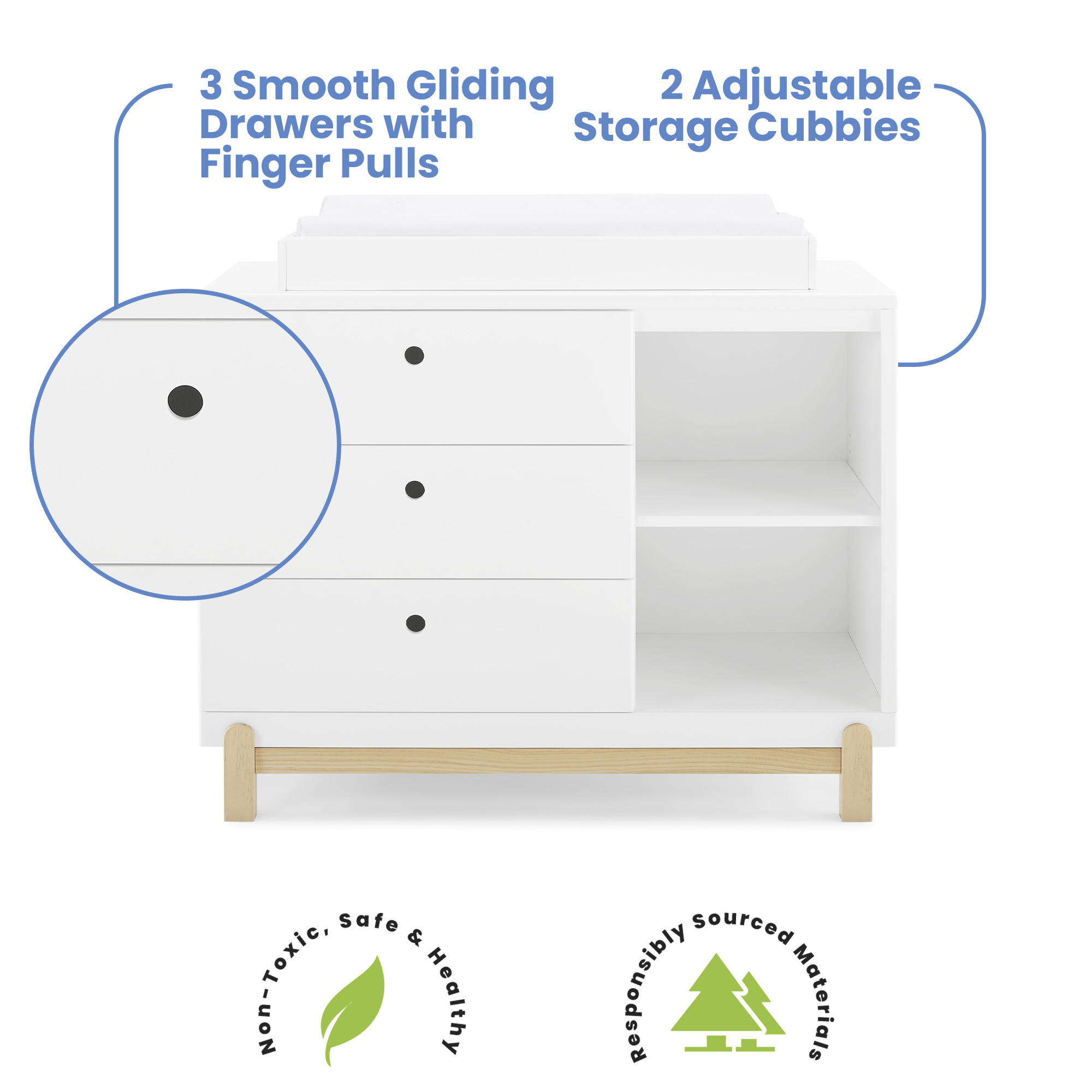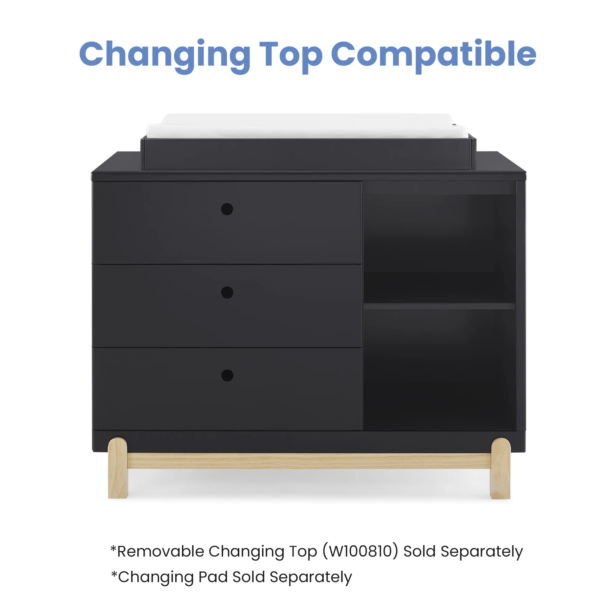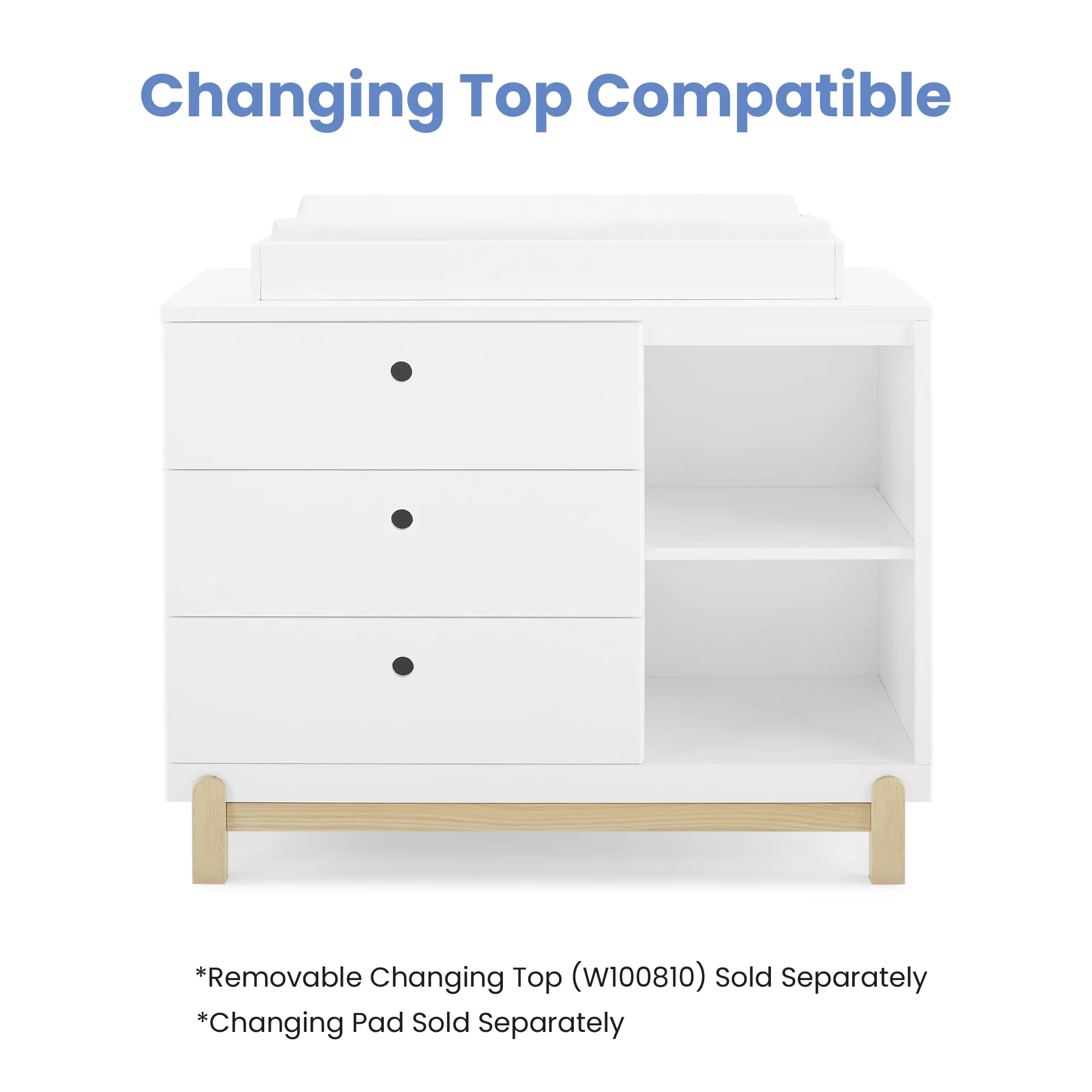 - VERSATILE STORAGE: Dresser features 3 drawers and 2 open storage cubbies for plenty of storage | Convert dresser into a changing table purchase the #W100710 Topper (sold separately)