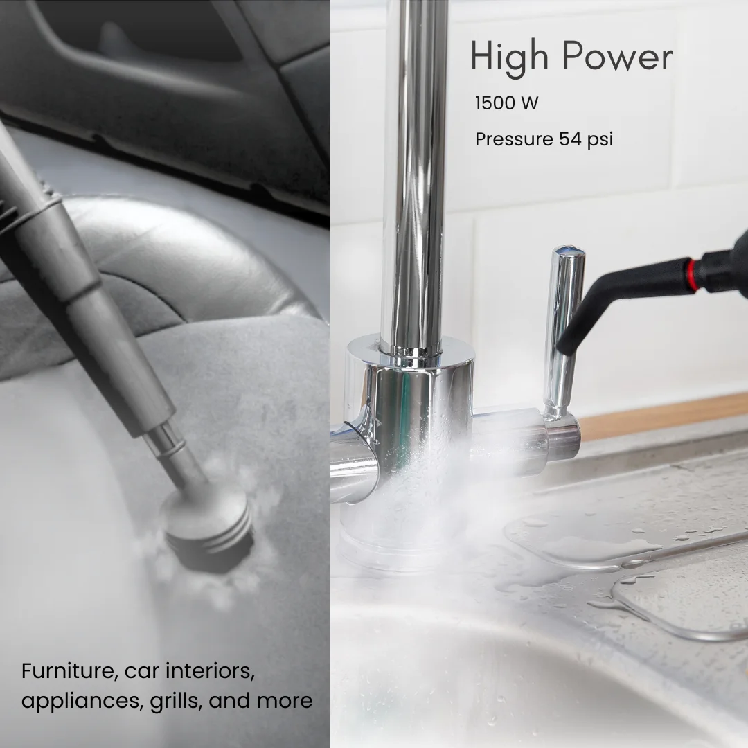 - High Pressure: Hot pressurized steam heats up to 200��F, blasting dirt, grime, and grease. Non-stop steam cleaning: large 51 fl. oz. tank capacity produces 45 minutes of continuous steam from a single fill.