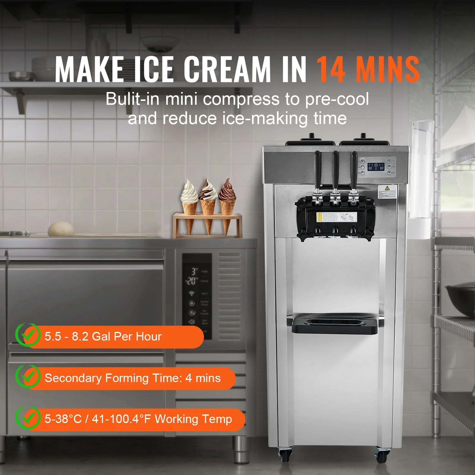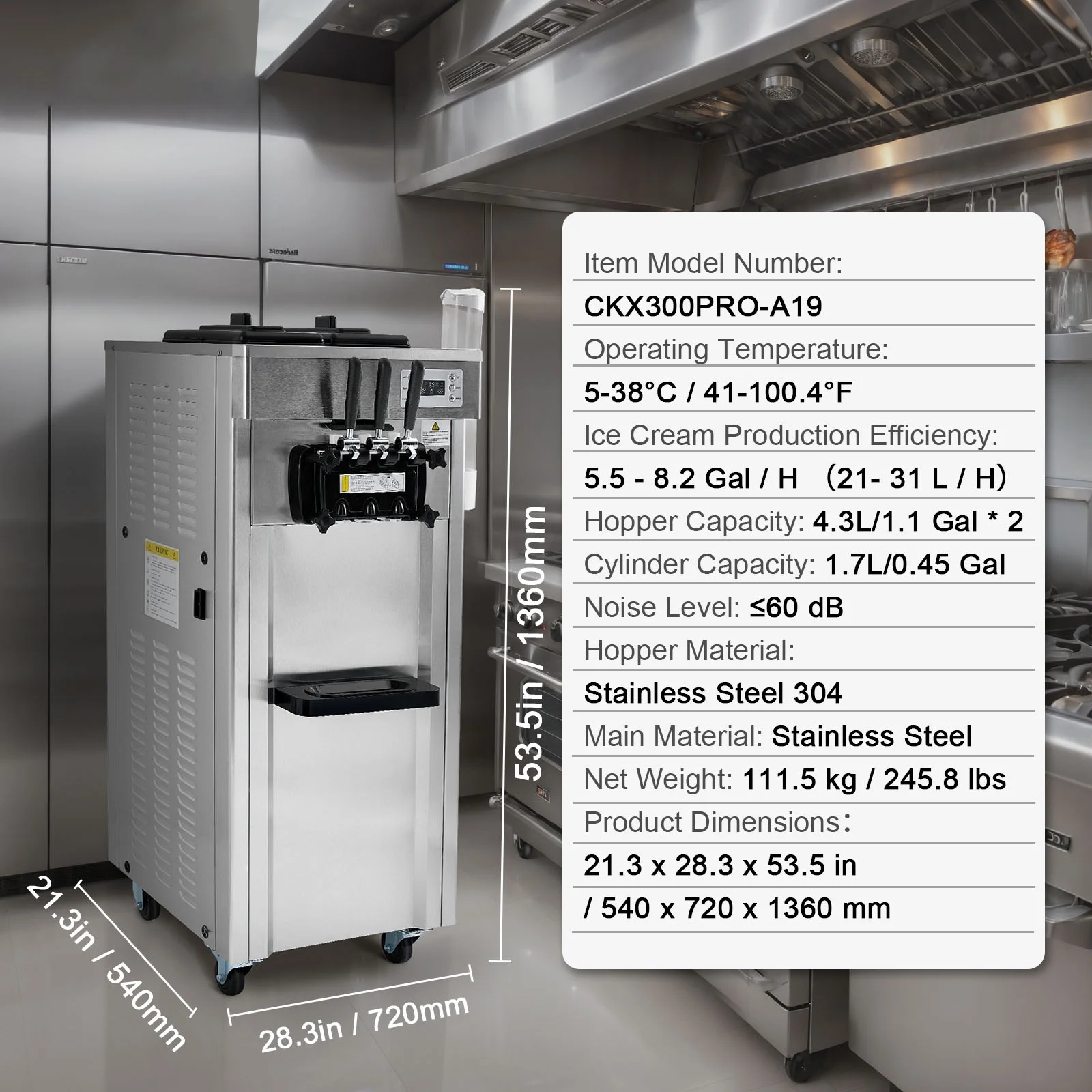 - Versatile Application: Designed for versatility, this soft-serve ice cream maker is perfect for making a variety of ice cream items, including cones, waffles and cakes. It is the perfect complement to ice cream parlors, cafes, bars and small food stalls to enhance any business environment.