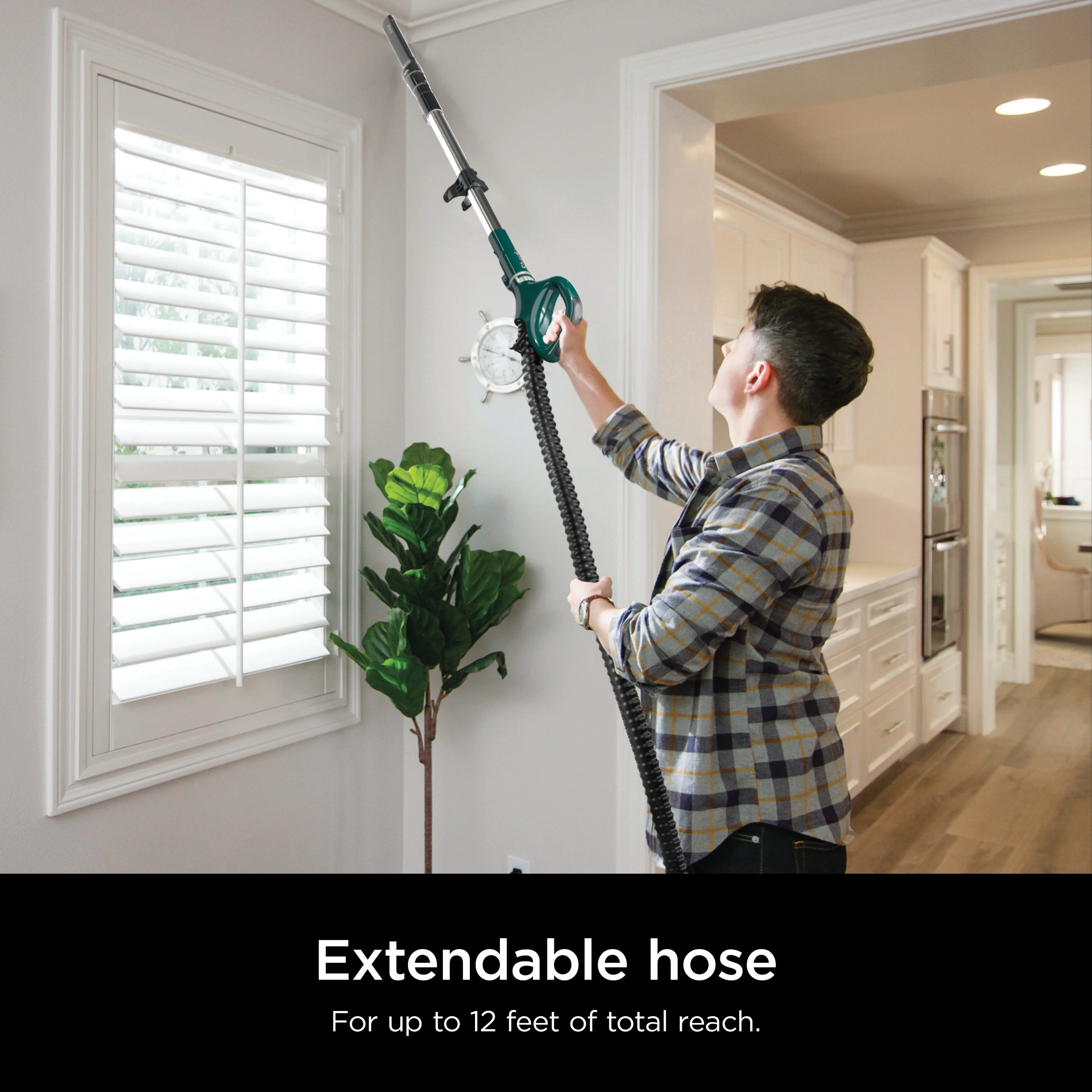 - EXTENDED REACH: The hose extends, giving you up to 12 feet of total reach to vacuum hard-to-access areas.