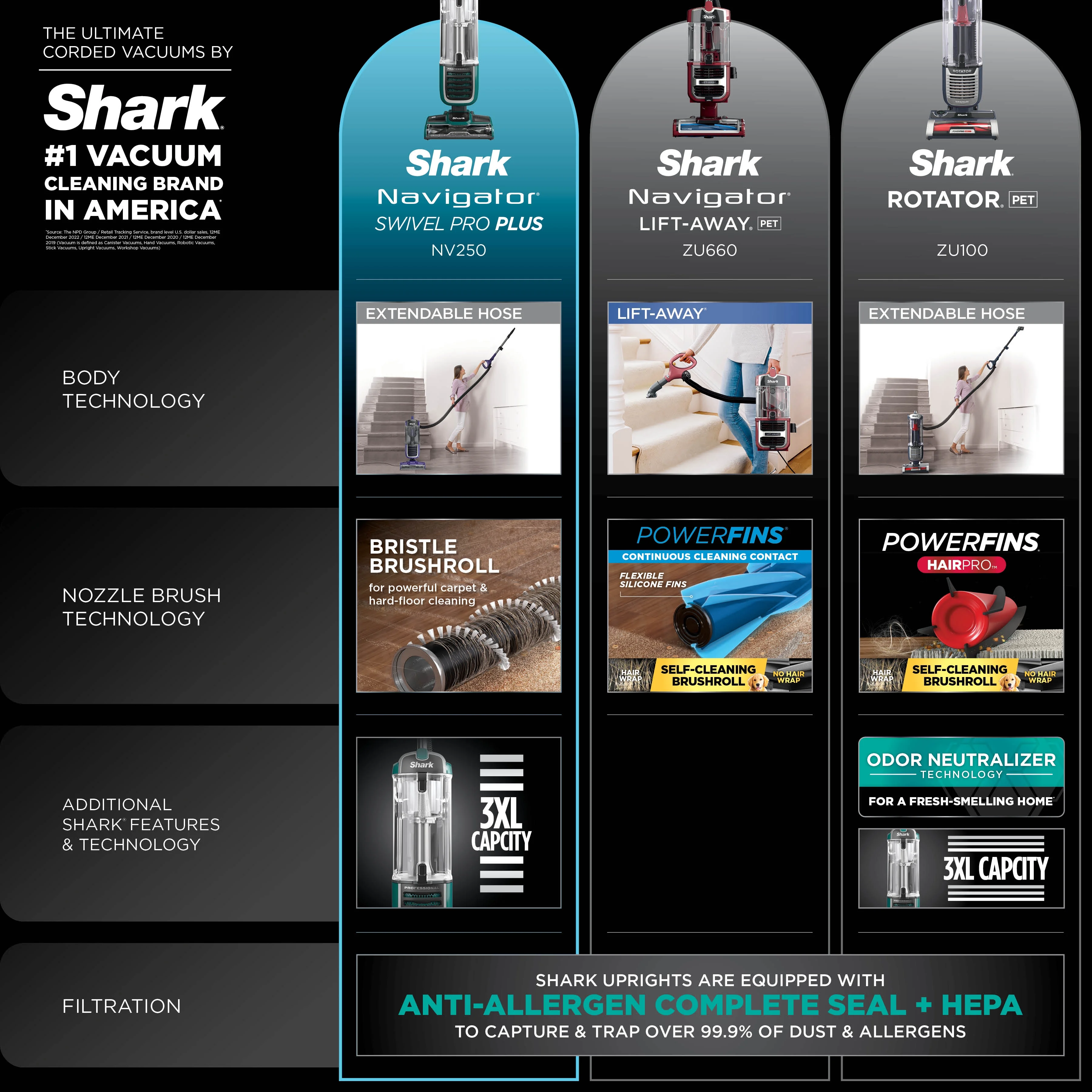 - ANTI-ALLERGEN COMPLETE SEAL: Anti-Allergen Complete Seal Technology and a HEPA filter trap dust and allergens inside the vacuum cleaner.