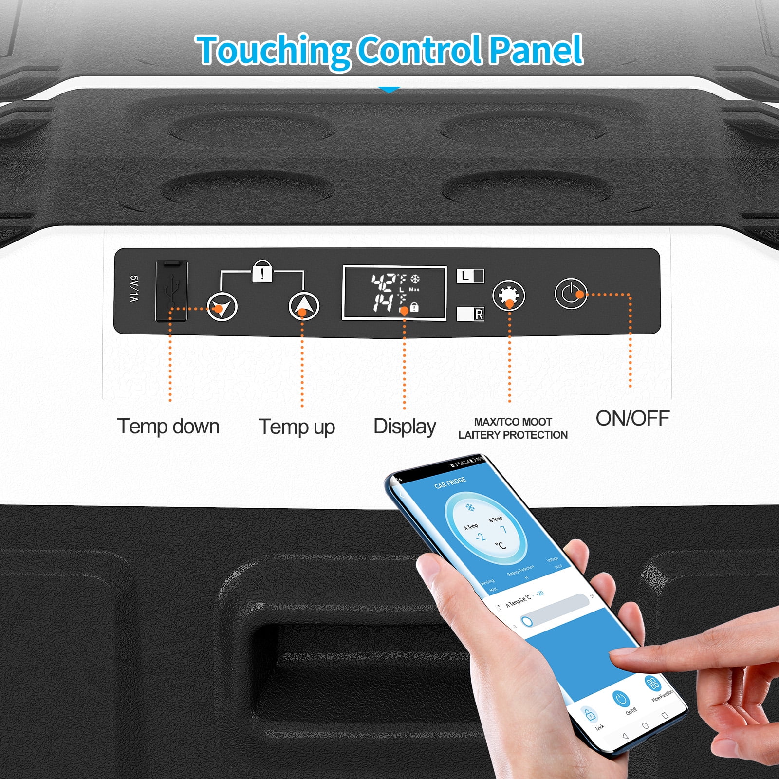 DISHUP car cooler for vehicle controls temps effortlessly via the LED touchscreen and built-in interior light. Child lock and auto power-off protect against accidental changes or surges��making it a family-friendly travel cooler for bumpy roads or curious kids.