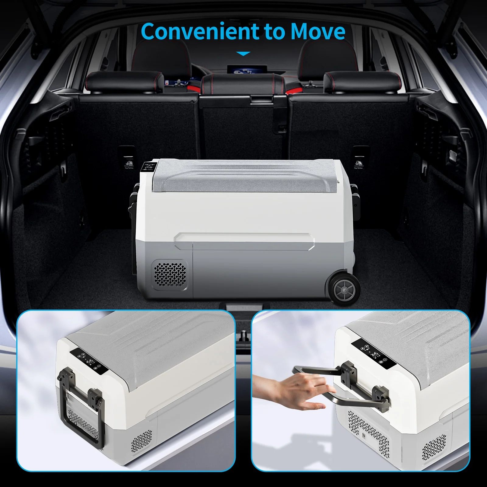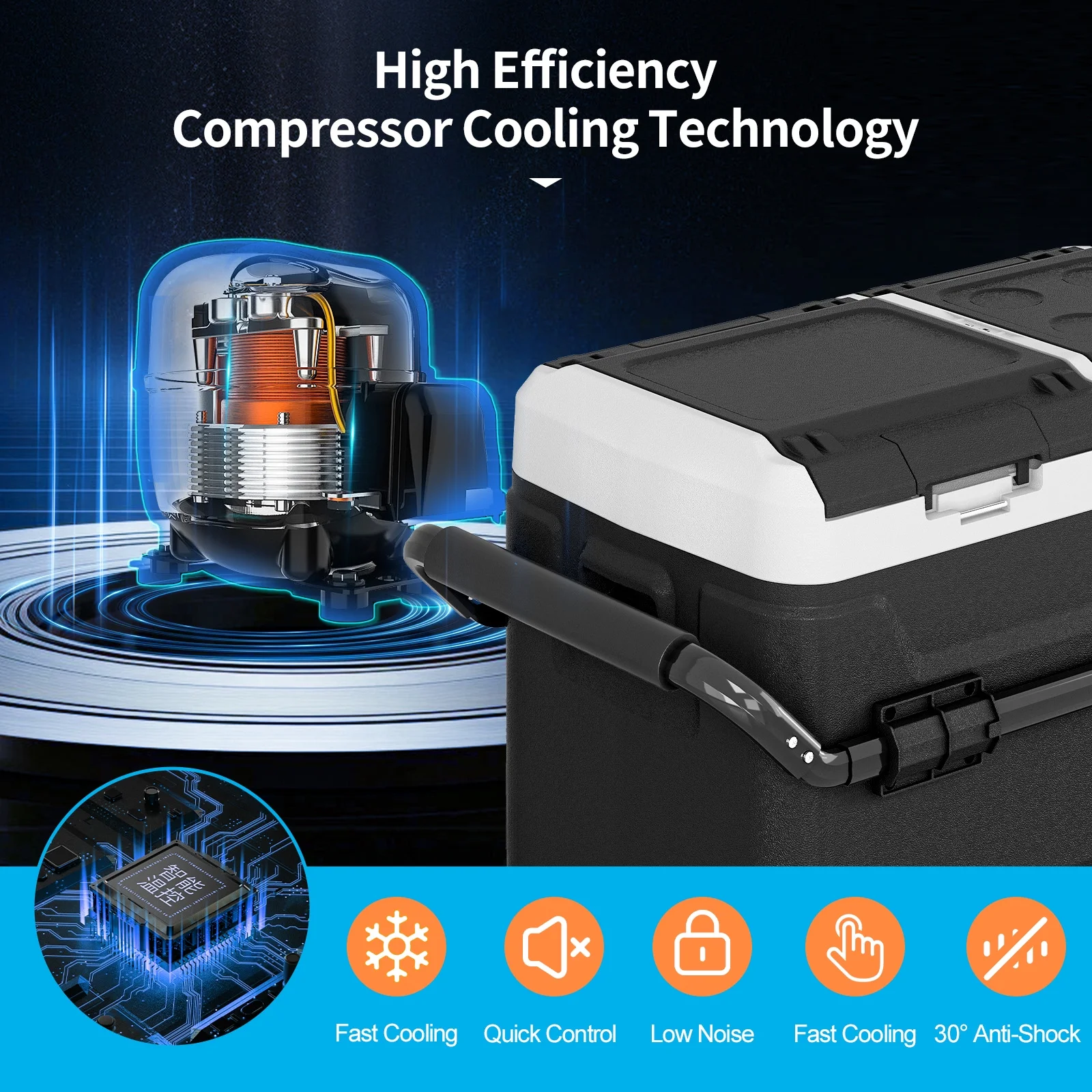 The 12 volt refrigerator also has dual purpose, can be used as a portable refrigerator in the car, but also can be used as a regular refrigerator at home.Equipped with a DC compressor cooler, this portable electric ice chest cools faster than traditional thermoelectric models while using minimal power. Runs seamlessly on 12V/24V car outlets, RVs, or trucks��no draining your battery!