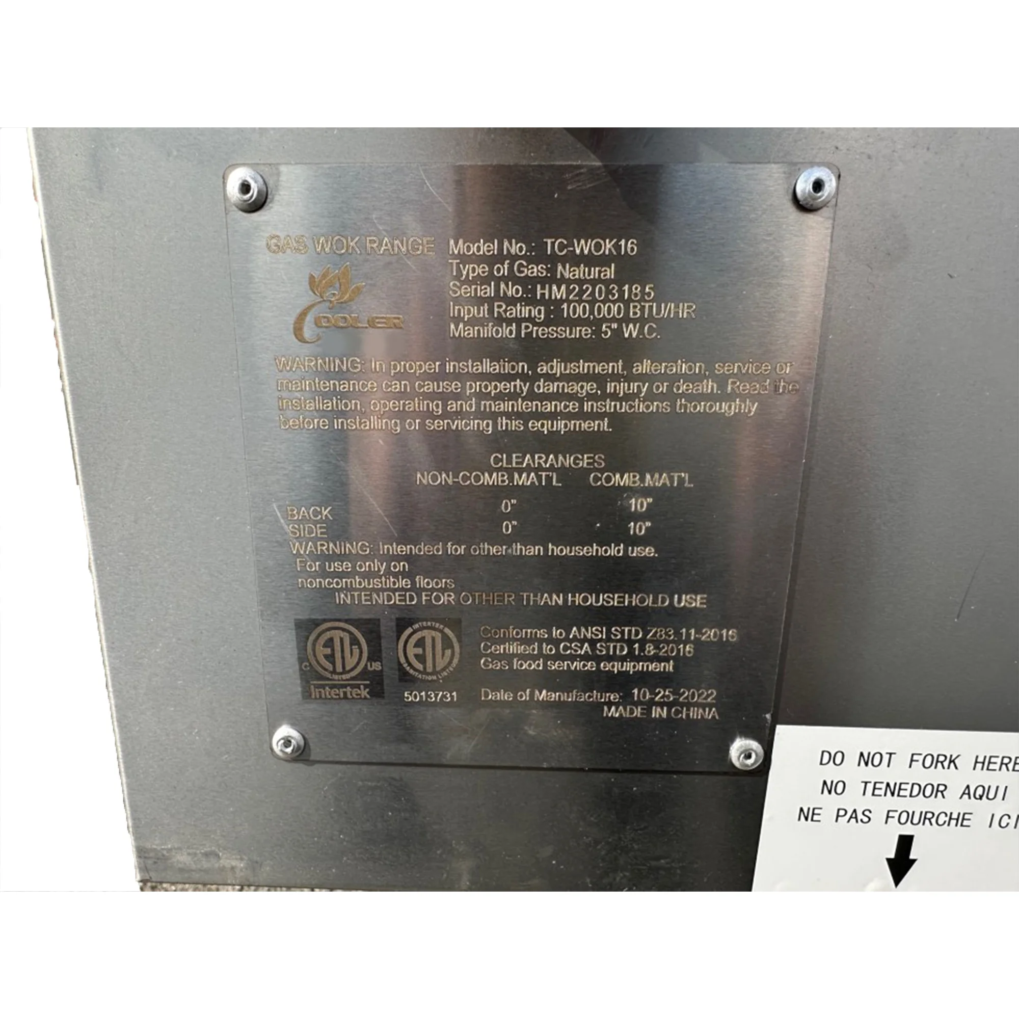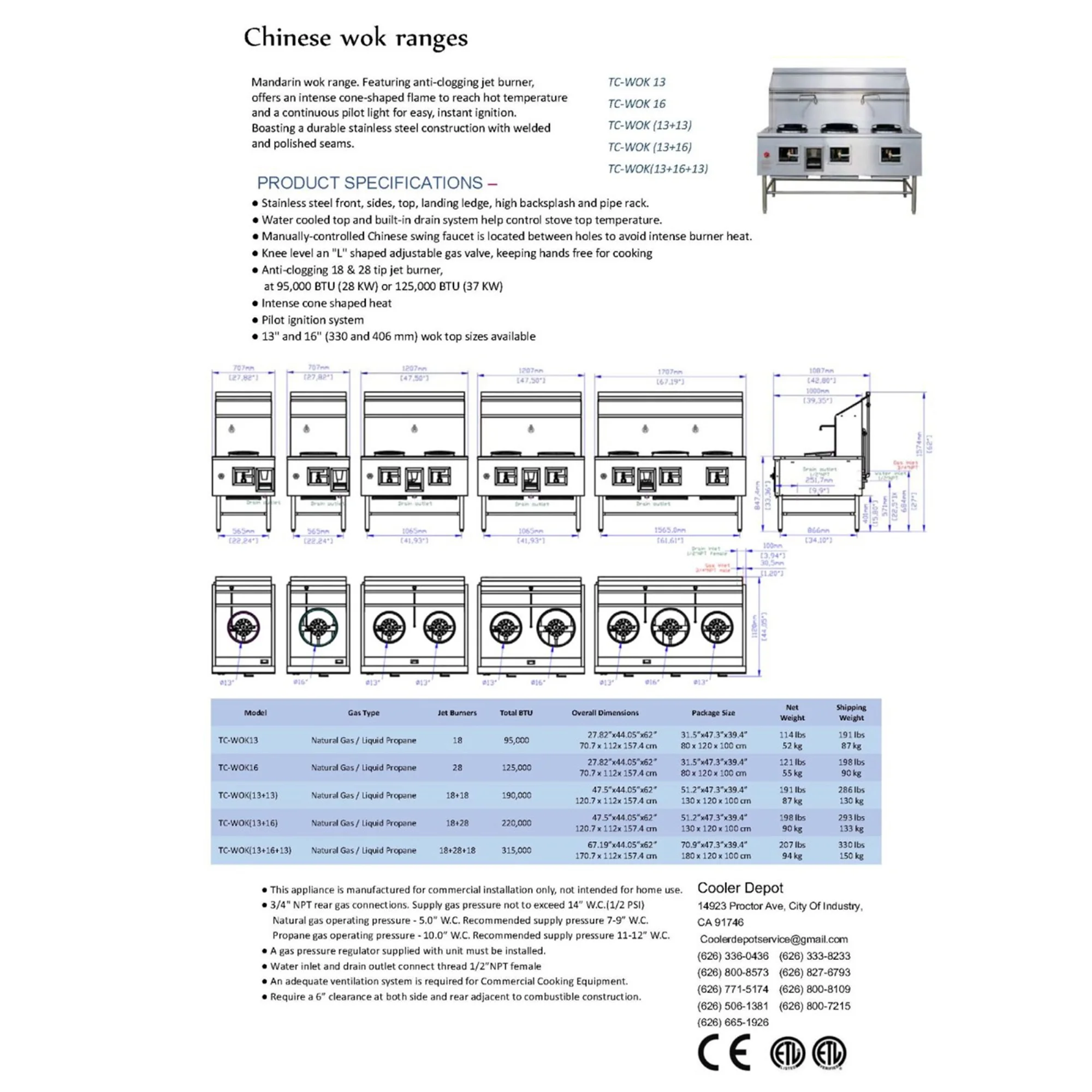 Wok Dimension: 16''WGas Type: Natural Gas/ Liquid Propane