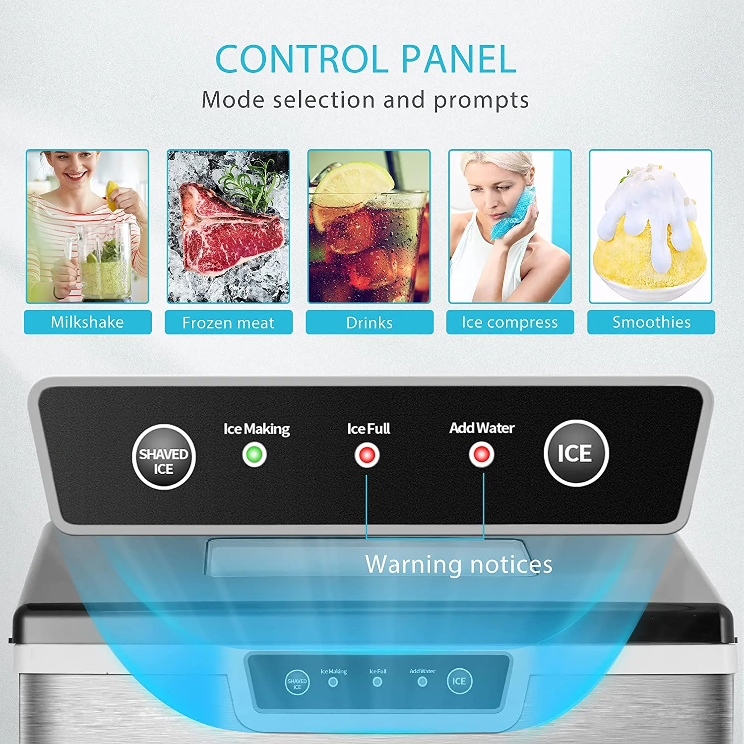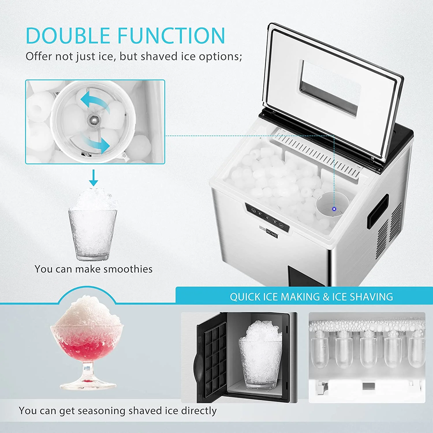 - DOUBLE FUNCTION - To save your precious money, time and space, the VIVOHOME ice maker machine gives you not only ice cubes but also the option of shaved ice; This is very useful for those summers where you can make slushies or flavored shaved ice treats on demand