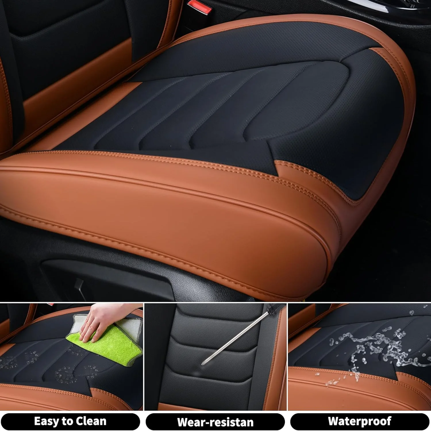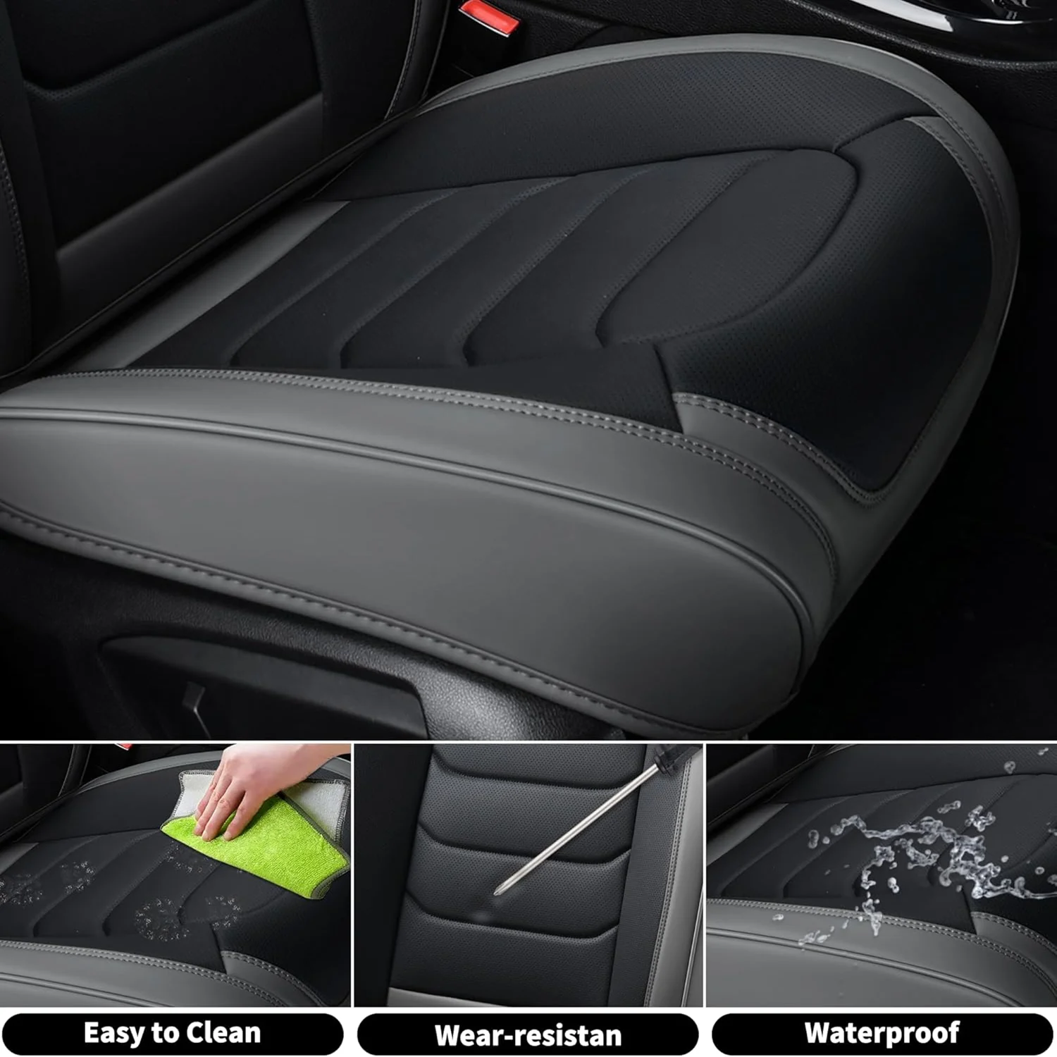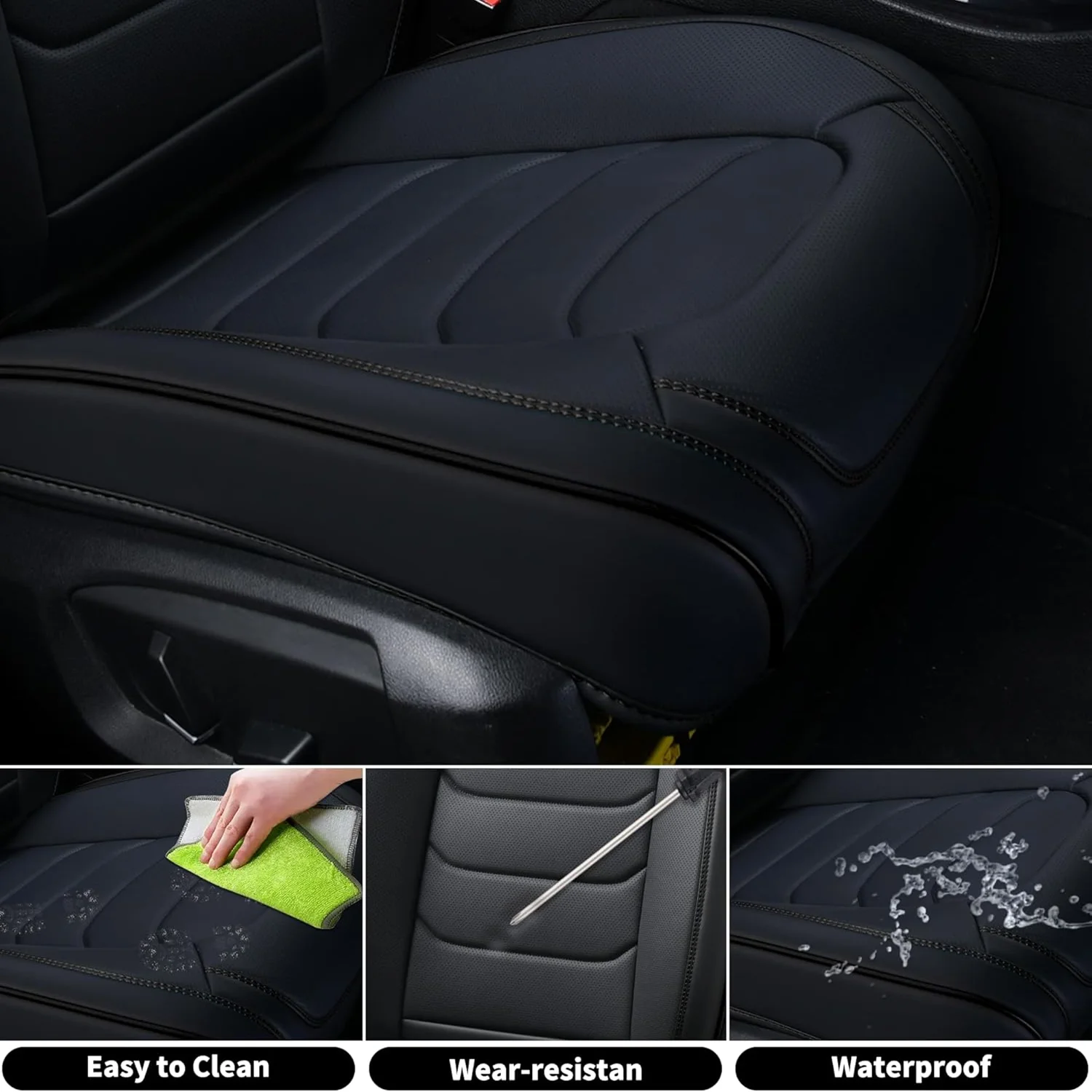 Premium Leather: The car seat cover is made of high-grade faux leather with a multi-layer composite design. It��s soft, breathable, waterproof, and provides a more comfortable driving experience. The rebound sponge adds a cushioned feel and keeps its shape for long-lasting comfort.
