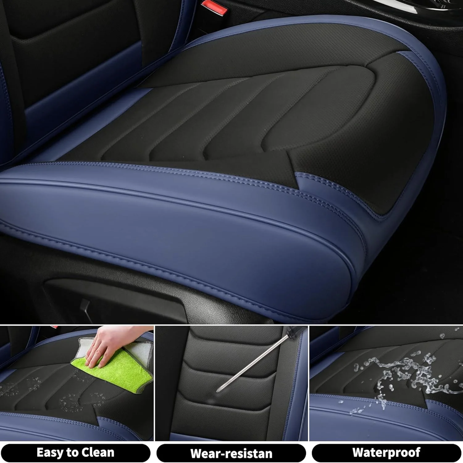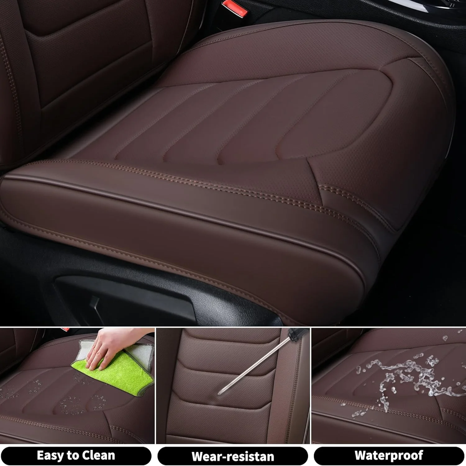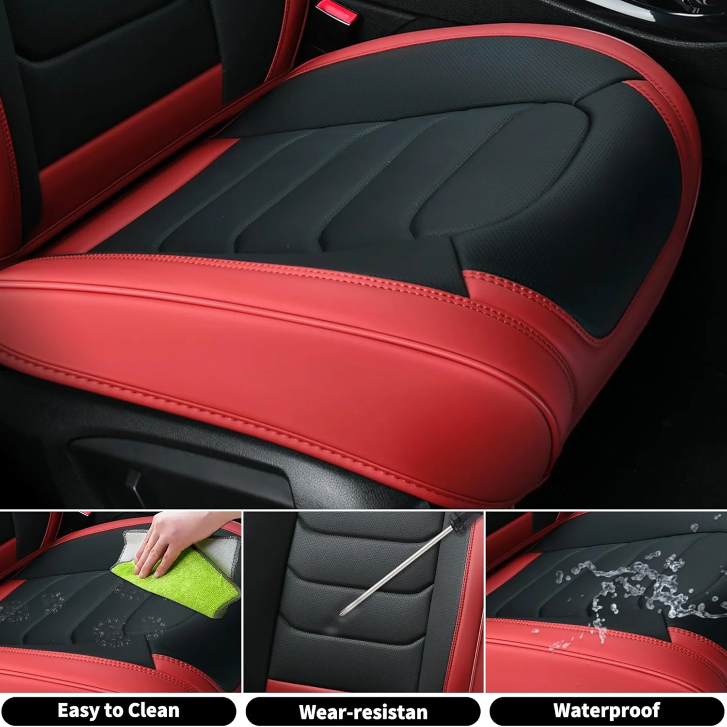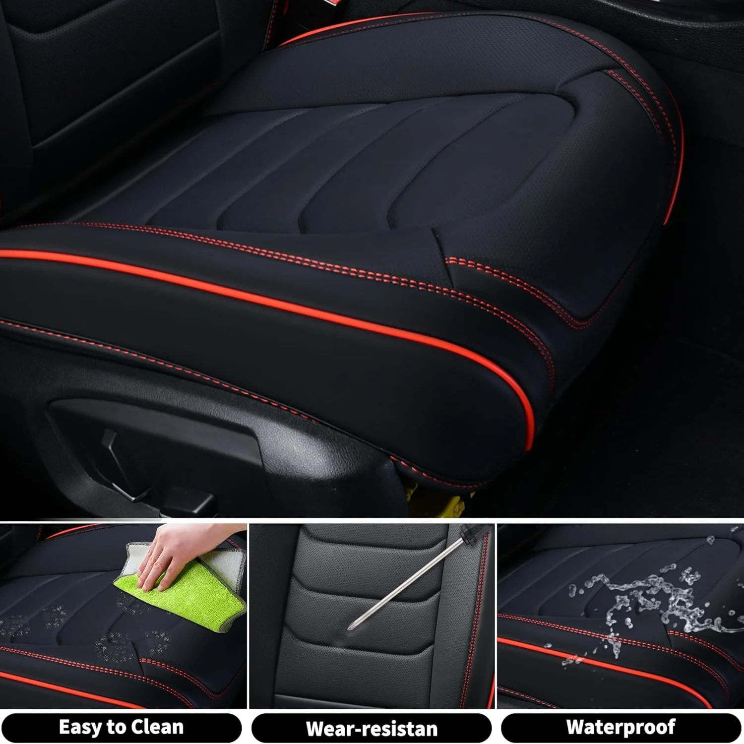 Premium Leather: The car seat cover is made of high-grade faux leather with a multi-layer composite design. It��s soft, breathable, waterproof, and provides a more comfortable driving experience. The rebound sponge adds a cushioned feel and keeps its shape for long-lasting comfort.
