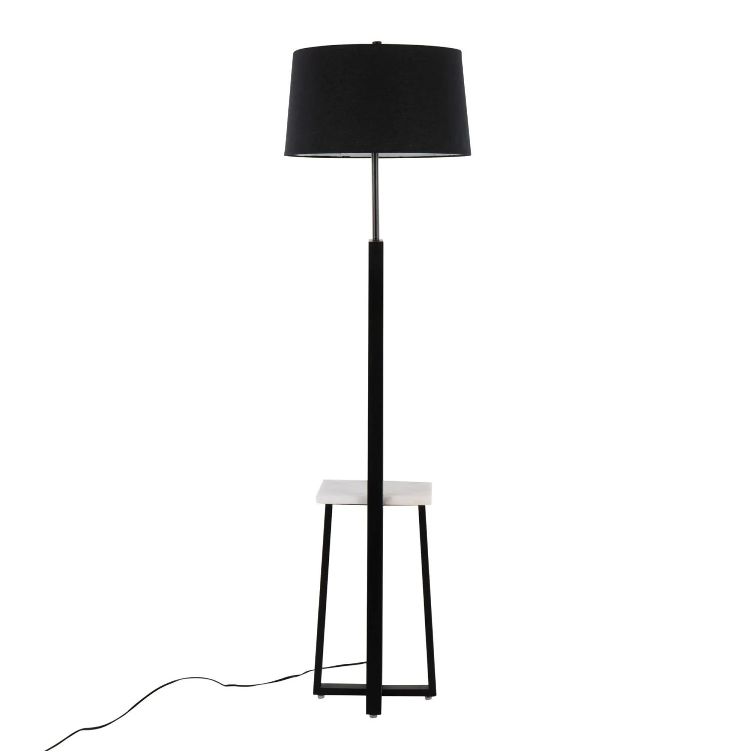 White Marble, Black Metal, Black Linen Cosmo Shelf Floor Lamp
