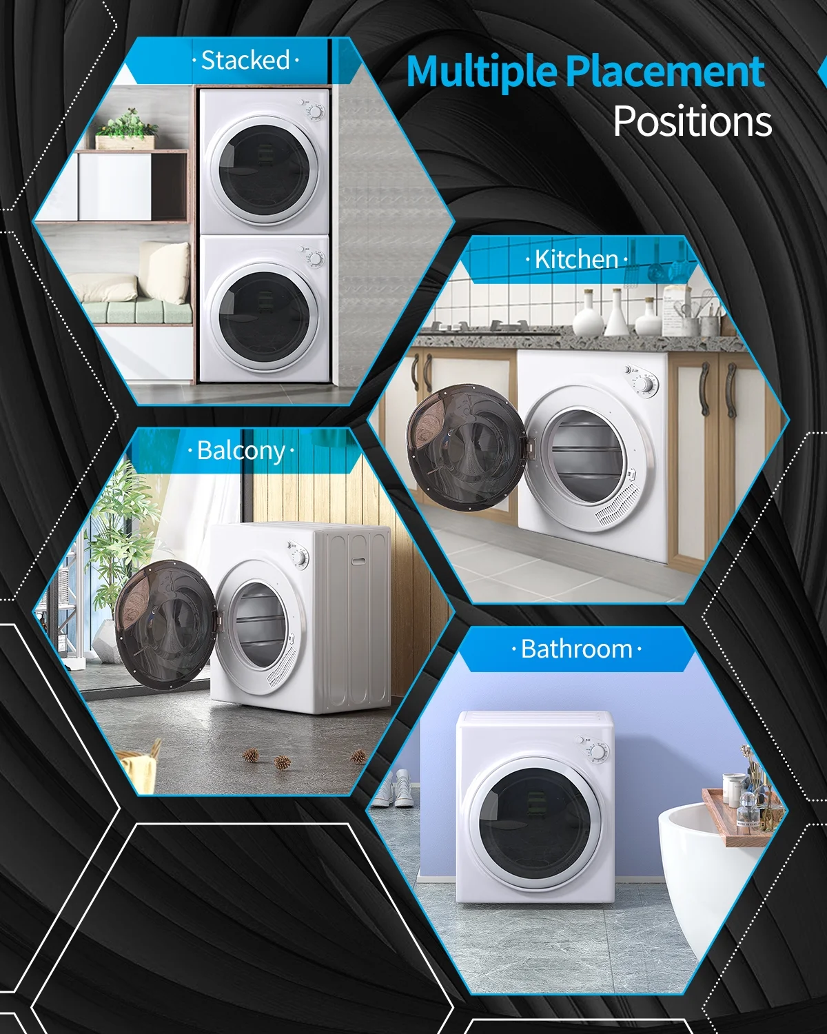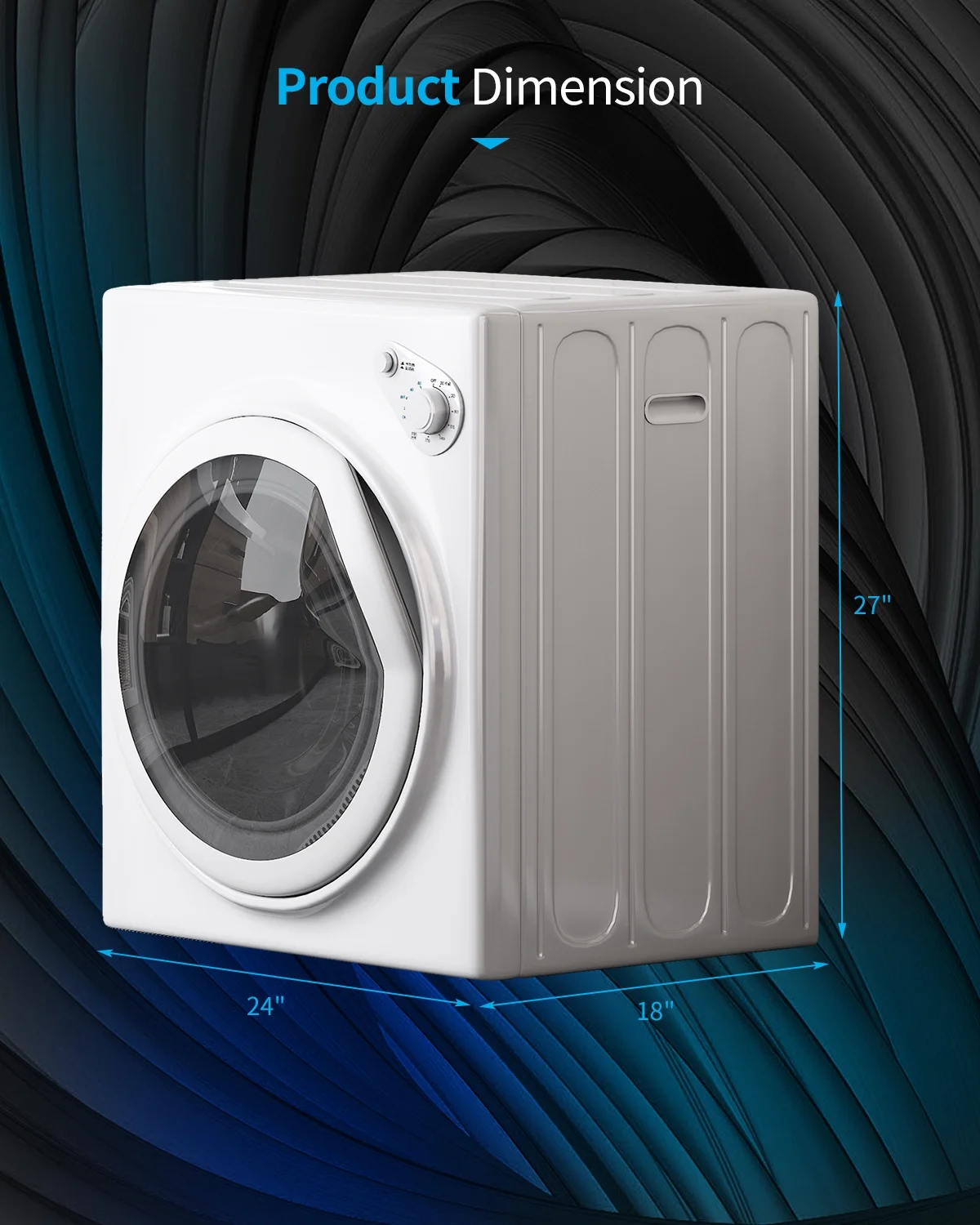 【Powerful Performance】TABU electric compact dryer with 1300W power and 13 lbs large capacity, this clothes dryer can ensure your clothes to be dry sooner. TABU portable dryer can reach a maximum temperature of 150°F,which ensure that your clothes dry quickly. Even though it lasts rainy, you can still put on your beautiful dresses every day.