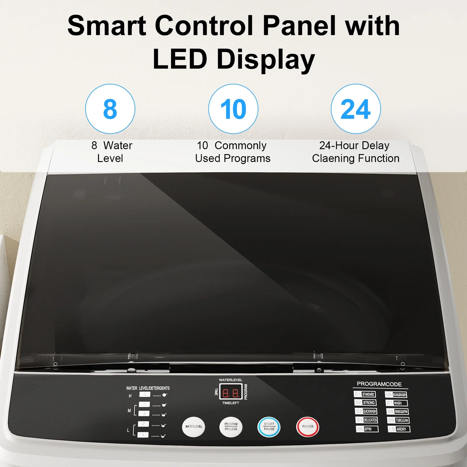 【Large Capacity High Performance Design】TABU full automatic washing machine is equipped with a stainless steel honeycomb inner drum that can fit up to 19 pounds of laundry at a time.The full automatic washing machine is also equipped with a high-quality and durable motor that provides stable power. In addition, the portable washing machine is suitable for washing and spinning, or can be used separately as needed.