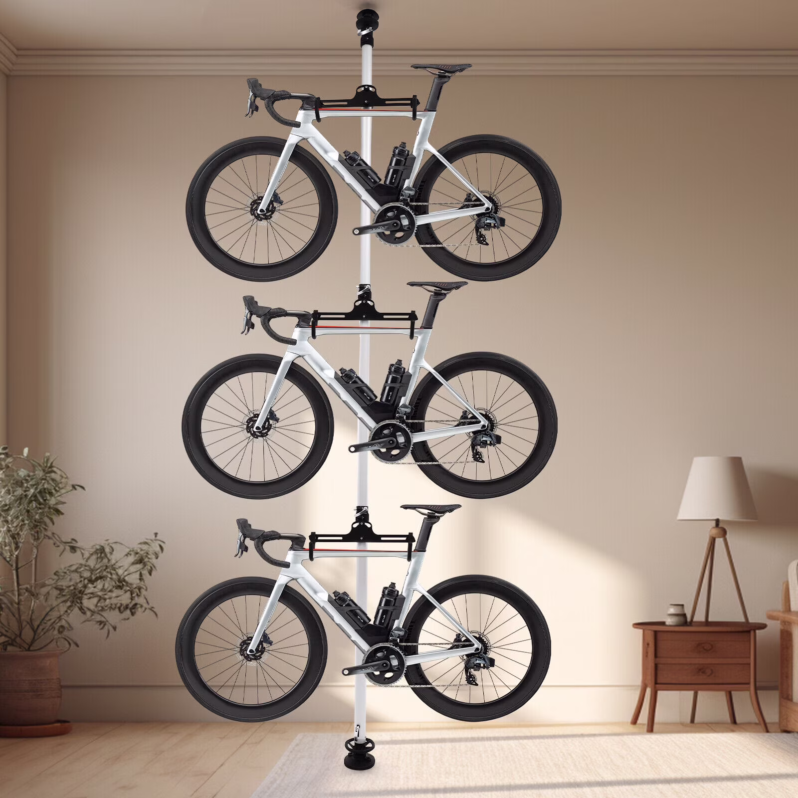 - 【Large Capacity�?/b>This bike rack is designed with three hooks to hold up to 3 bikes at the same time. And each hook can hold 66 pounds, ensuring that you can display a wider range of bikes and keep them safe and secure. The vertical design maximizes the use of vertical space, which allows you to display or store more bikes in a limited space.