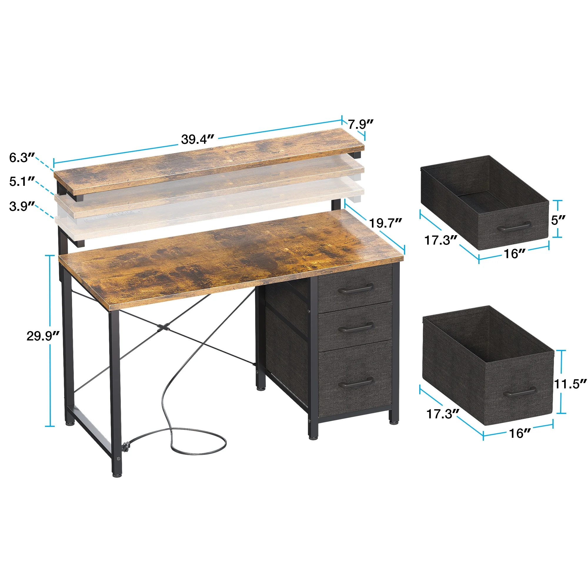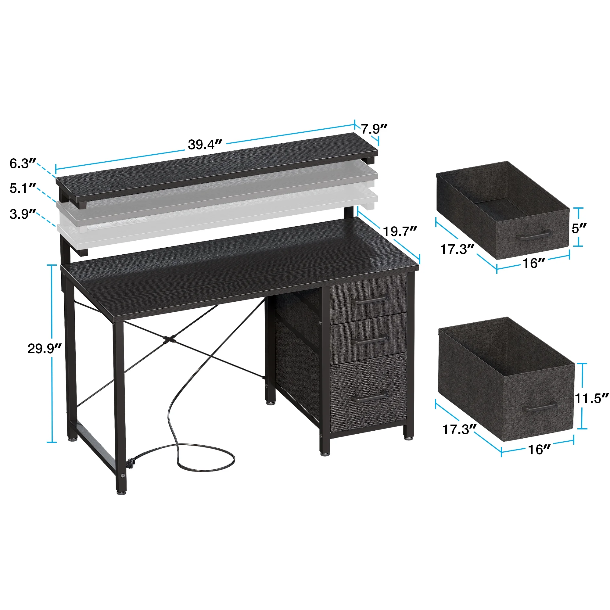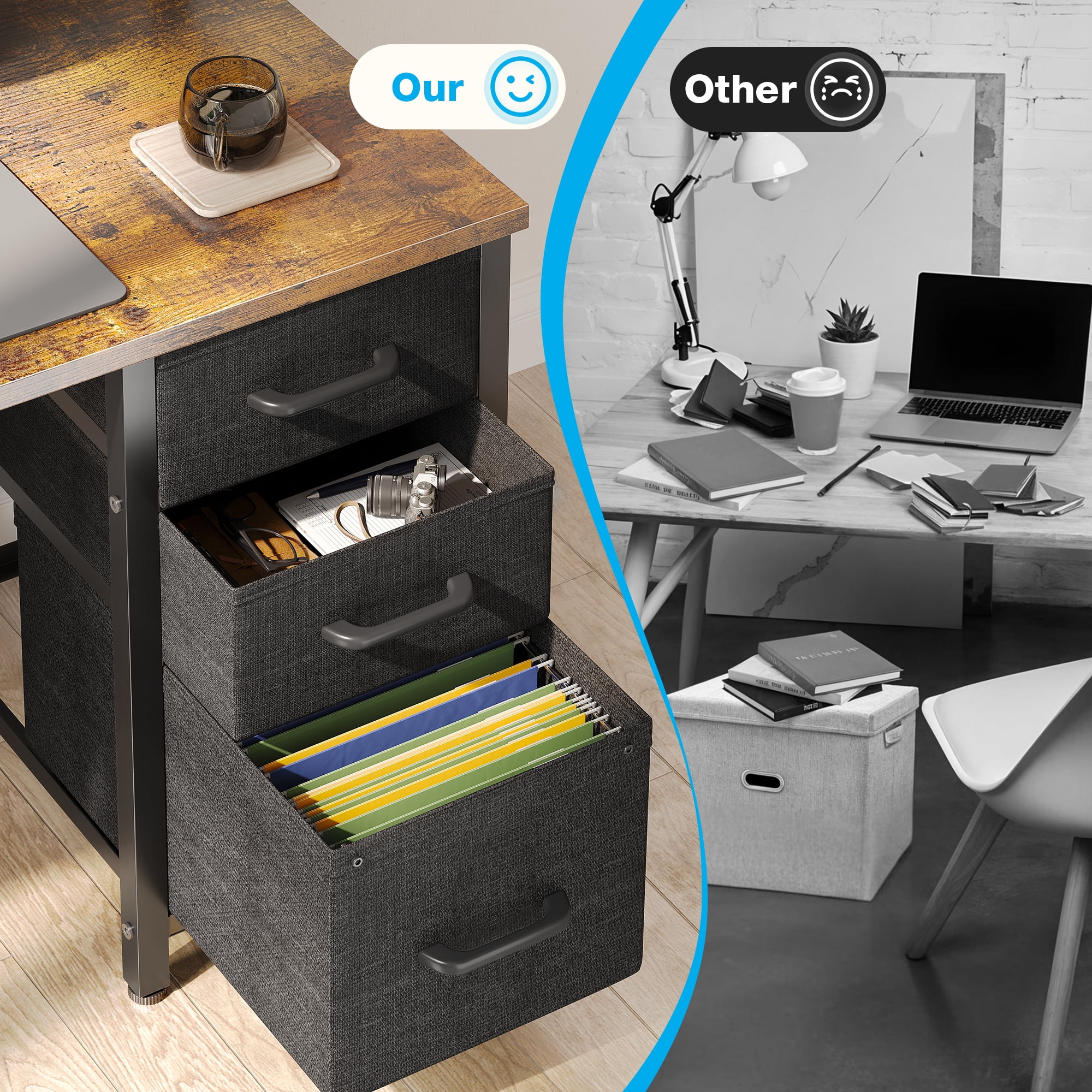 - With 3 drawers, you can neatly store your office supplies, documents, and other essentials.