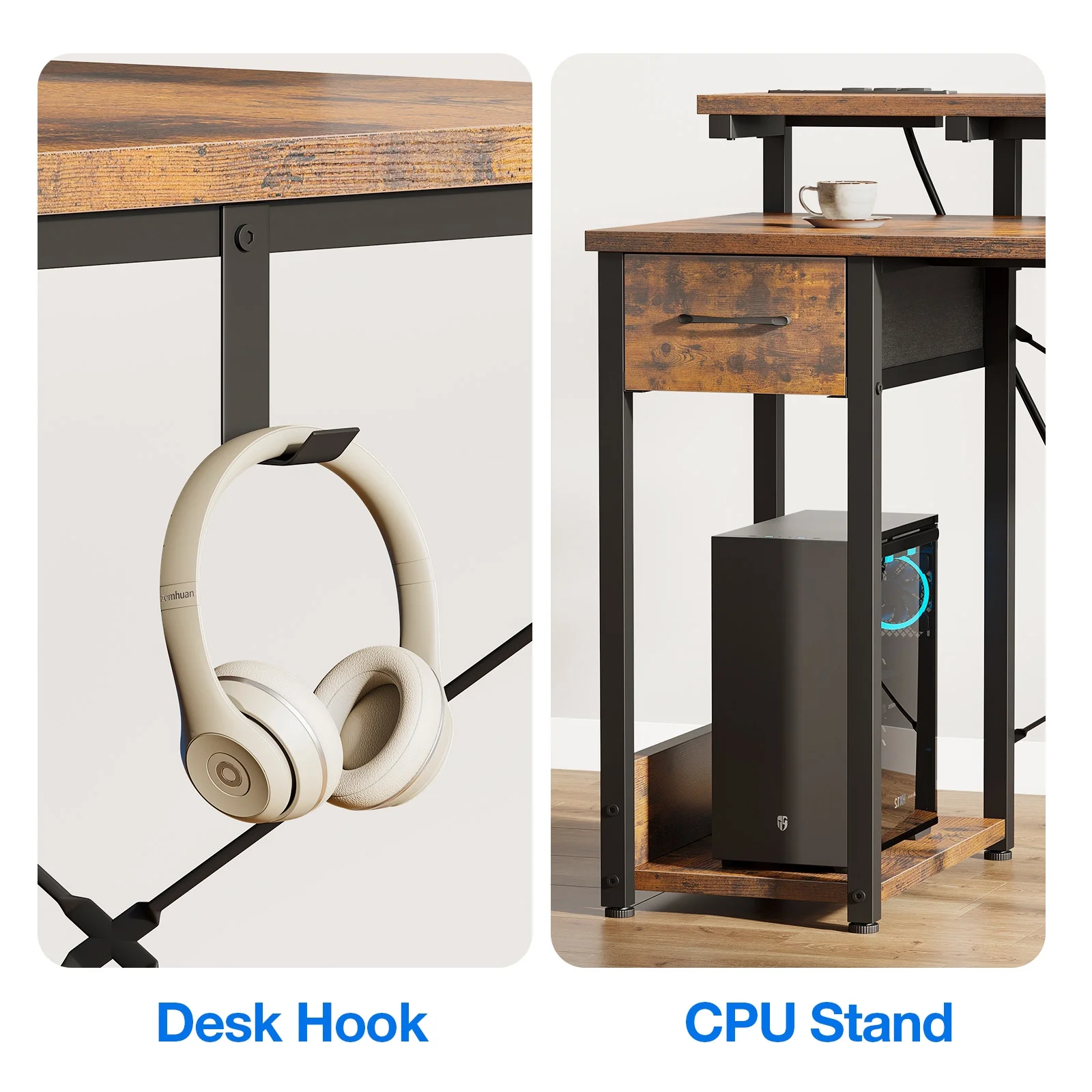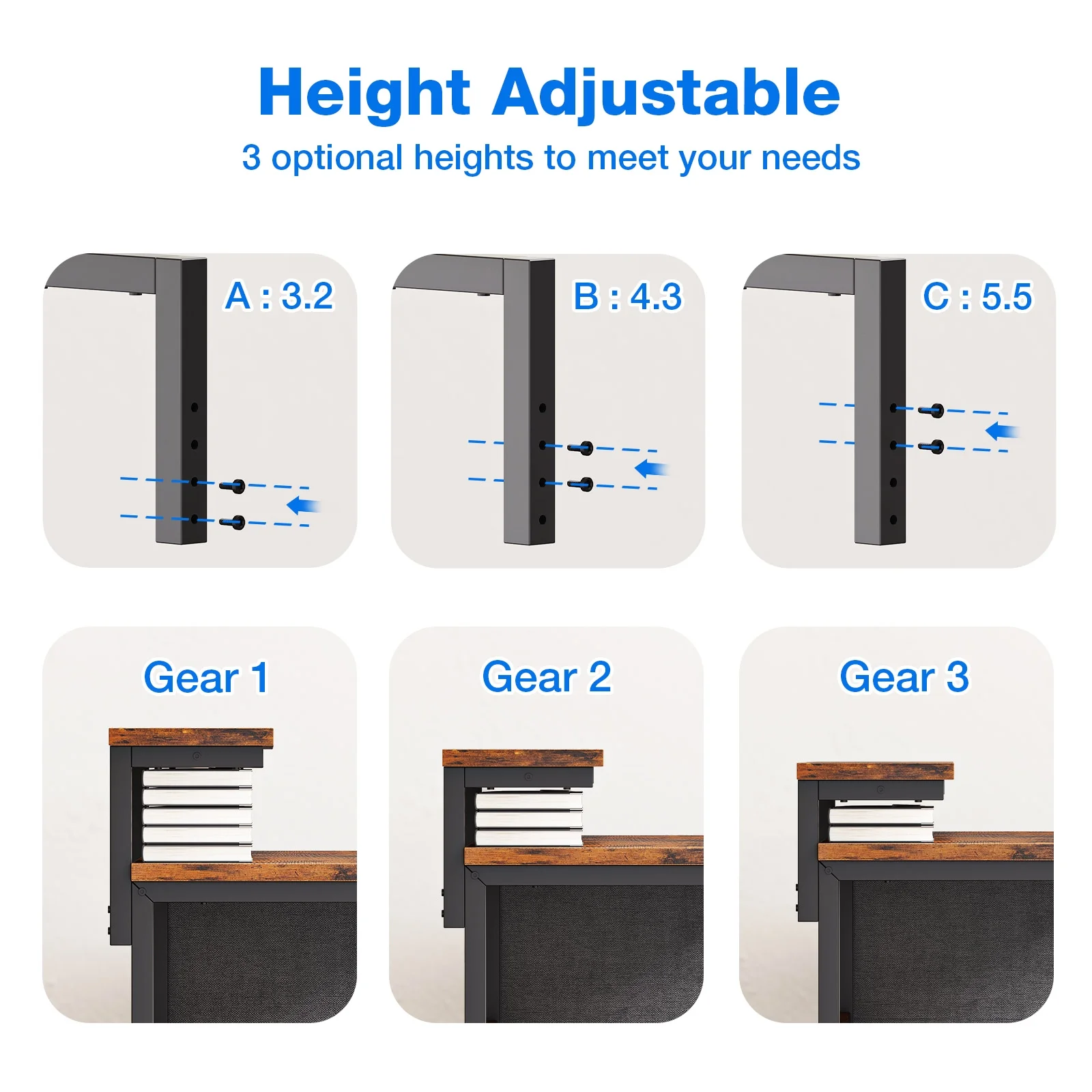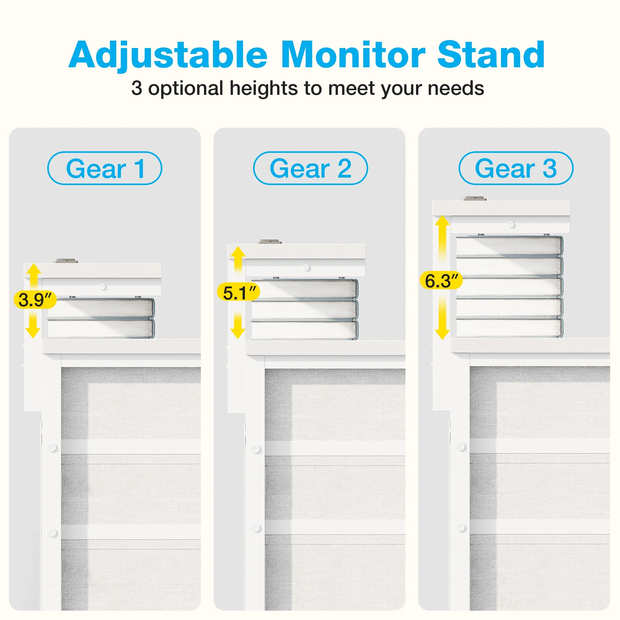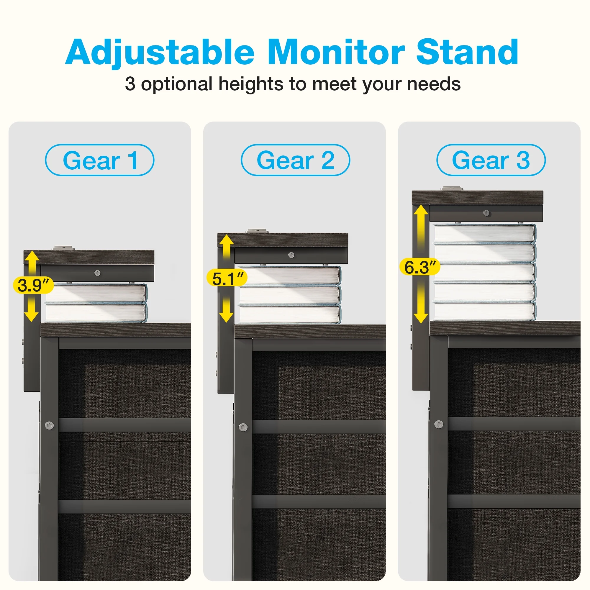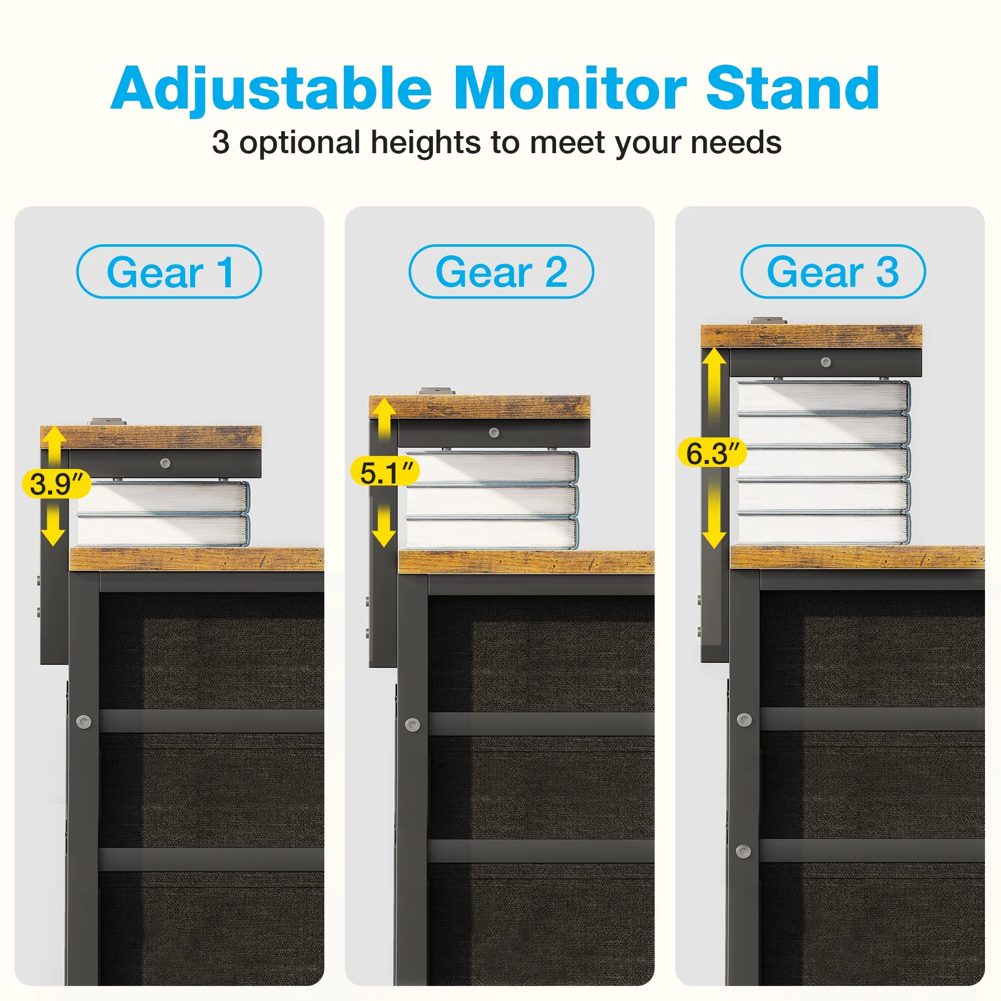- The adjustable monitor shelf allows you to customize the height of your display, ensuring a comfortable and ergonomic viewing experience.