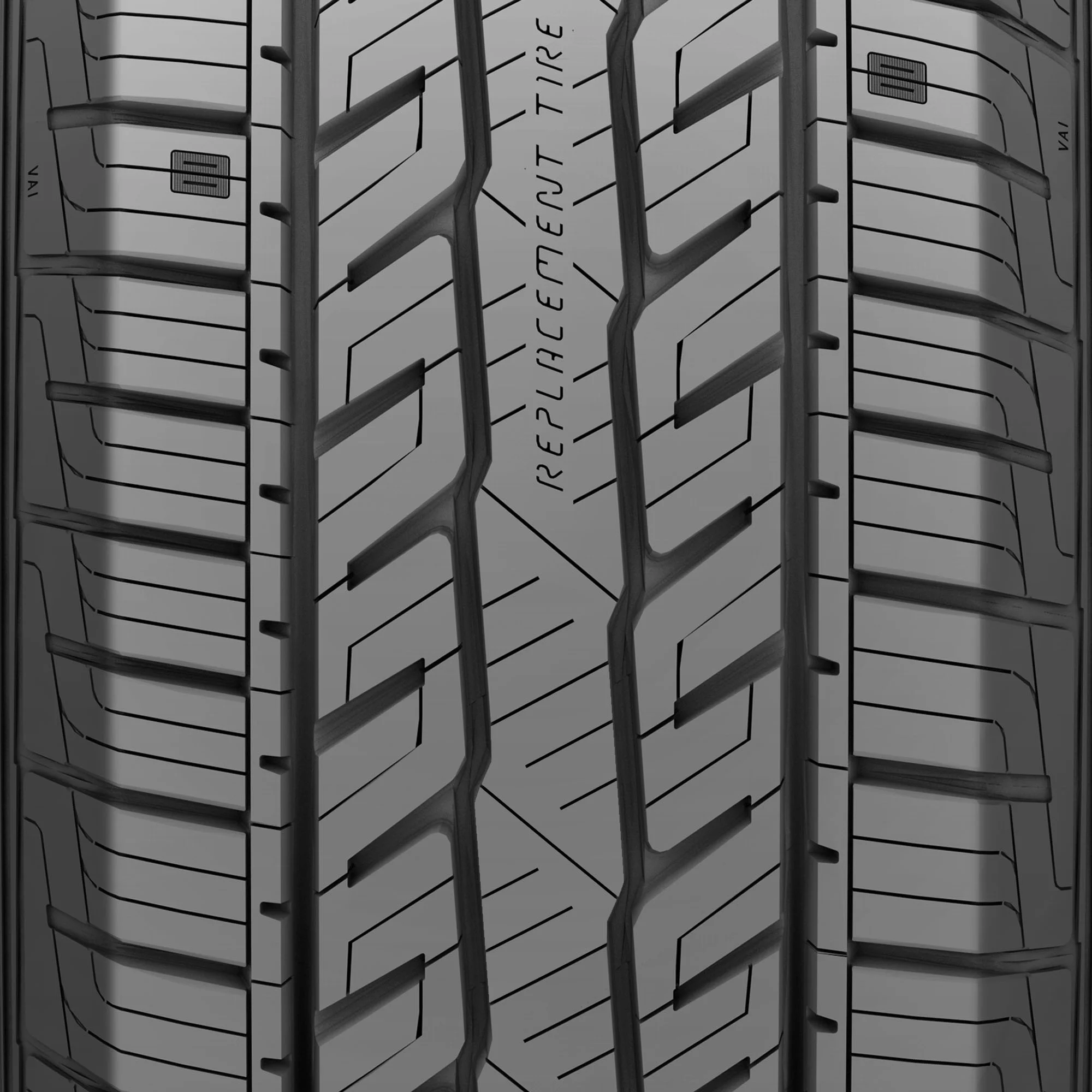 - Visual Alignment Indicators (VAI): Indicators in both sides of the tread wear off evenly, ensuring the driver of proper alignment, or wear off unevenly, alerting the driver to check the wheel alignment.