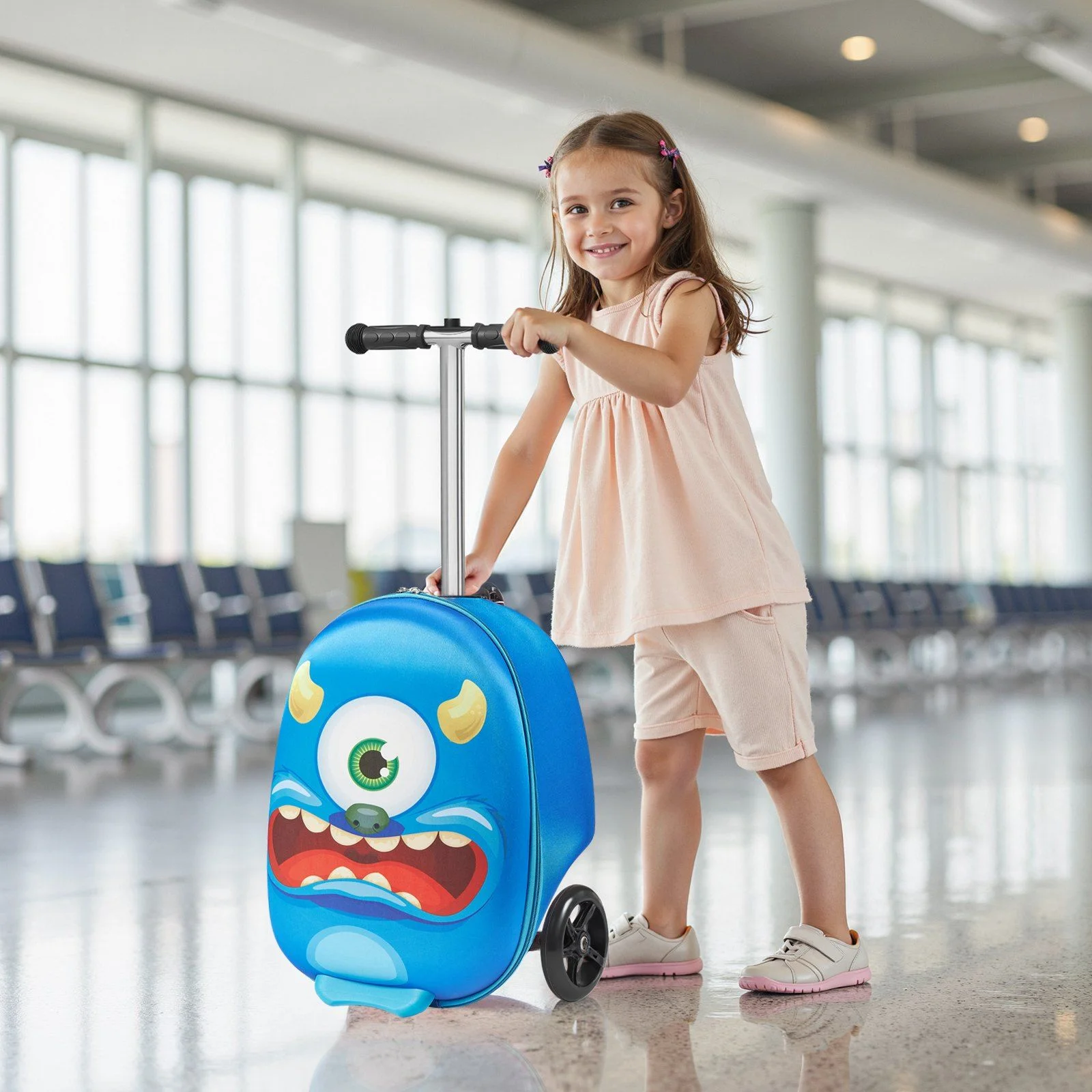 - Secure Riding: Thanks to front double wheels and a rear single-direction wheel, this kids scooter suitcase stays stable and doesn't tip over. The anti-slip TPR handle and foot brake provide steady control, even in crowded spots or on slopes.