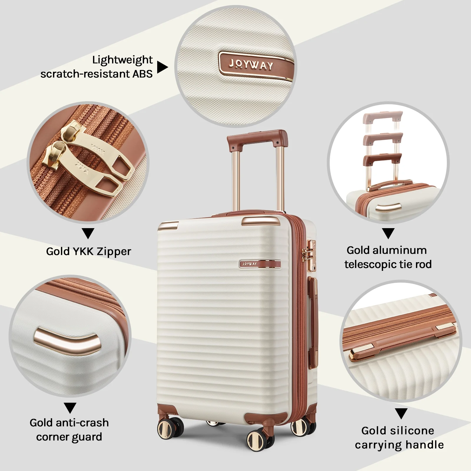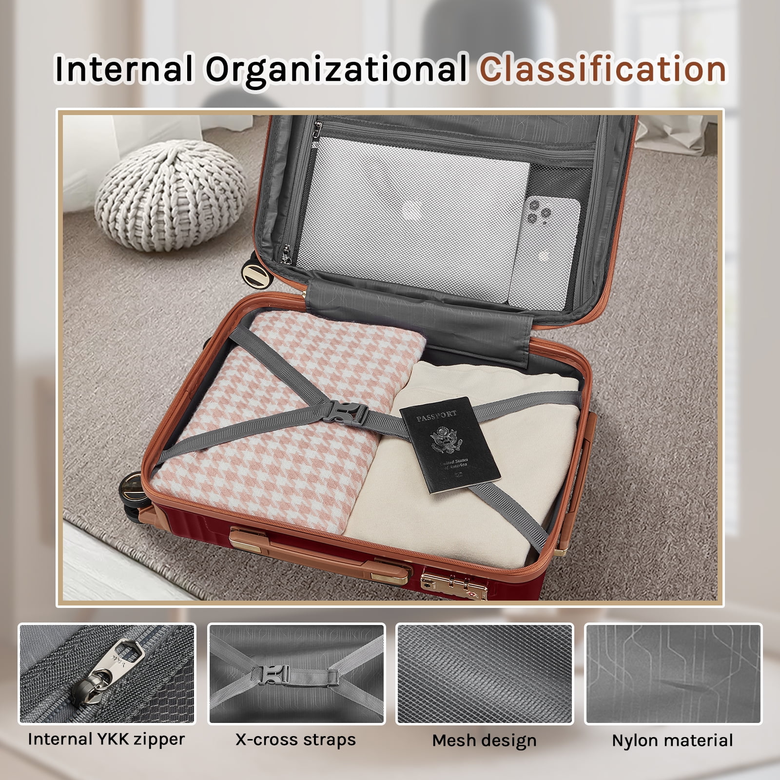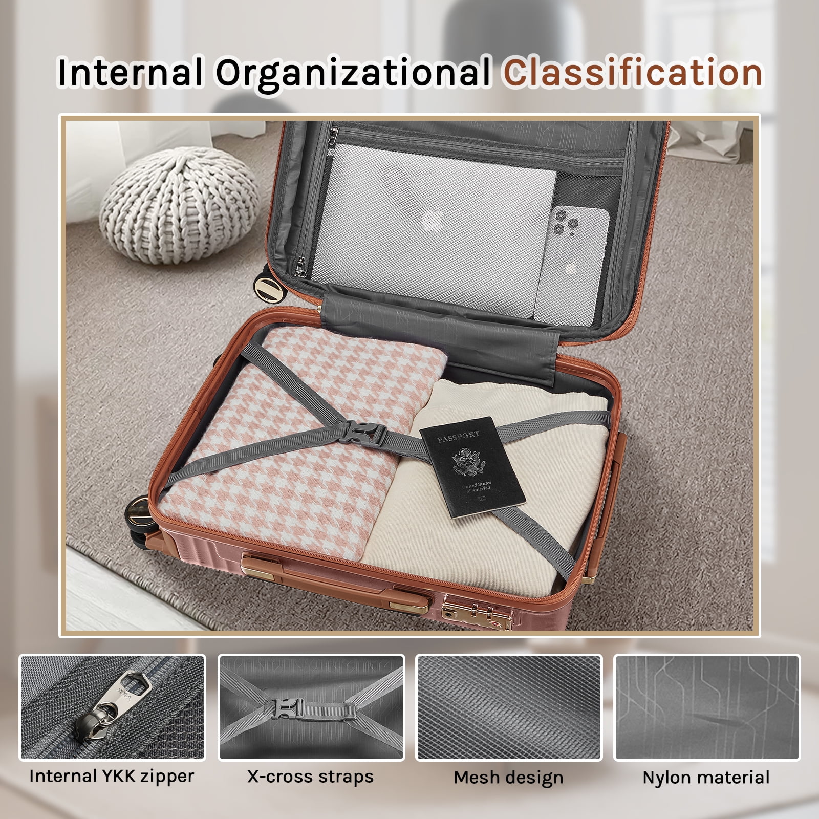 - Expandable 20% Capacity: The hard shell carry on luggage is equipped with expansion zippers, which can increase the capacity by 20%. Meanwhile, the interior of the travel carry on luggage is equipped with zippered compartments and X-shaped cross straps, making it easy to sort and organize your belongings.