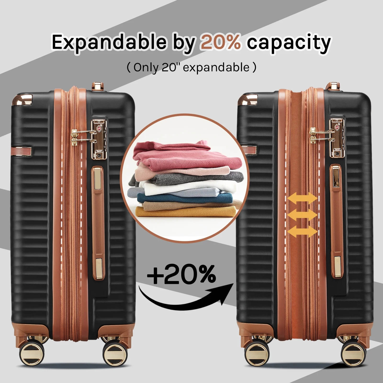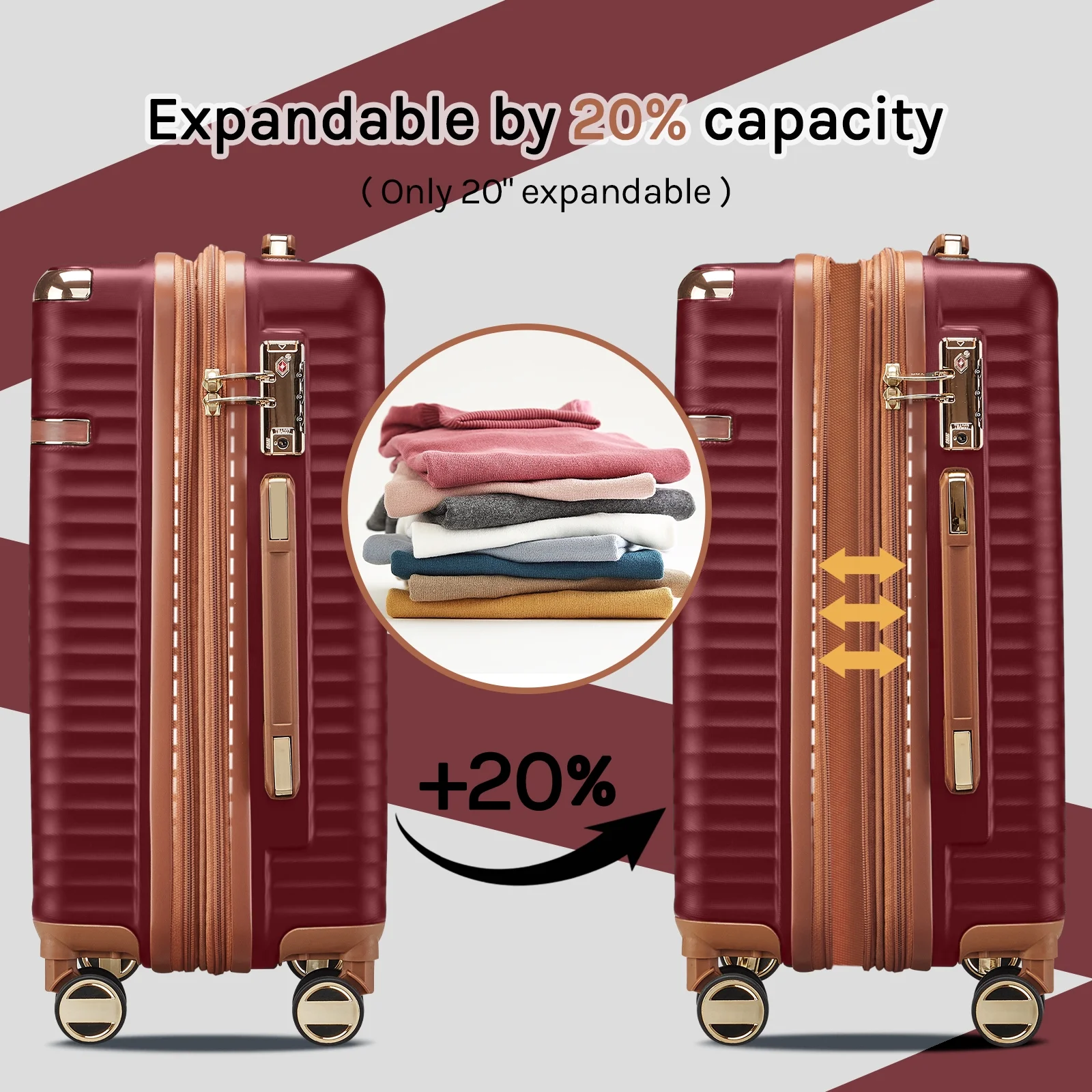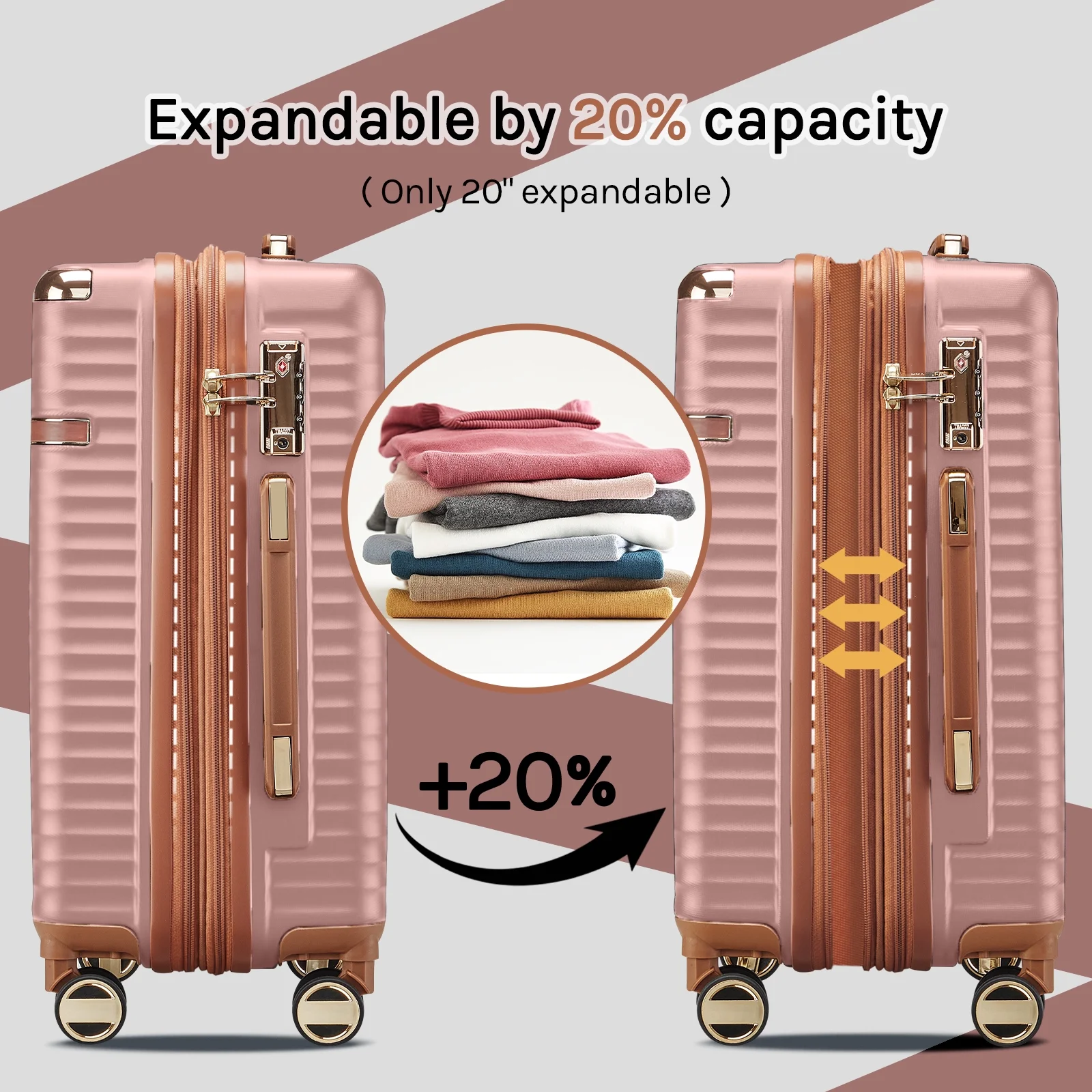 - Expandable 20% Capacity: The hard shell carry on luggage is equipped with expansion zippers, which can increase the capacity by 20%. Meanwhile, the interior of the travel carry on luggage is equipped with zippered compartments and X-shaped cross straps, making it easy to sort and organize your belongings.