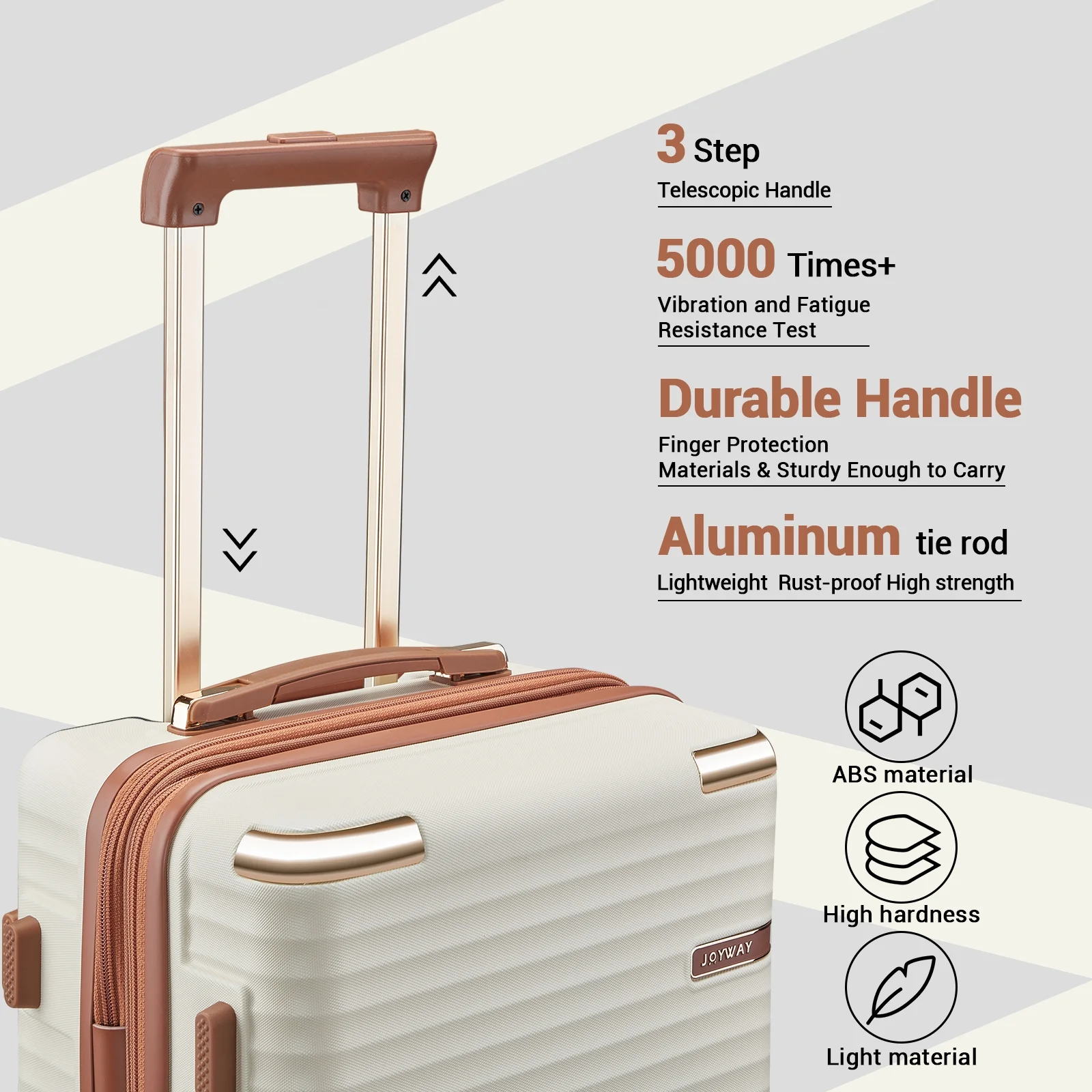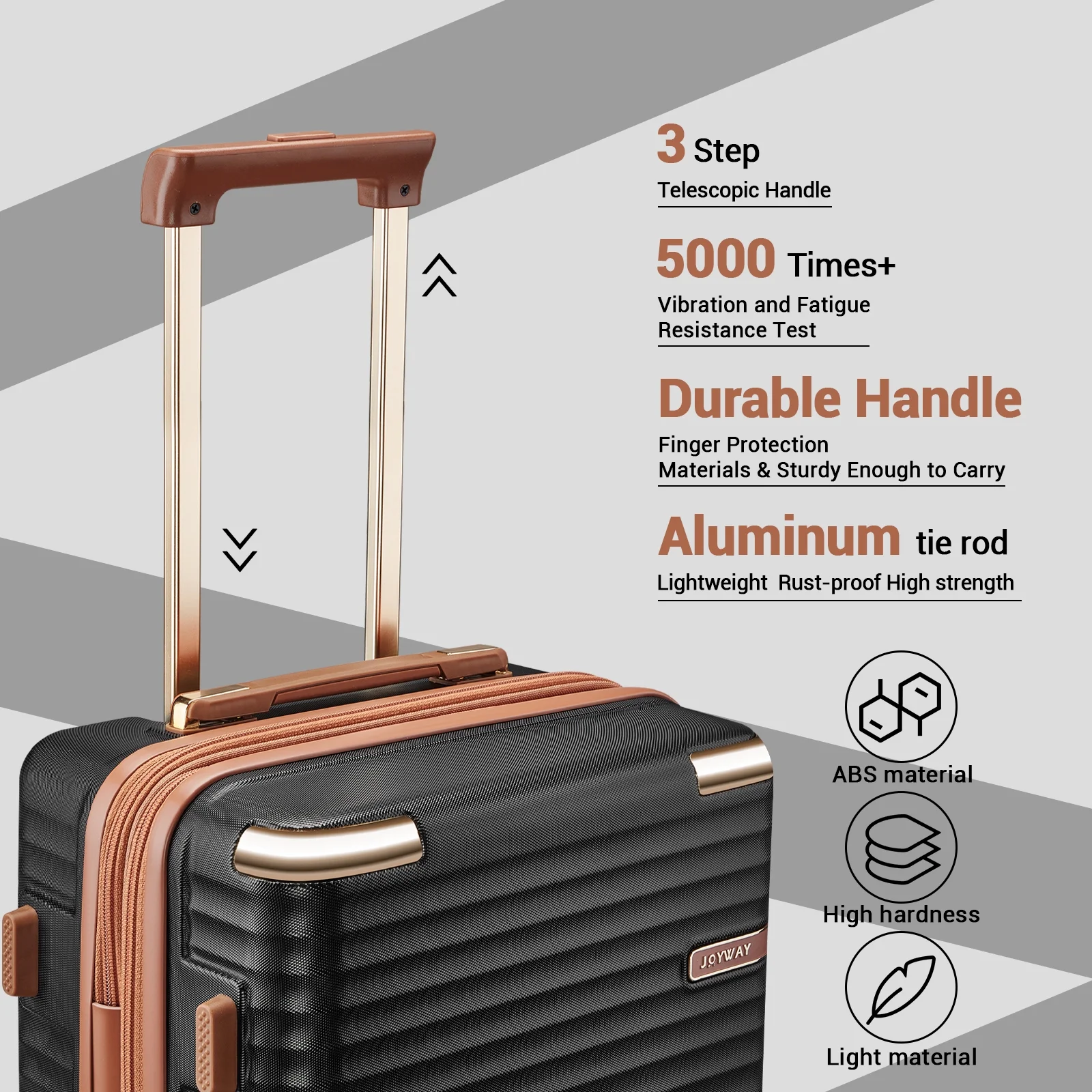 - Portable Mobility System:Our carry on suitcase with spinner wheels is designed with quiet, wear-resistant dual wheels wrapped in TPE rubber to ensure the hard case luggage moves smoothly on any road surface. Aluminum telescopic trolley bar with three gears adjustment can be adjusted according to your height at will, moving more easily.