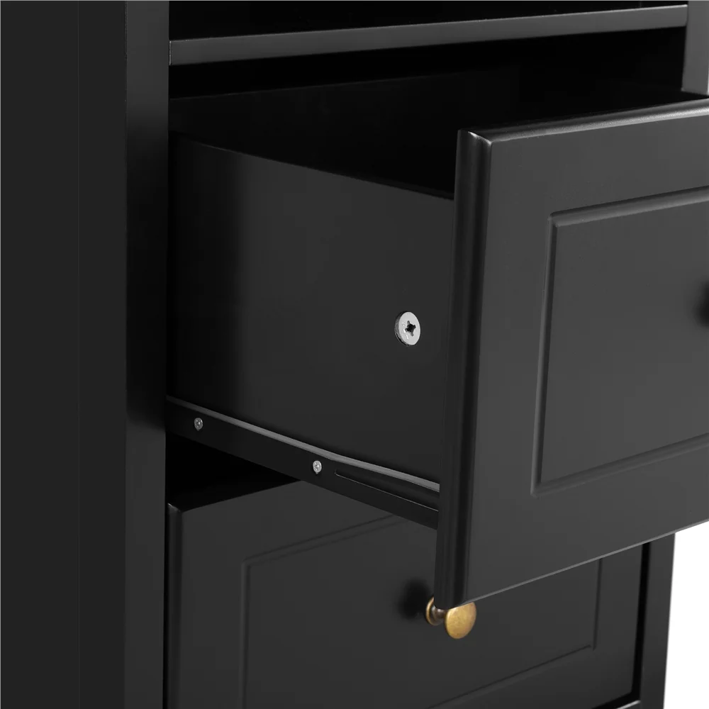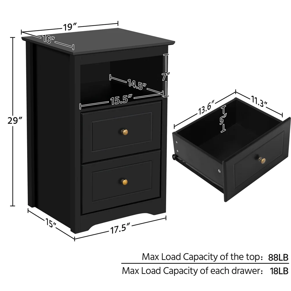 - Specifications: Quantity: 2; Color: Black; Materials: MDF, Metal; Assembled Dimensions: 18.9�?L × 15.8�?W × 28.9�?H; Drawer Inner Size: 13.4�?W × 11.3�?D × 5�?H; Maximum Weight Capacity: Tabletop: 88 lb; Drawer: 18 lb; Shelf: 22 lb.
