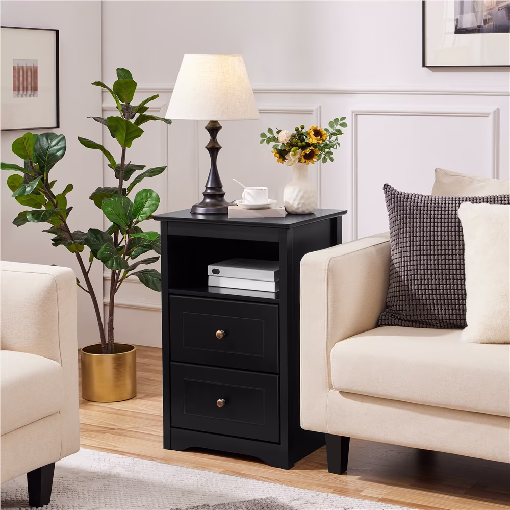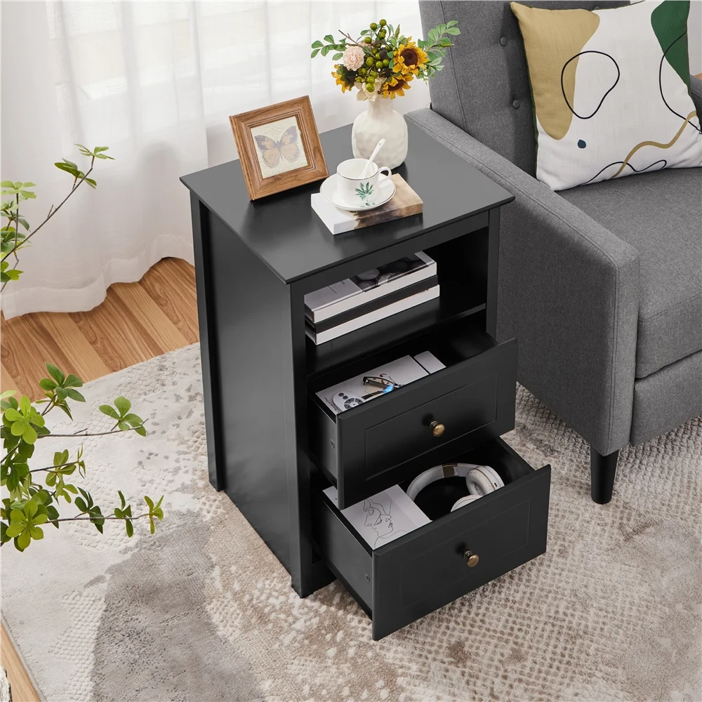 - Multi-functional: Our end table set can be used as a side table next to your sofa or bed, or as a simple storage cabinet to organize your belongings, keeping them neat and tidy. The 2 drawers provide a hidden storage space for your keys, journals, and other important items. It can also be used to store underwear, socks, and other daily essentials.