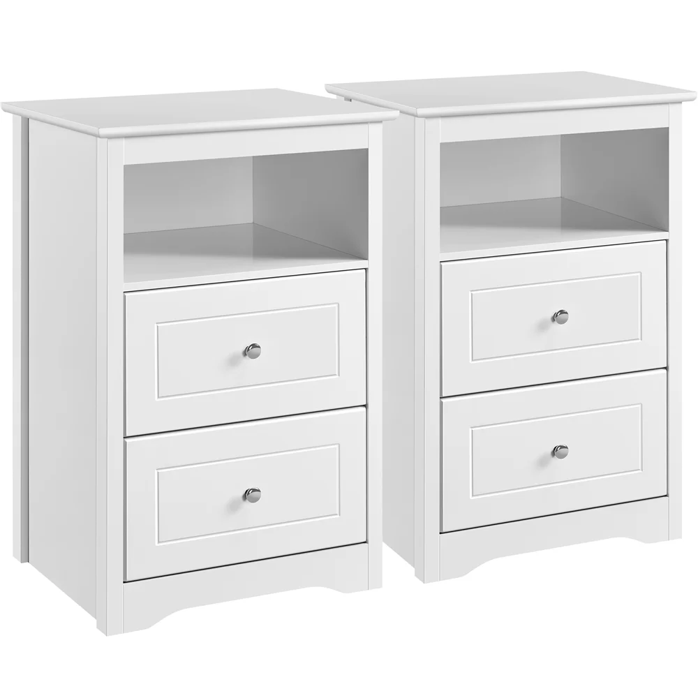 - Practical Storage Solution: Highlighting a smart design, this 2-piece bedside table set combines 1 open shelf with 2 drawers for versatile storage options. Ideal for keeping essentials within reach while displaying decorations on the open shelf and tabletop.