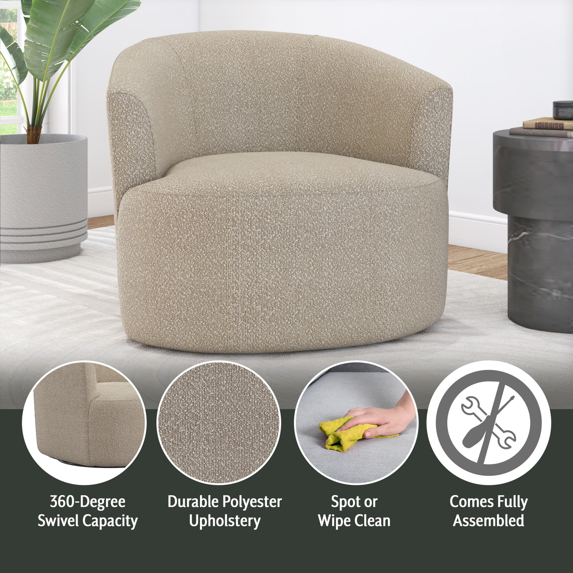 - Boucle fabric upholstery
