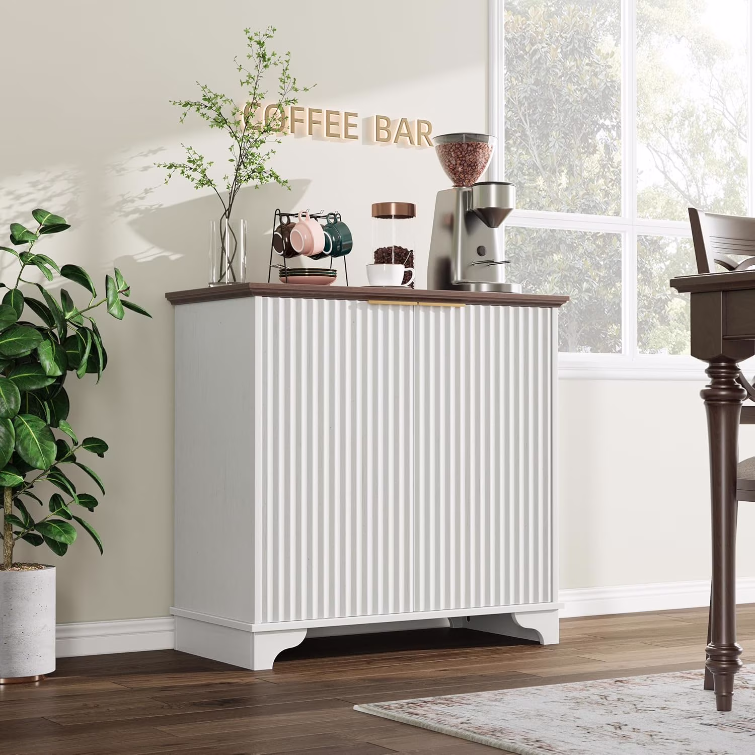 Perfect Deals Await Modern Farmhouse Coffee Bar Cabinet �?kitchen Storage Cabinet with Fluted Doors, Sideboard Buffet with Adjustable Shelves for Kitchen, Dining Room, and Living Room, White