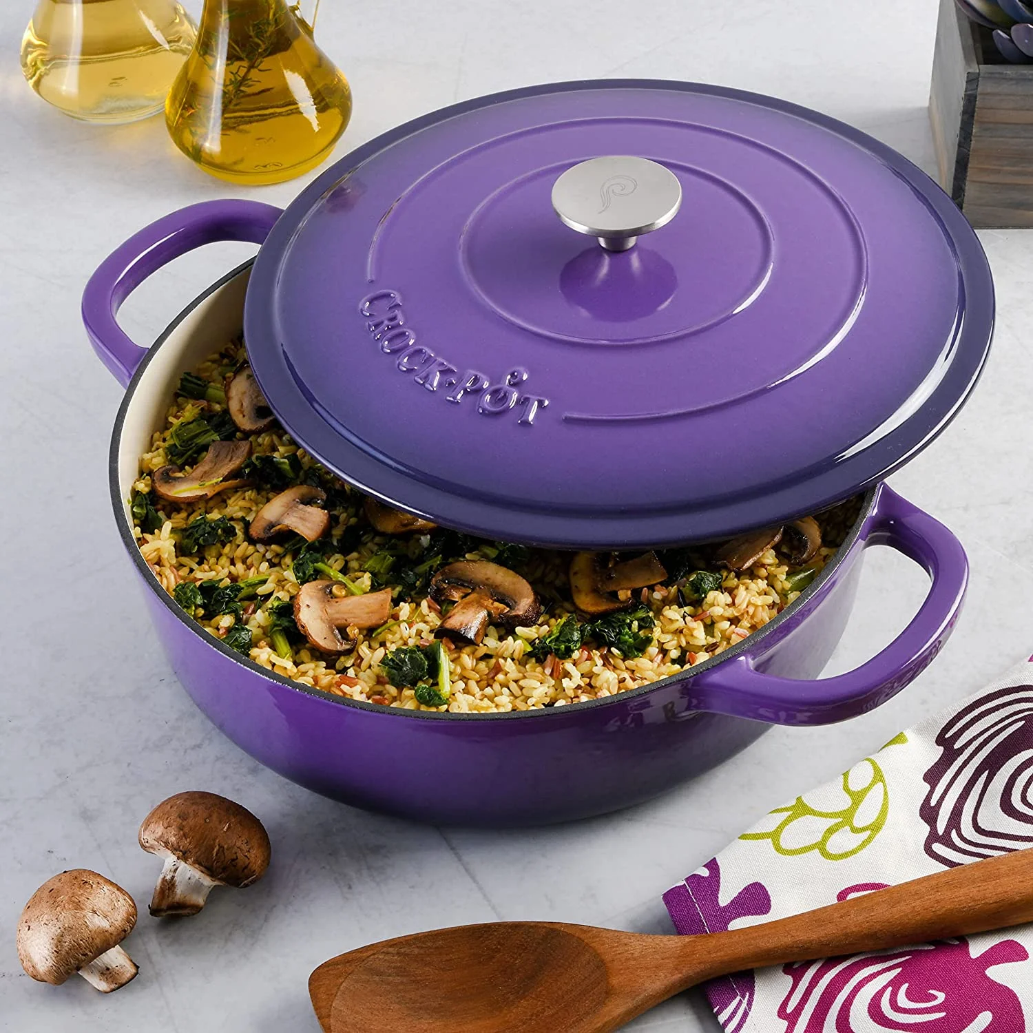 • Crock - Pot Artisan 2 Piece 5 Quart Enameled Cast Iron Braiser with Lid in Lavender