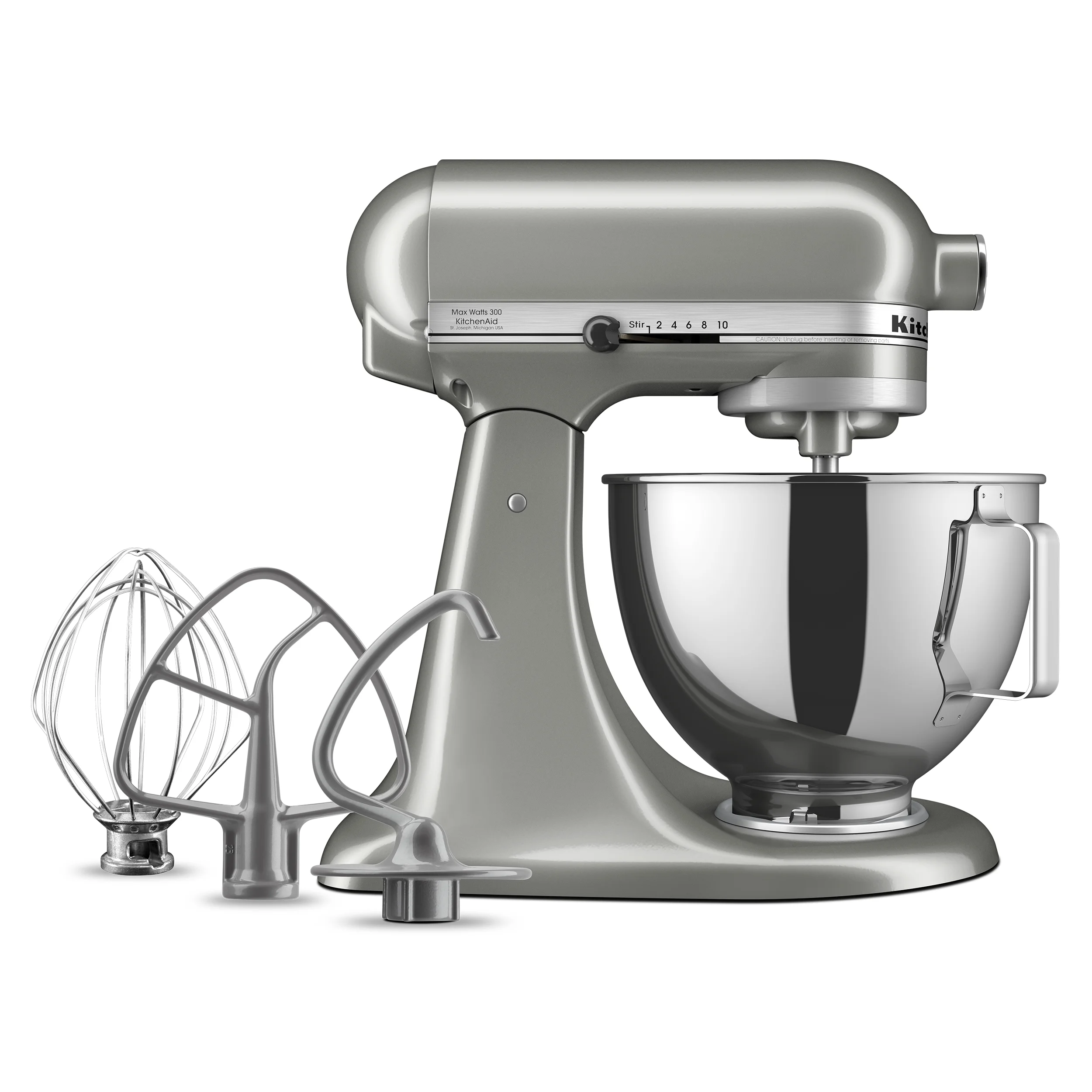 - Model KSM97 includes (1) 4.5 Quart Stainless Steel Bowl with Handle, (1) Coated Flat Beater, (1) Coated Dough Hook, (1) 6-Wire Metal Whip