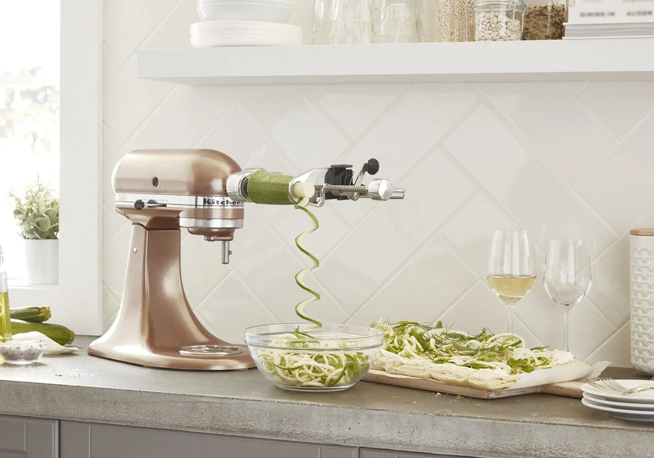 - Over 10 Attachments Available to Make More with your Mixer*. A variety of versatile attachments to make everything from fresh pasta to burgers, veggie noodles, ice cream and more (*attachments sold separately)