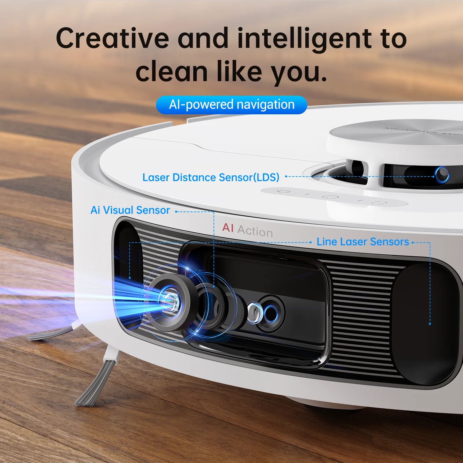 - Features an advanced laser navigation system that accurately maps and positions the robot for precise cleaning control