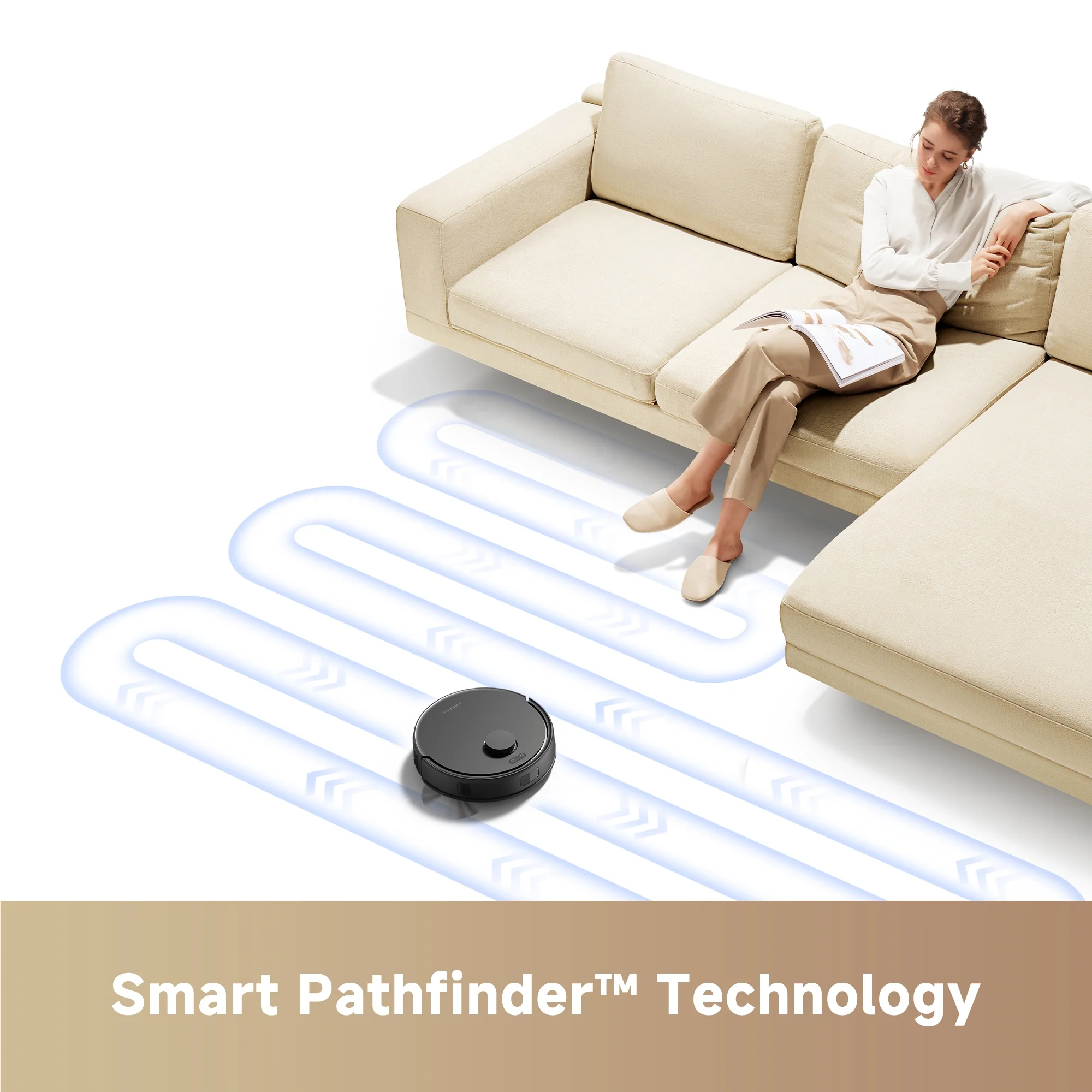 - Designed with a compact 9.6cm height and 32cm diameter to smoothly navigate around furniture