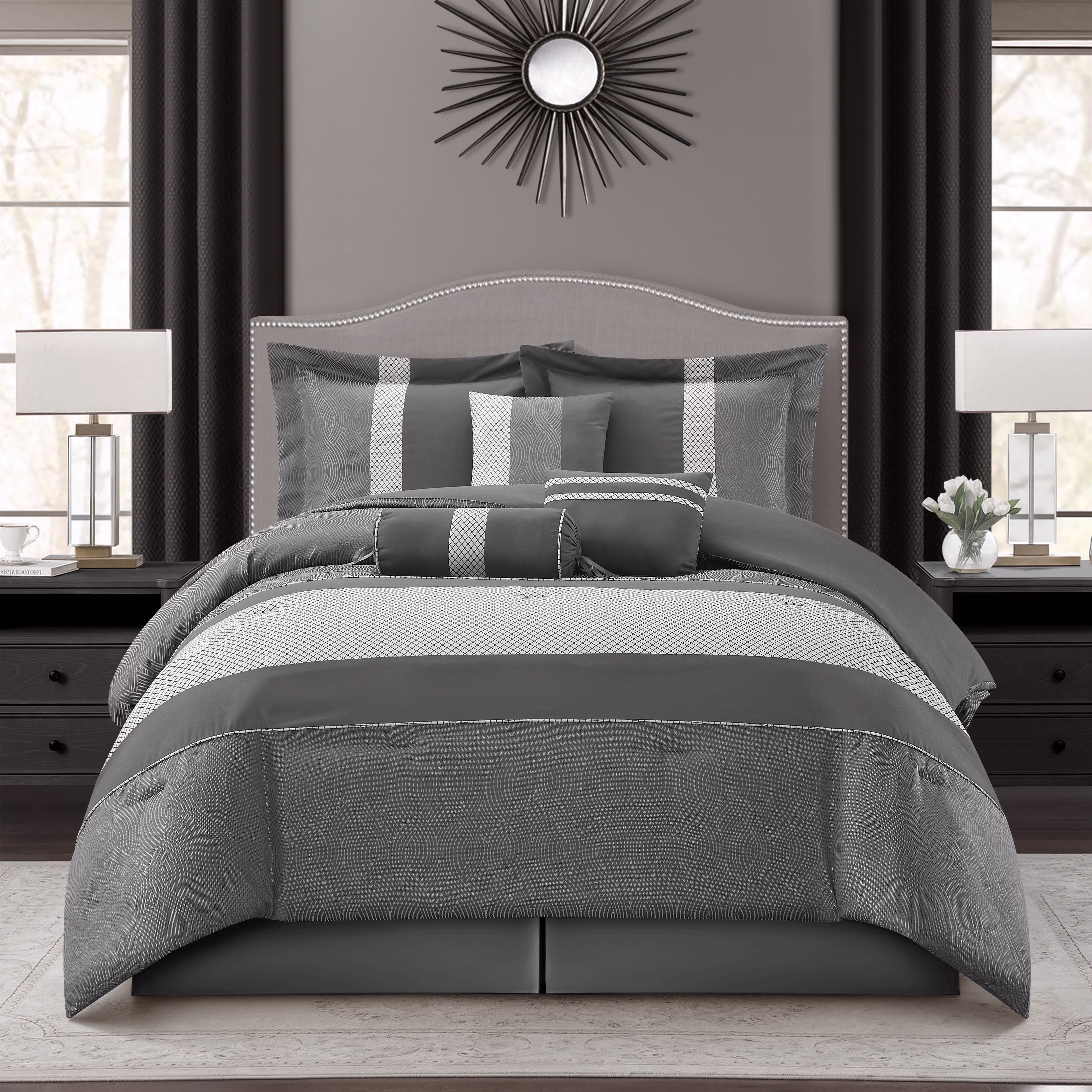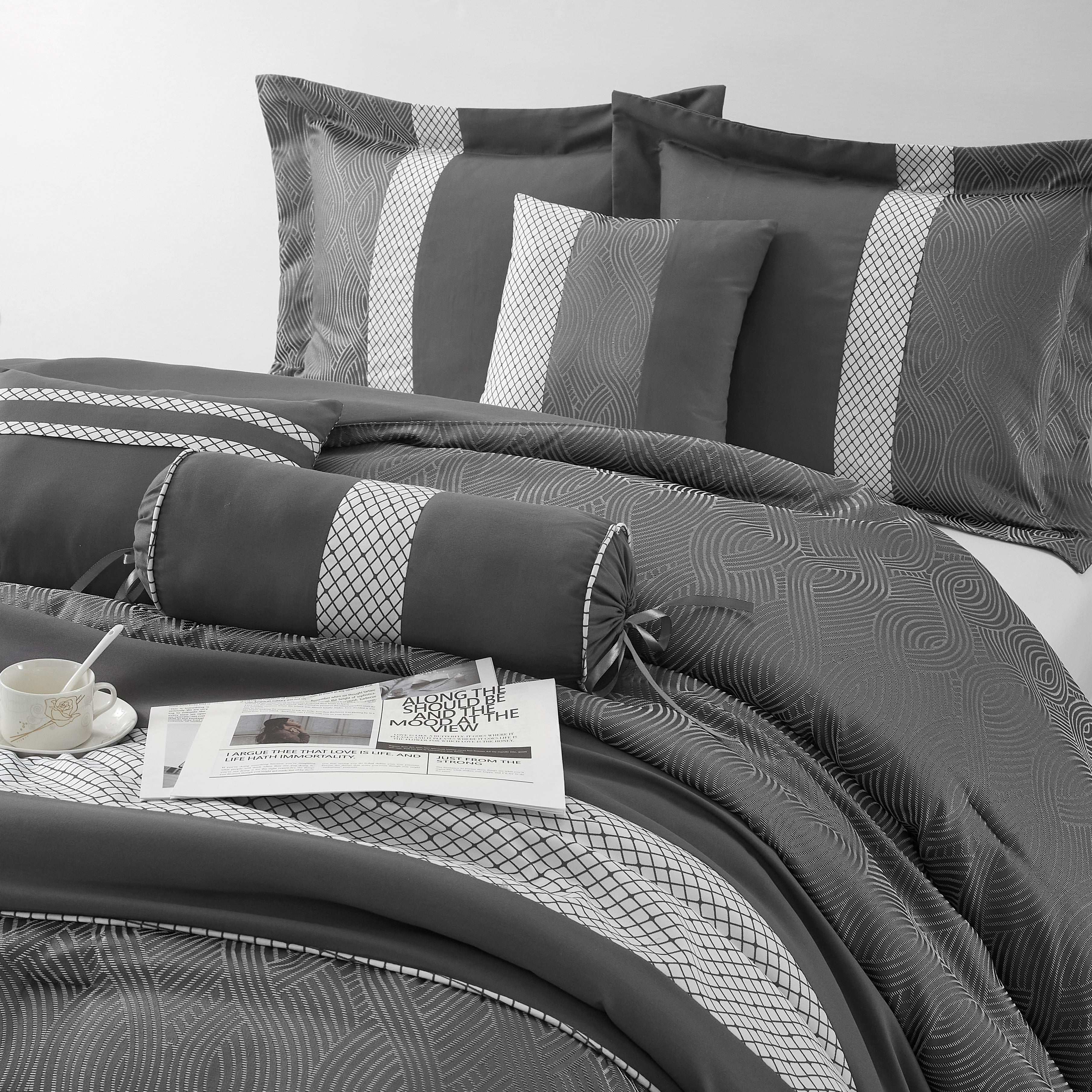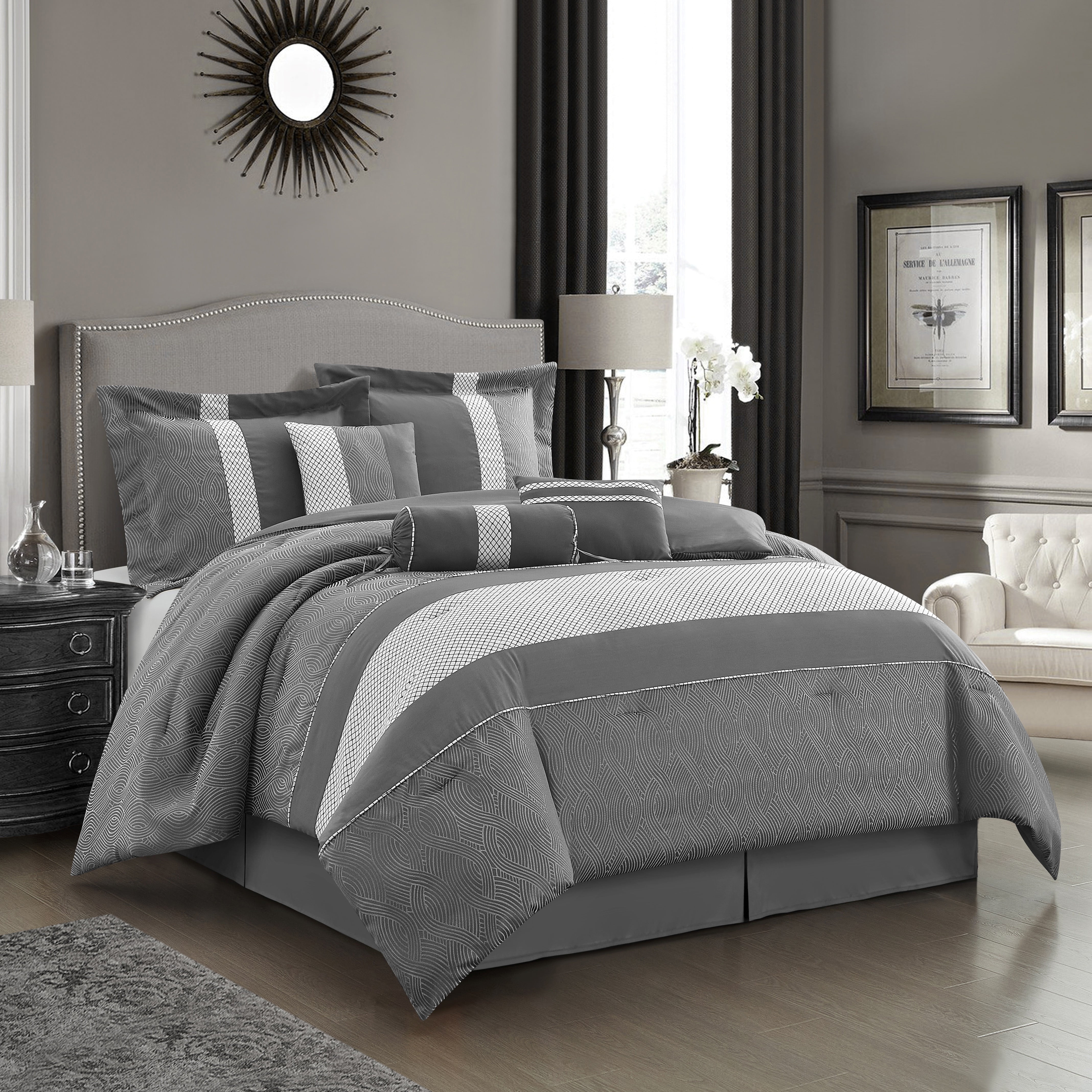 - Set Includes: (1) Comforter, (2) Shams, (1) Bed skirt, (3) Decorative Pillows