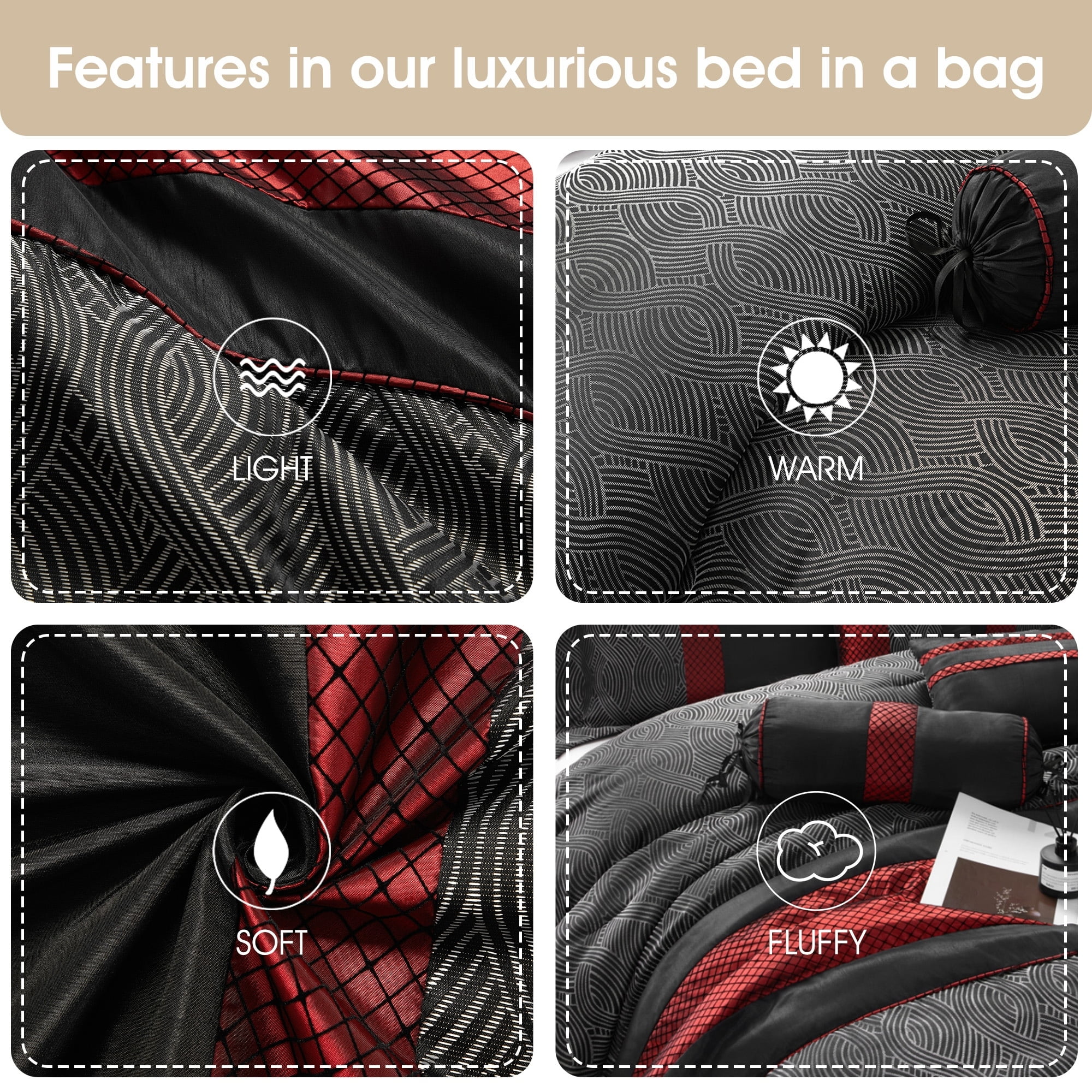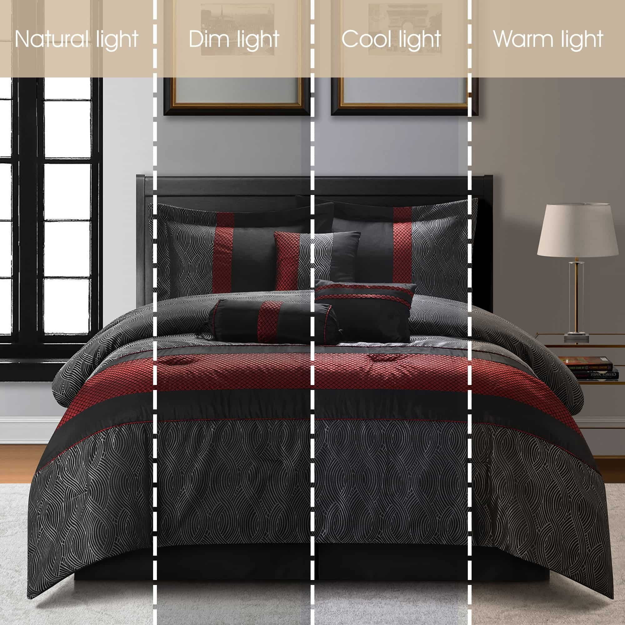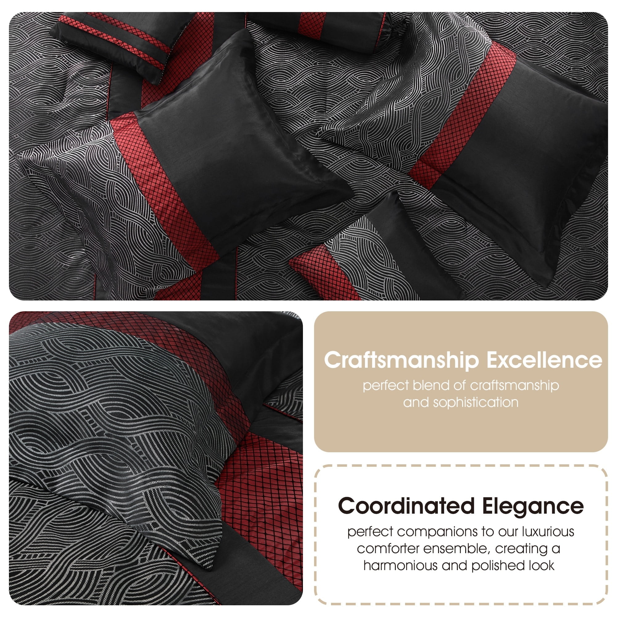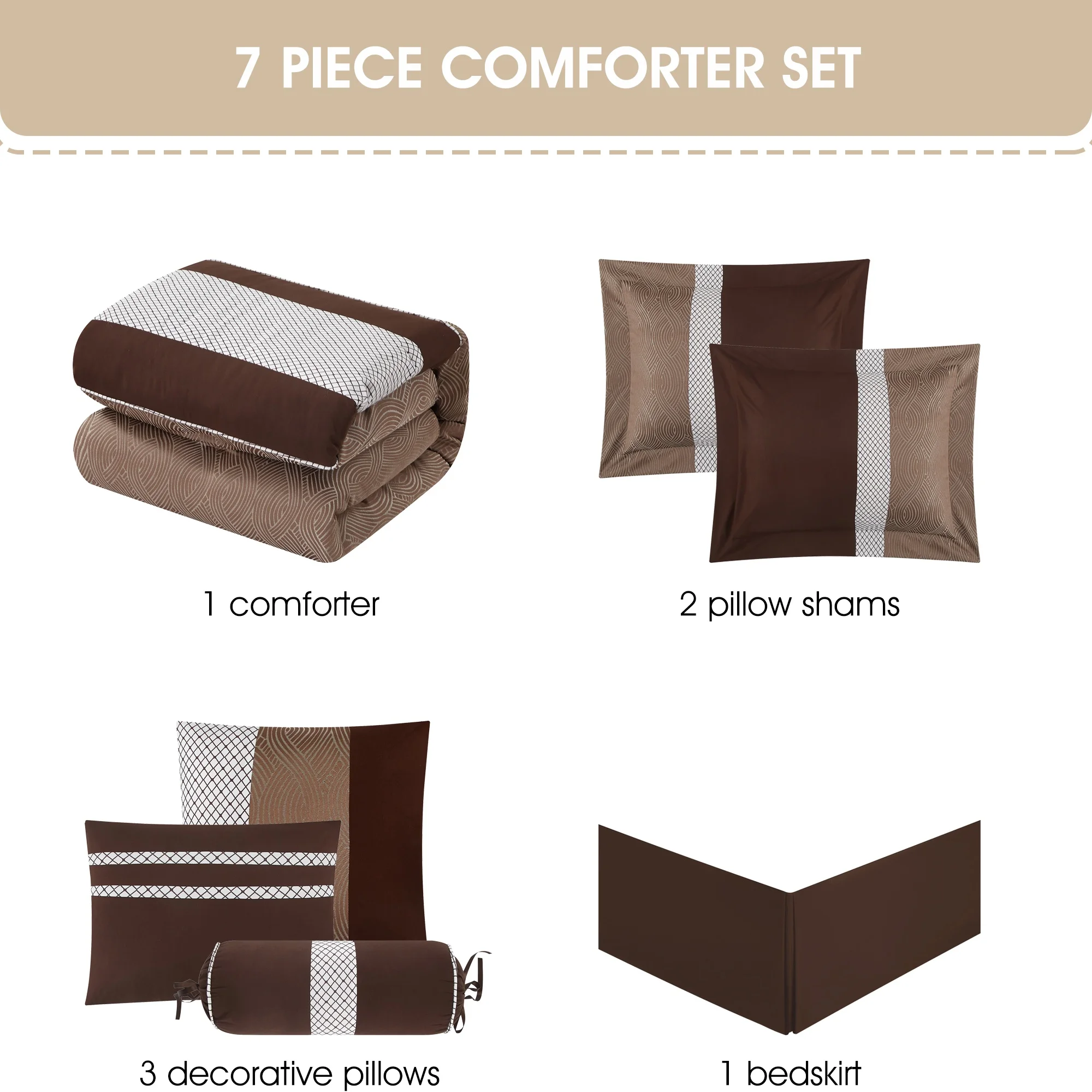 - Set Includes: (1) Comforter, (2) Shams, (1) Bed skirt, (3) Decorative Pillows