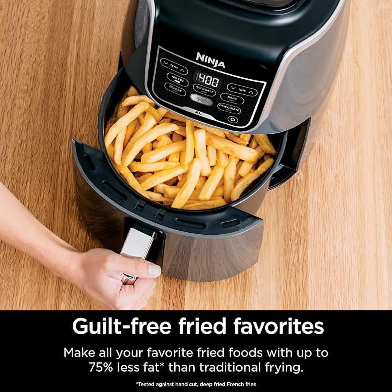 Ninja AF150AMZ Air Fryer XL, 5.5 Qt. Capacity That Can Air Fry, Air Roast, Bake, Reheat & Dehydrate, with Dishwasher Safe, Nonstick Basket & Crisper Plate and a Chef - Inspired Recipe Guide, Grey
