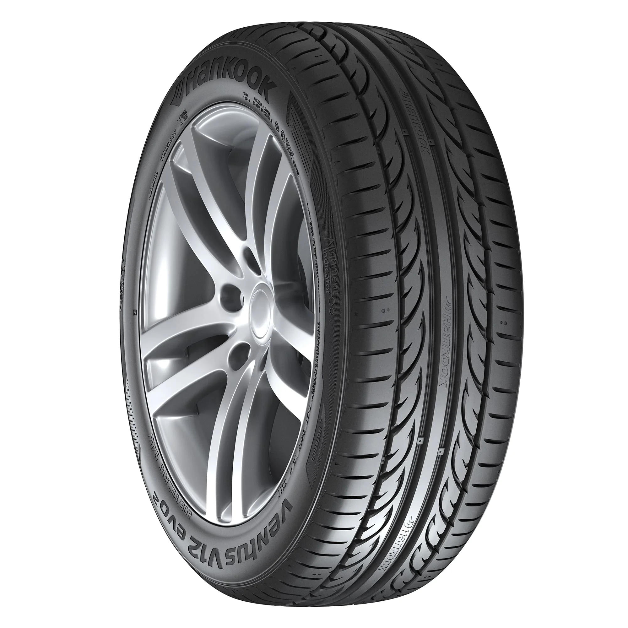 Enjoy the exceptional traction and handling you will get with the Hankook Ventus V12 EV02 tire. As a performance summer tire, you can get maximum value with the purchase of the Ventus V12 EV02 for sports cars, coupes, and high-performance sedans. Enjoy the comfort and control from the enhanced noise reduction and improved traction. These tires are meant for summer use and can function well in warm and dry or wet road conditions. Not intended for use in near-freezing climates, on ice, or through snow, the Hankook Ventus V12 EV02 tire will serve you well during the warmer months of the year. As a radial tire, the V12 EV02 contains a high-grip silica tread compound. This compound includes the use of styrene polymer which provides lower rolling resistance and better fuel economy. The directional tread design contains notched shoulder and 3D sipes around a continuous center rib. This gives enhanced traction and dry handling.