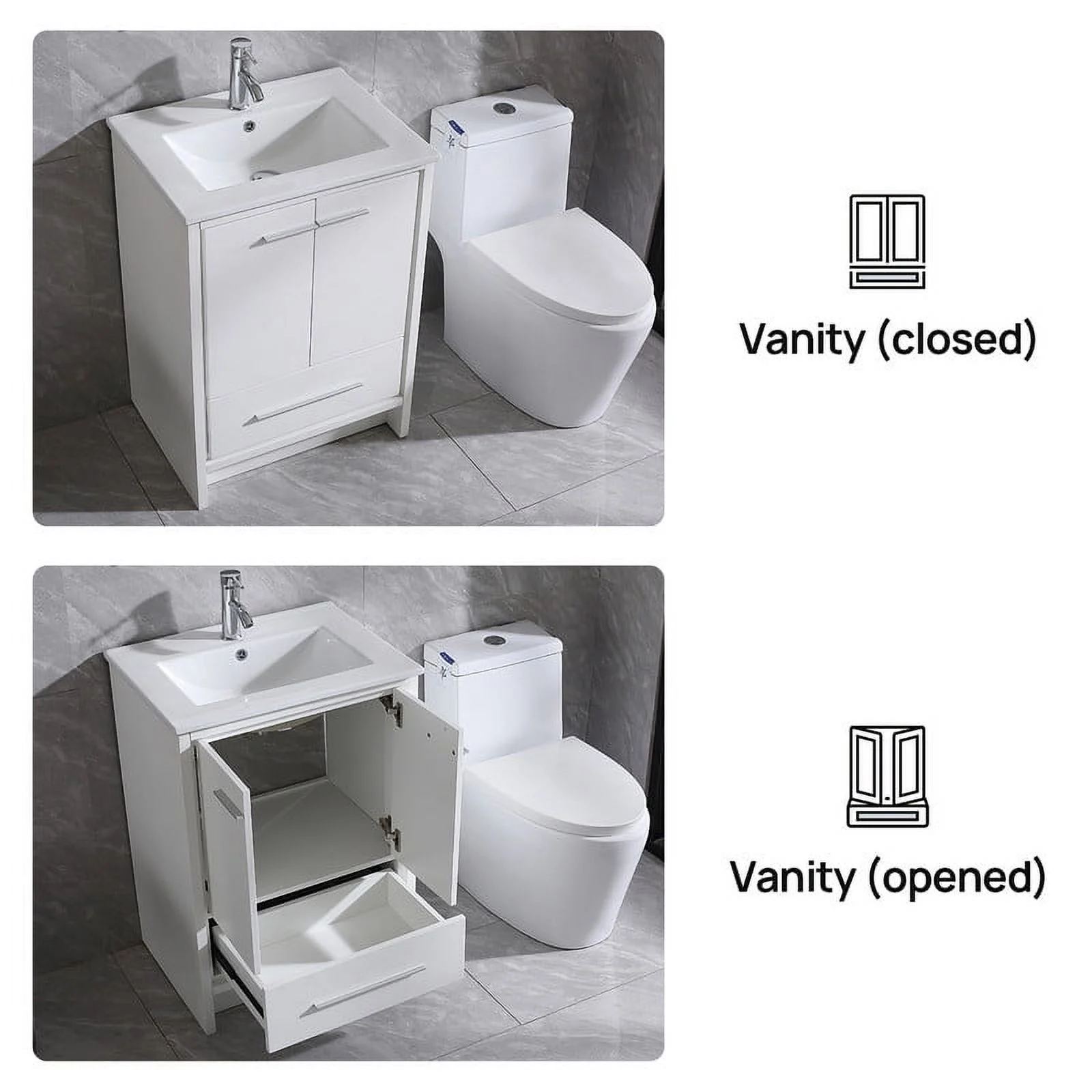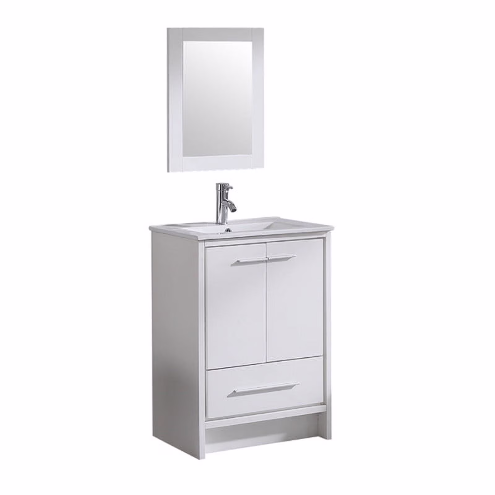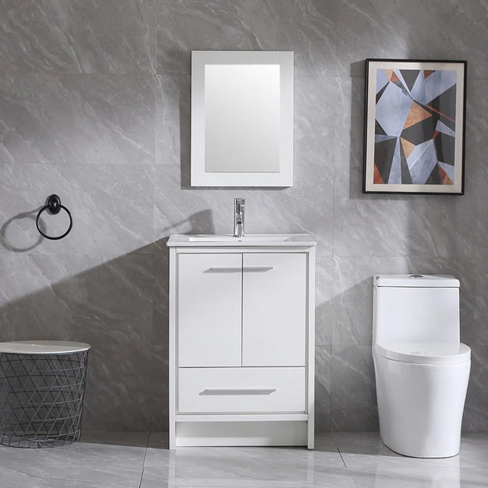 Walsport 24" Luxurious Bathroom Vanity with Ceramic Sink and Countertop and Mirror and Faucet, Double Door Stand Floor Cabinet Bathroom Storage Vanity with Pop up Drain, White