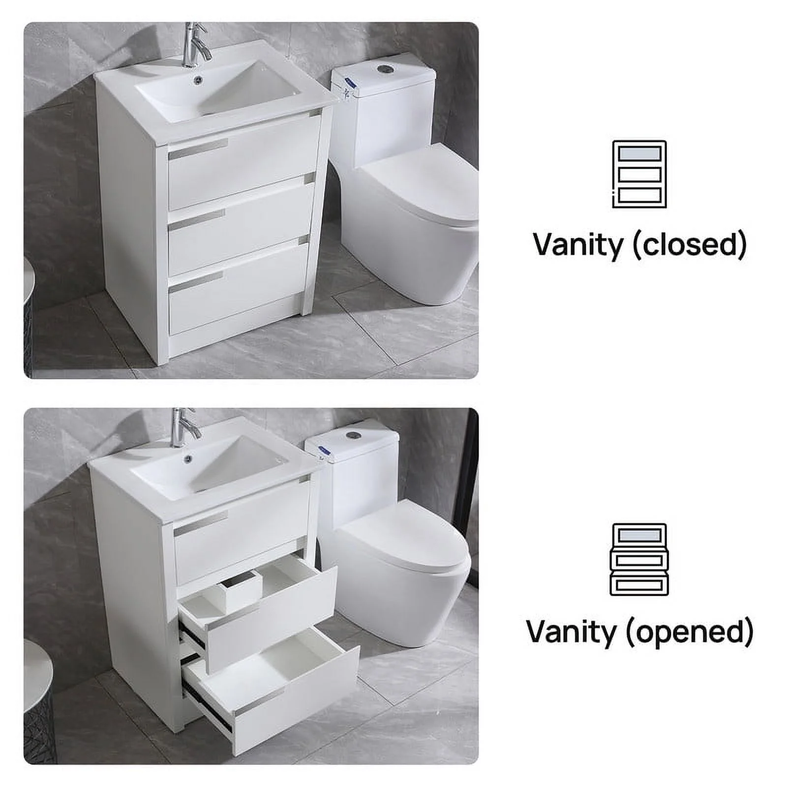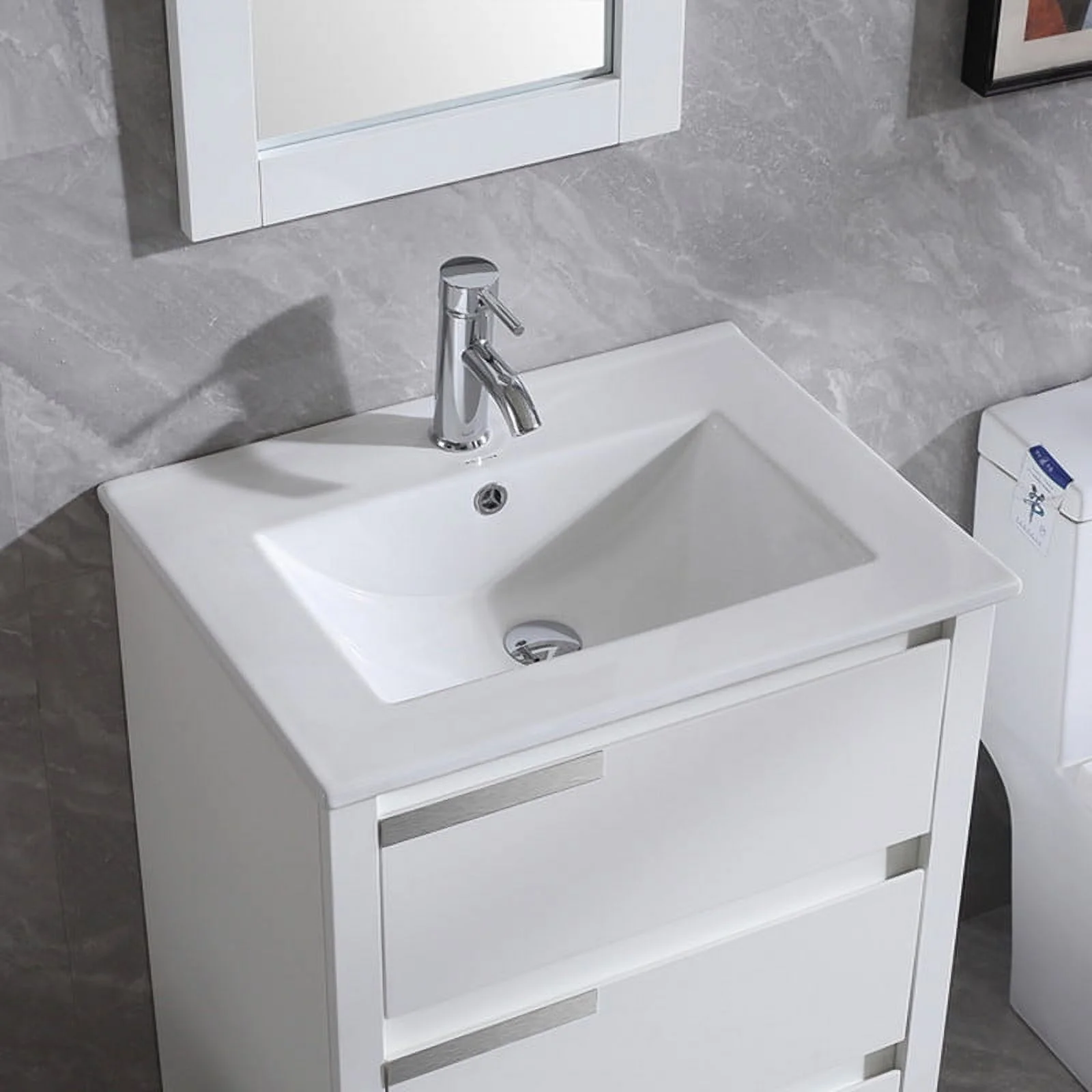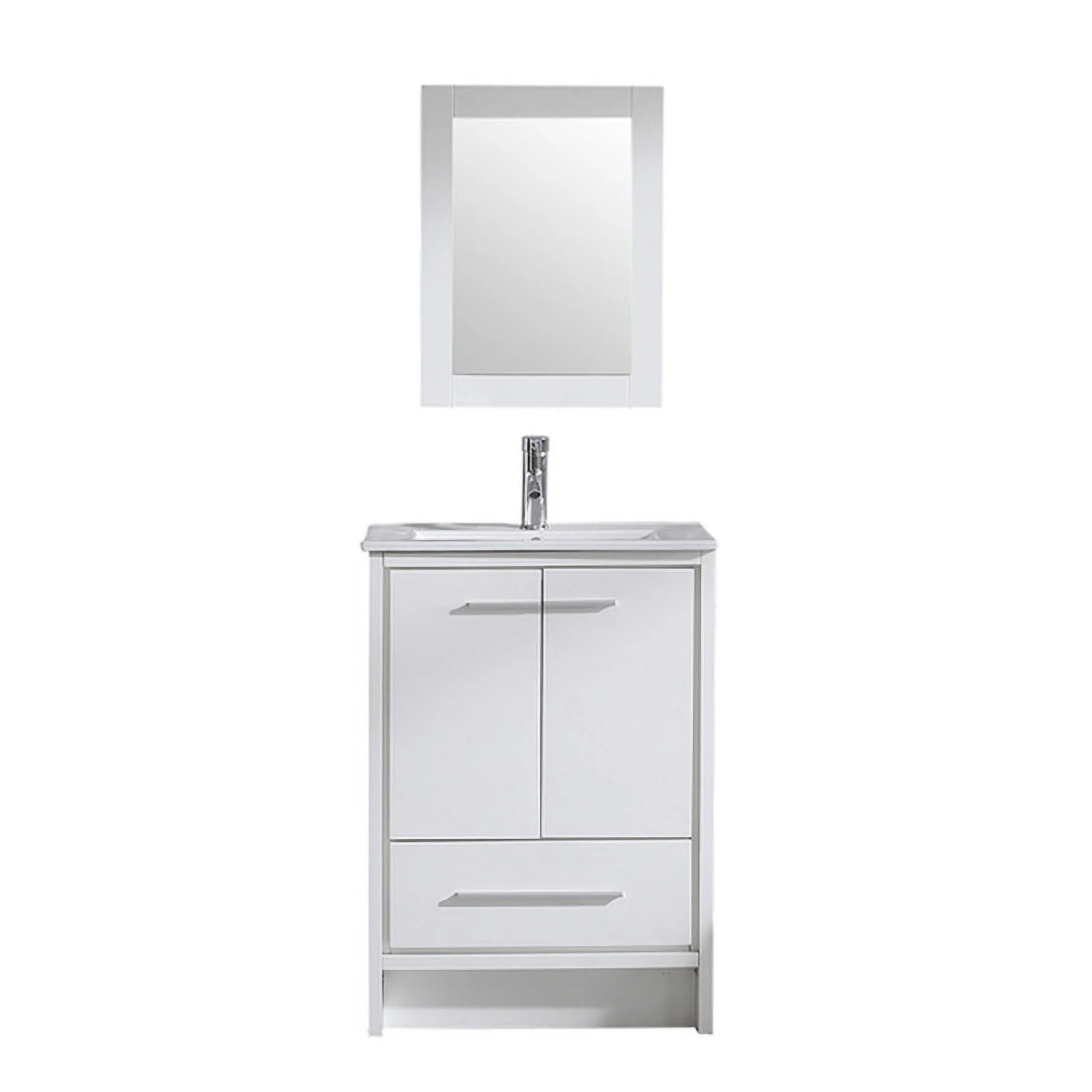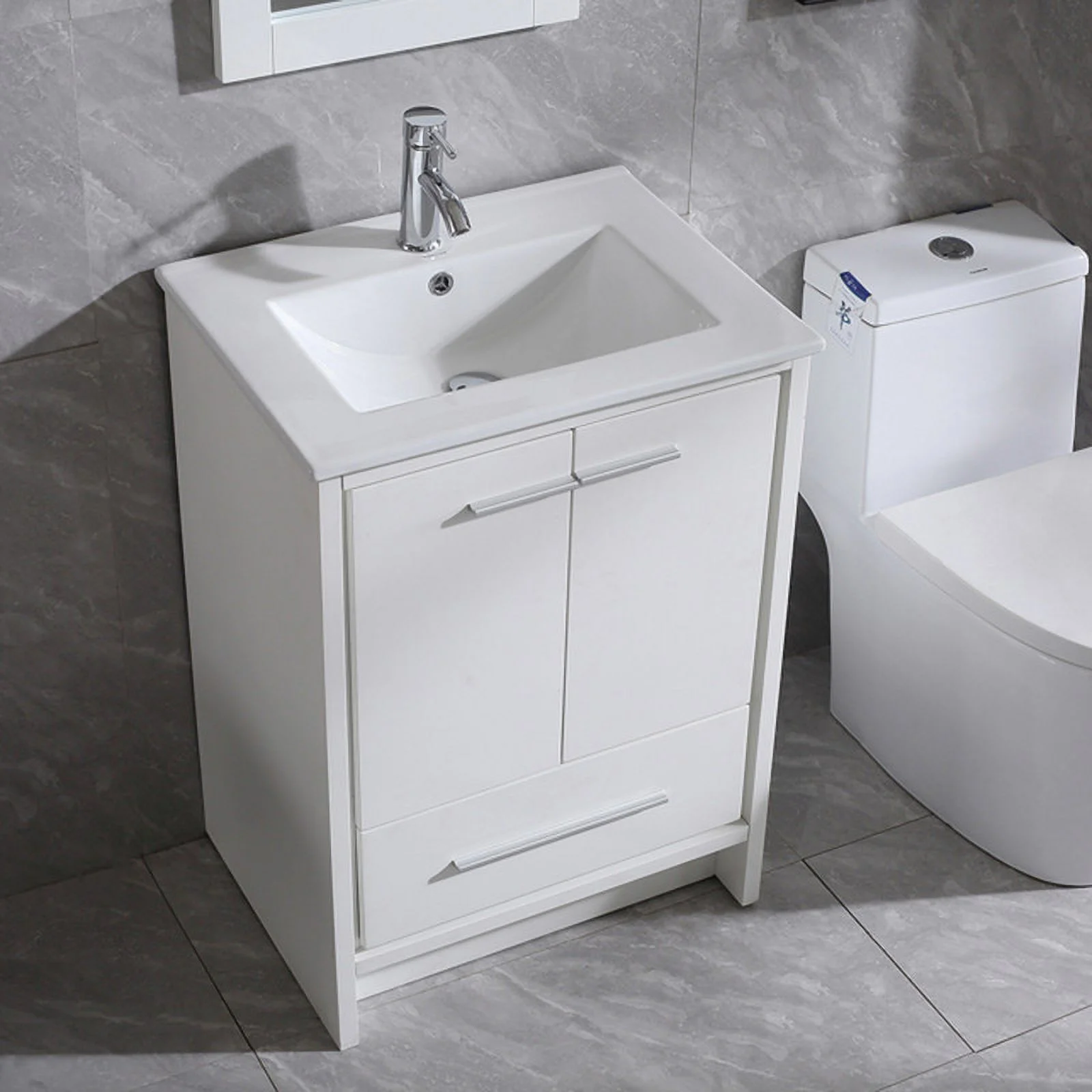 Walsport 24" Luxurious Bathroom Vanity with Ceramic Sink and Countertop and Mirror and Faucet, Double Door Stand Floor Cabinet Bathroom Storage Vanity with Pop up Drain, White