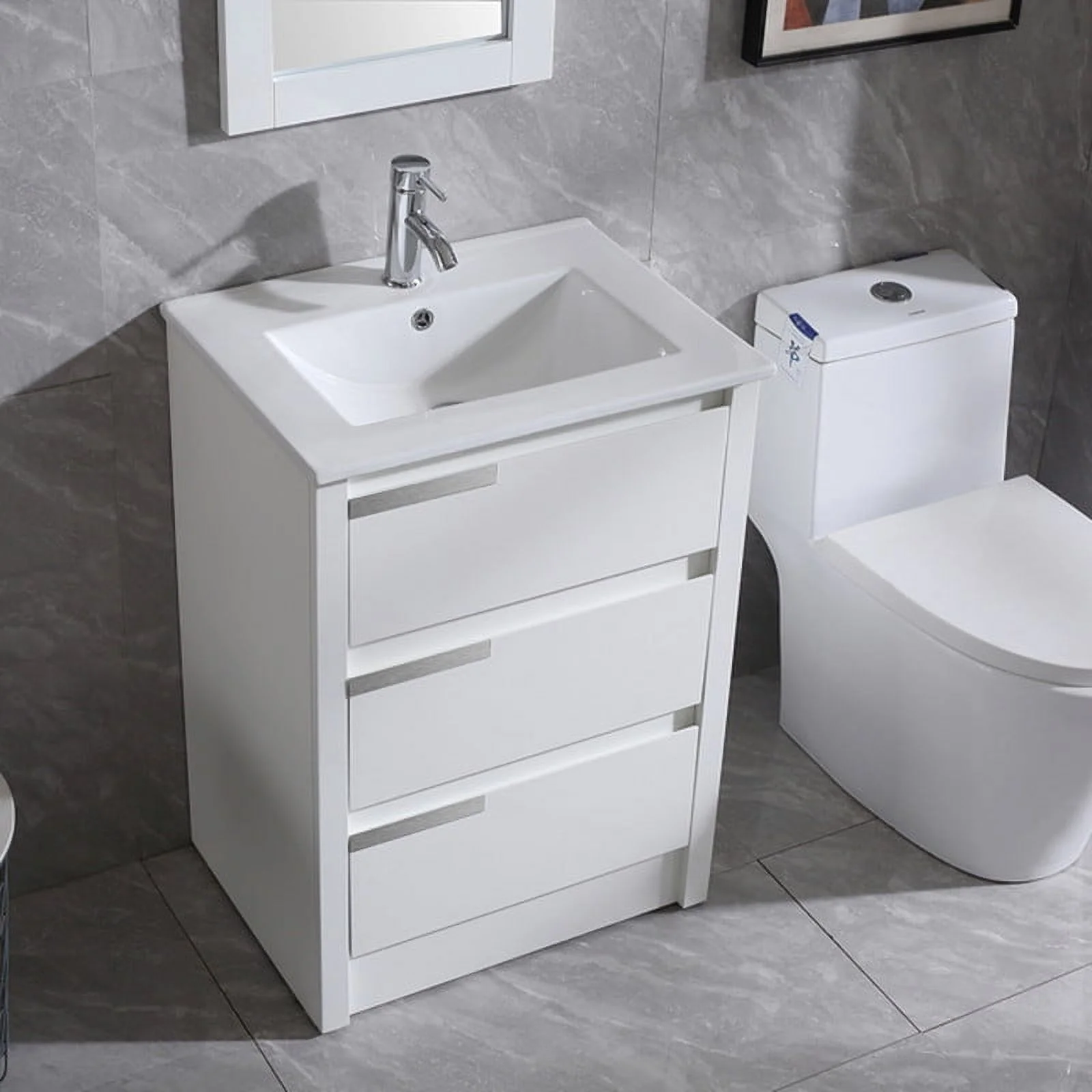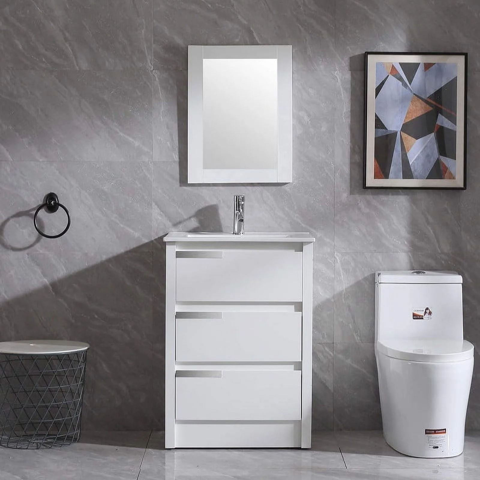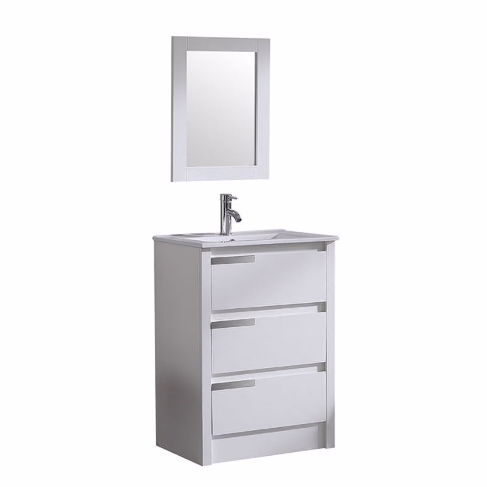 - Bathroom Vanity Set:Vanity Cabinet,Mirror,Ceramic Sink,Faucet,Pop-Up Drain,Hot and Cool Water lines,Other Sink Accessories are all included.