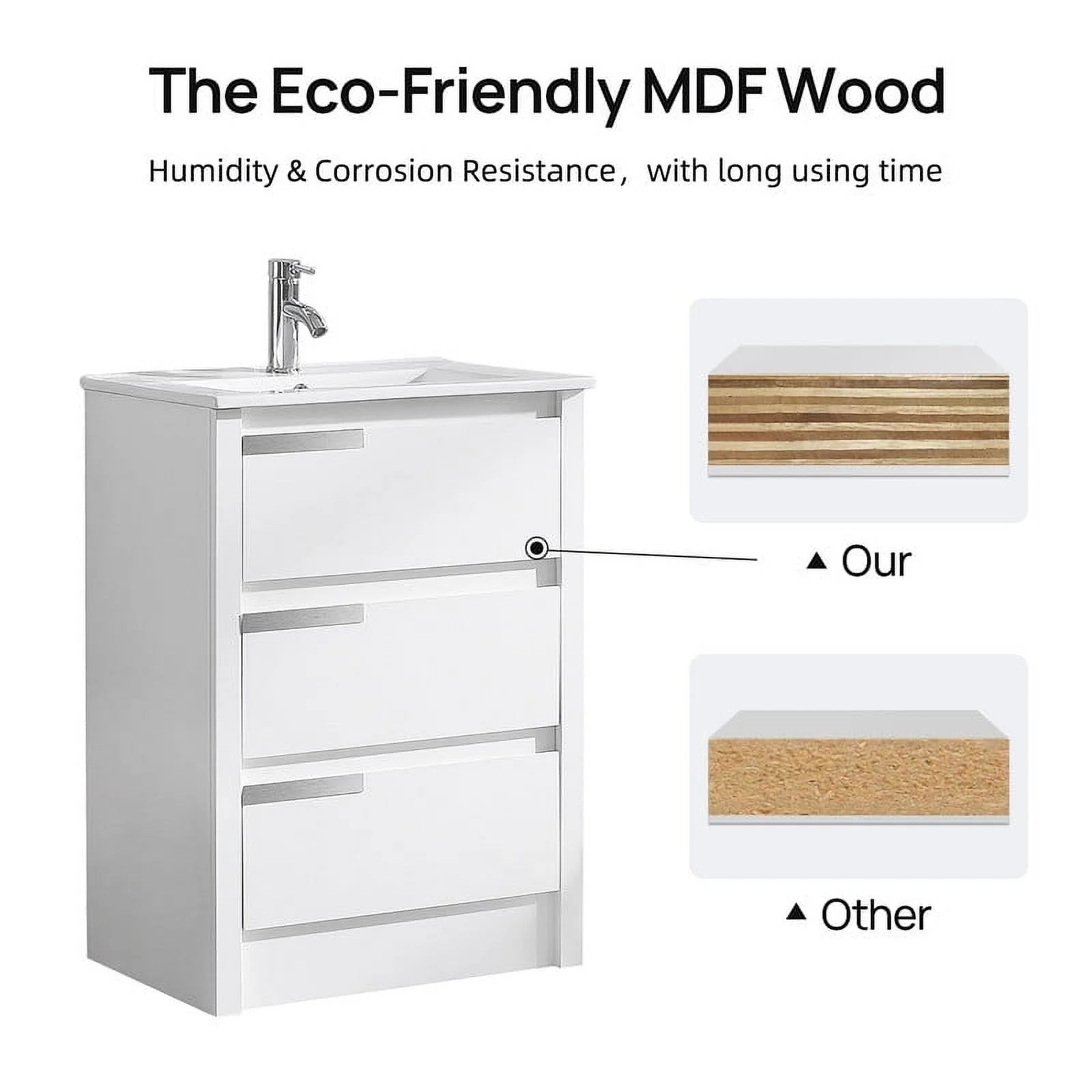 - Practical Bathroom Vanity:This bathroom vanity is made of MDF wood construction. It is not only sturdy, but also for long lasting use. The bathroom cabinets and sinks have clean lines and modern detailing to make your bathroom more beautiful and tidy.