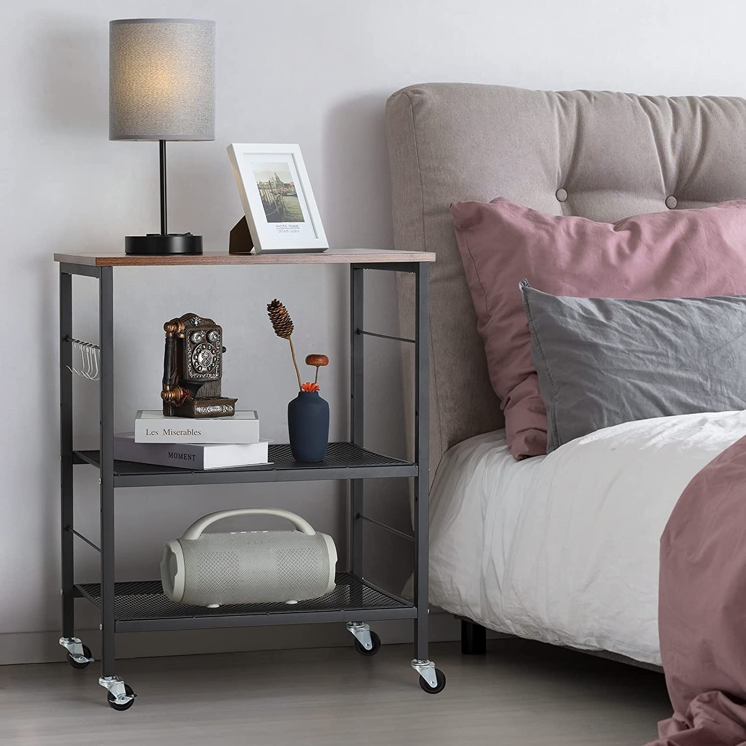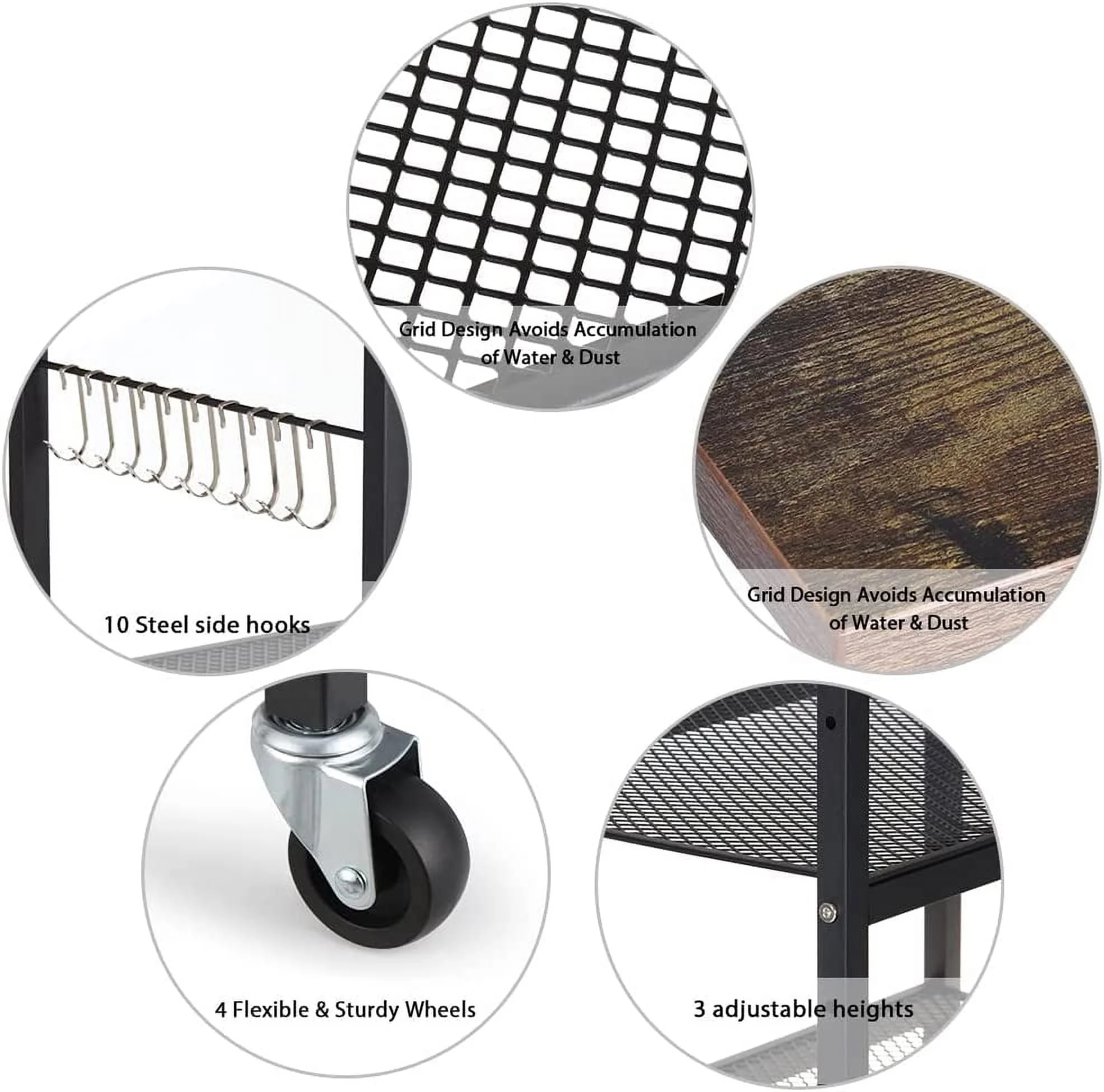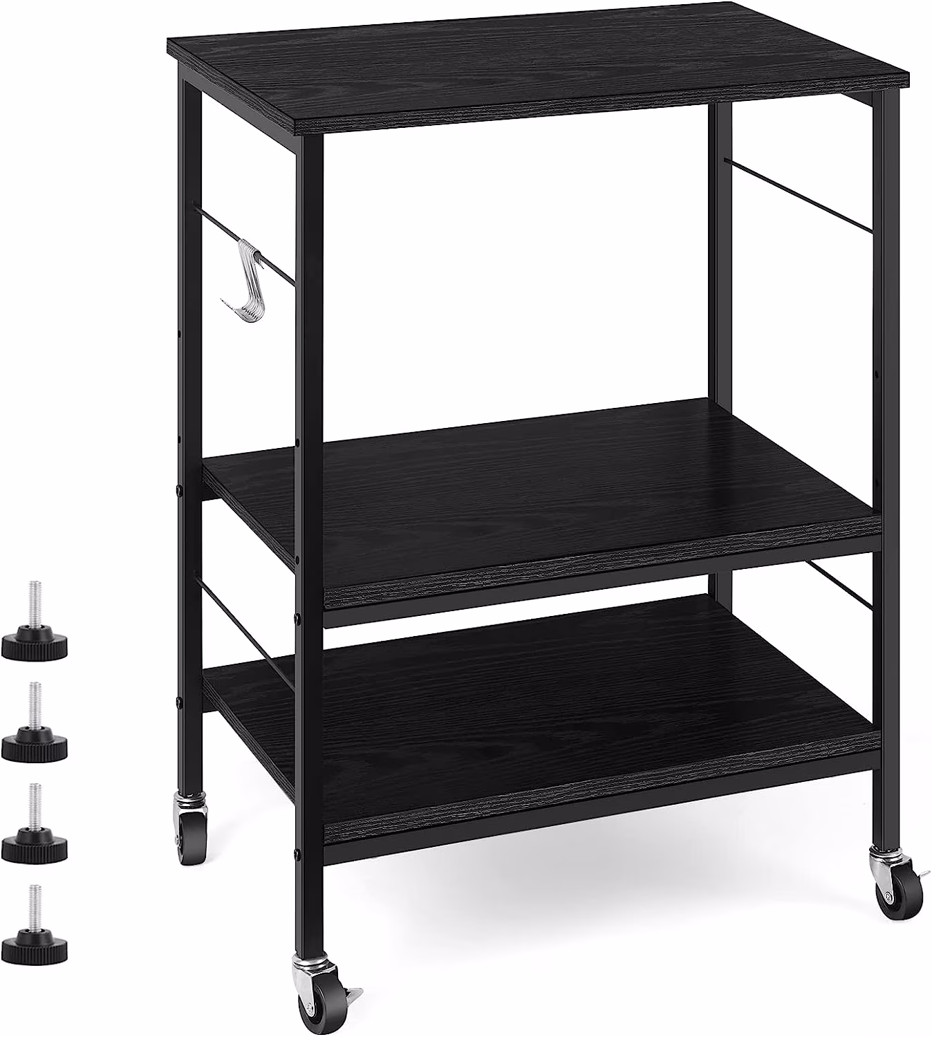 - 【Organize and Save Space】The overall size of microwave cart with wheels is 23.63×15.75×30.71 inches, which can provide you with larger storage space. The middle shelf can be adjusted up and down, allowing you to store larger items; the hooks can conveniently hang some cooking tools or document bags on the side.