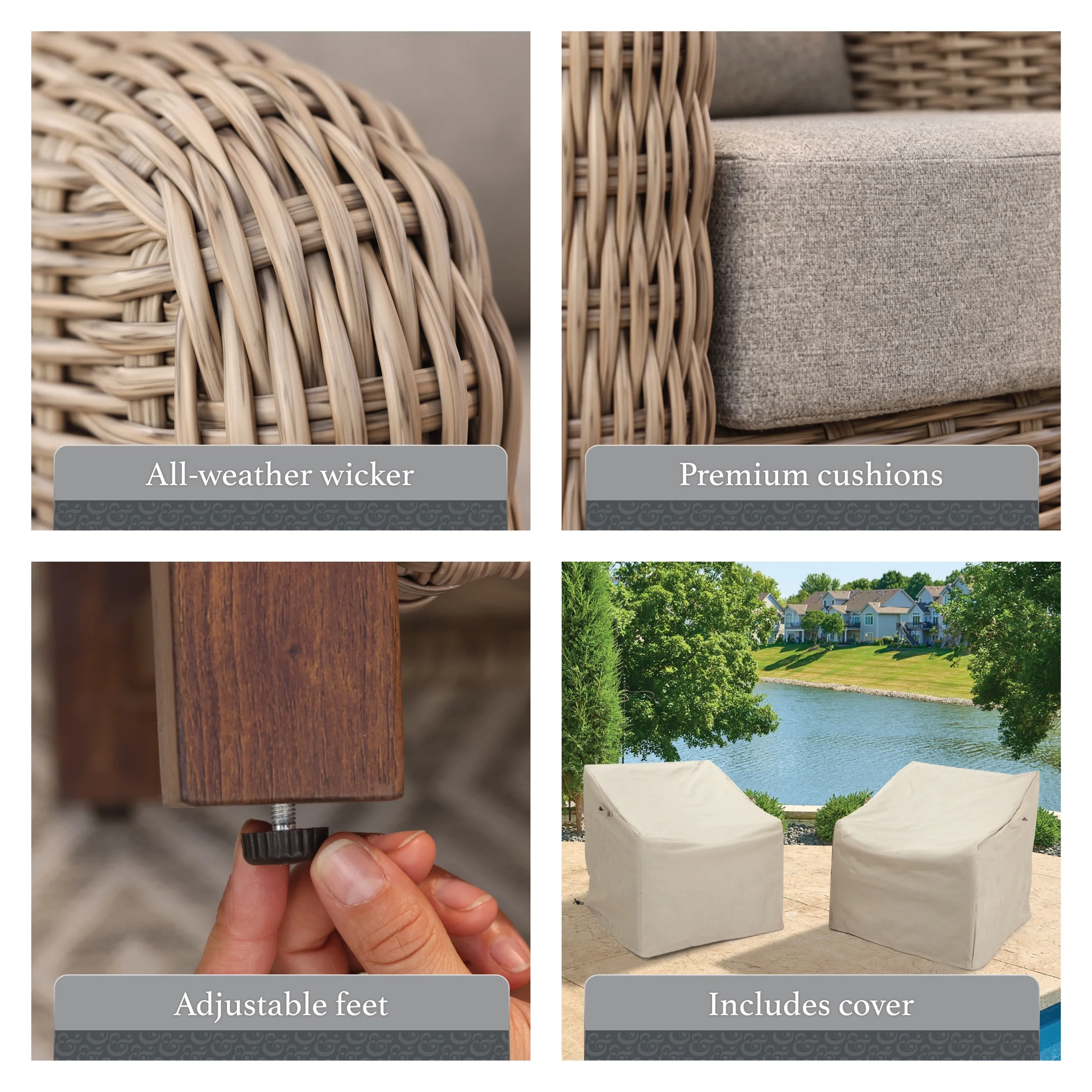 - Materials & Construction: Handwoven all-weather double wall weave wicker | E-coated and powder-coated steel frame for rust resistance