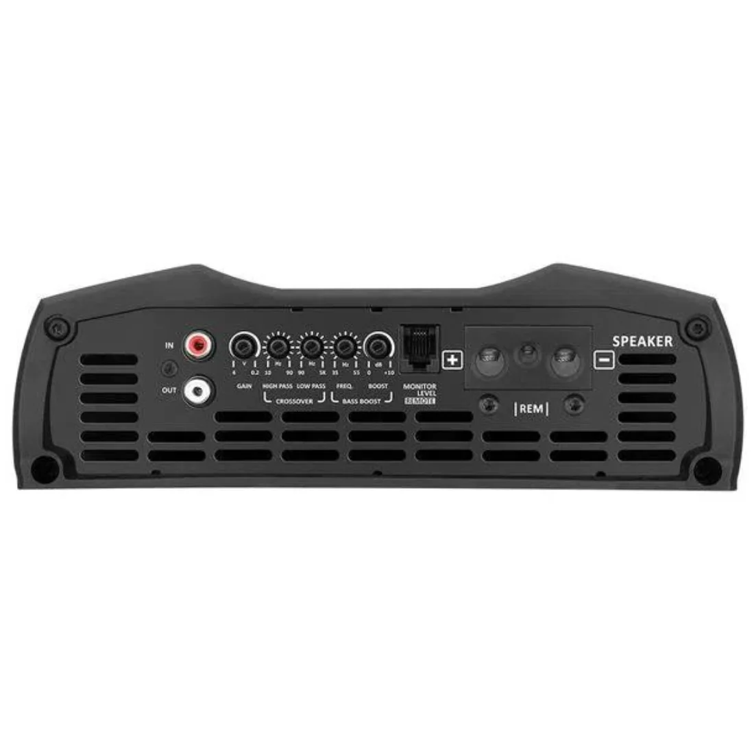 In addition to being able to supply 8000W RMS between 1 and 2 Ohms, has an input gain adjustment that allows the use of players with up to 4V RMS output level and its Robust connector allows the use of power cables with a larger gauge for greater performance.
