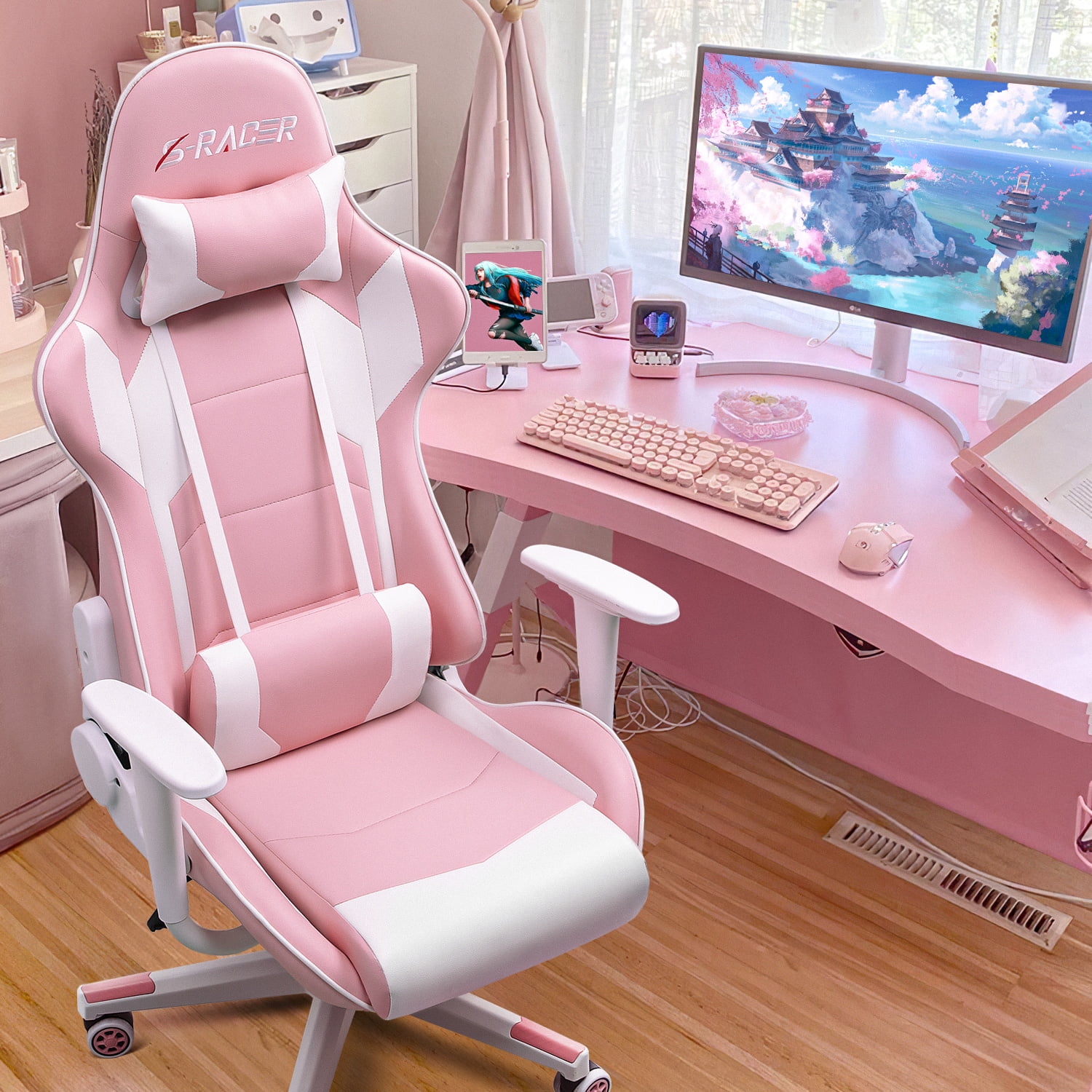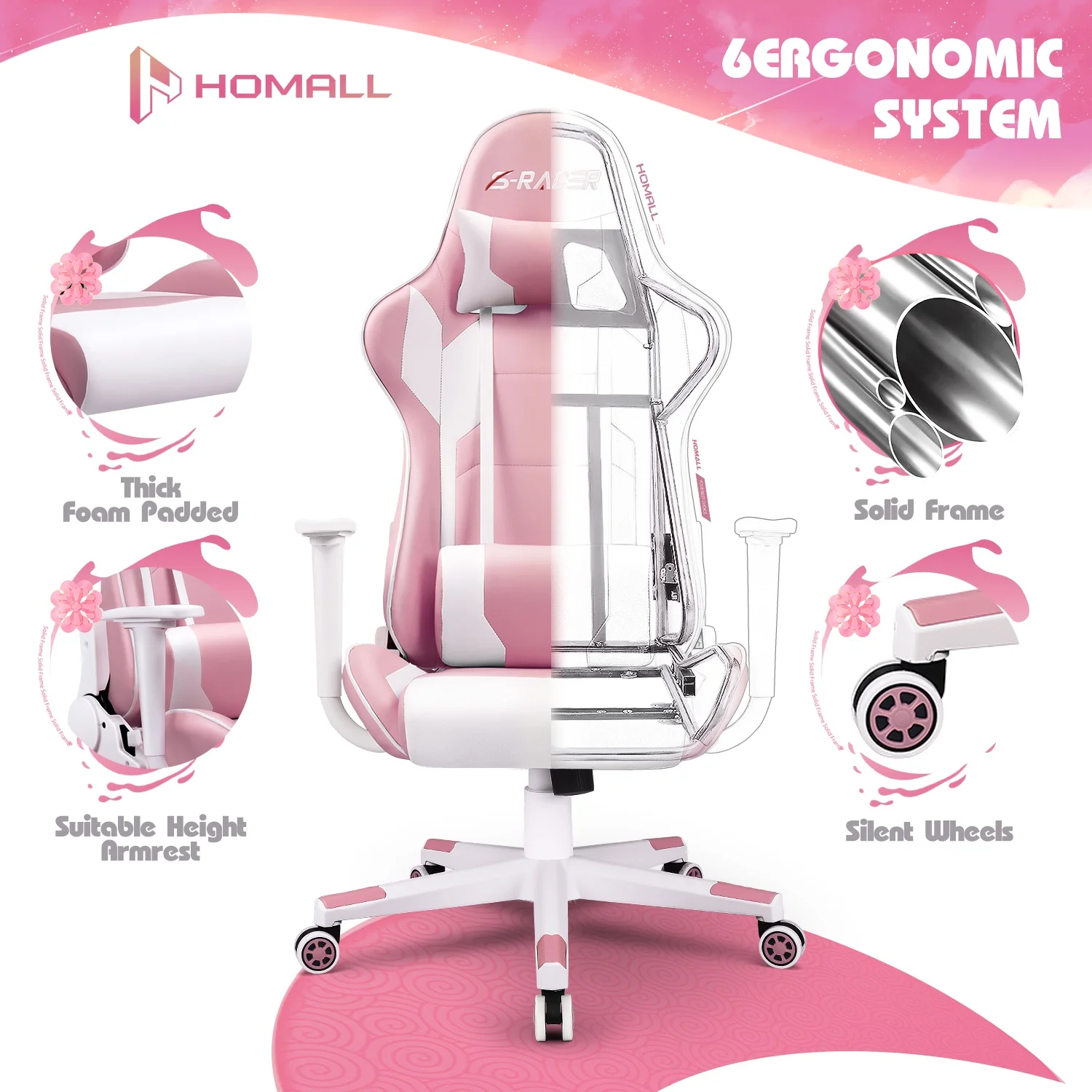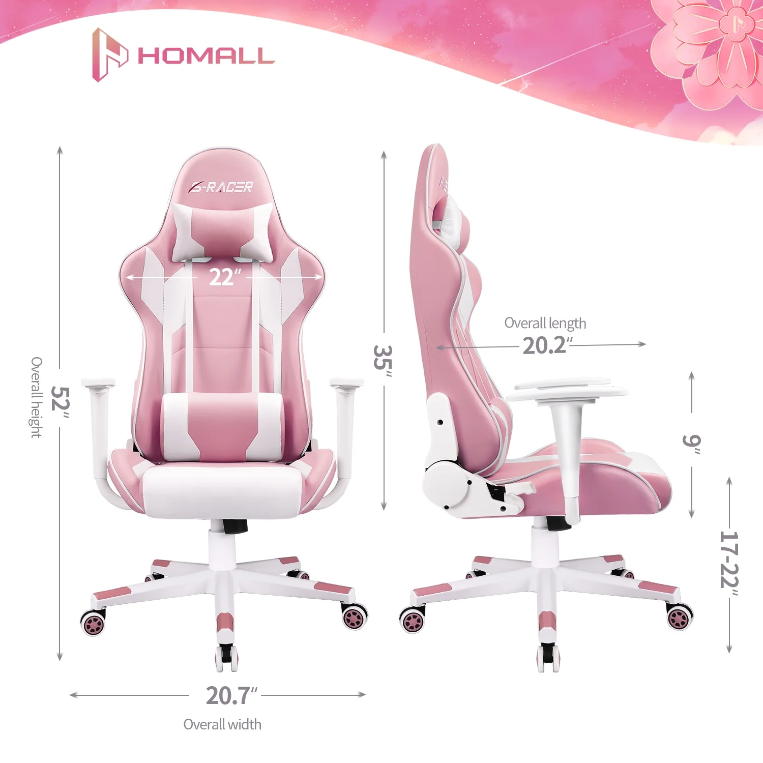 Homall Gaming Chair office Chair with Headrest & Lumbar Support, Pink