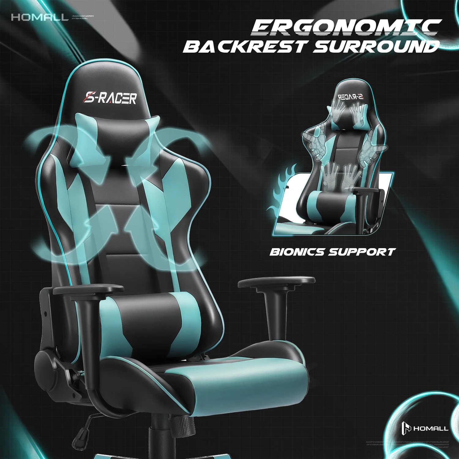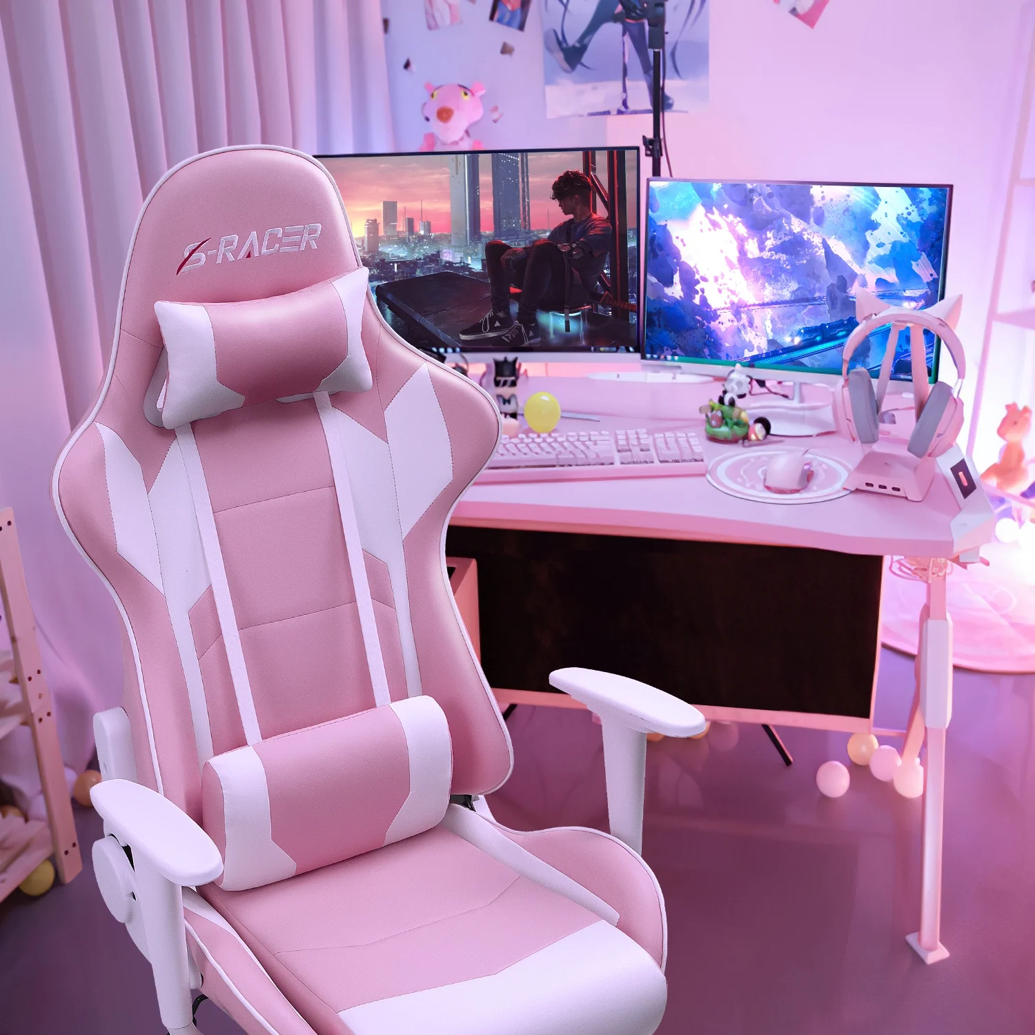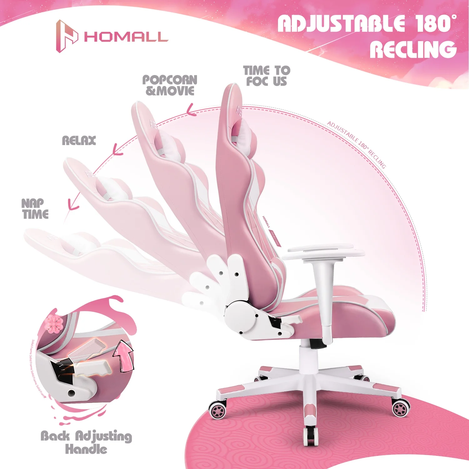 Homall Gaming Chair office Chair with Headrest & Lumbar Support, Pink